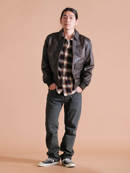 04ビンテージライクなレザージャケットは