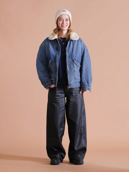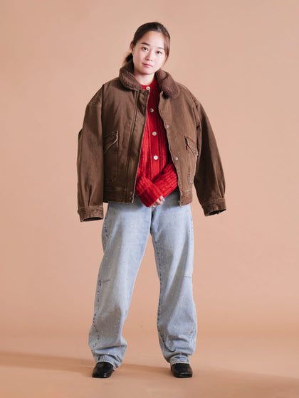 01ボアジャケット×コーティングデニム