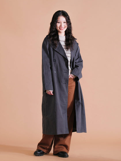 リラックスフィットでゆったりとしたシルエットが特徴のロングコートです。厚手のニットなどにも重ね着がしやすく、襟はコーデュロイ素材になっているので、これからの時期に最適な一着です。