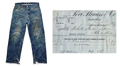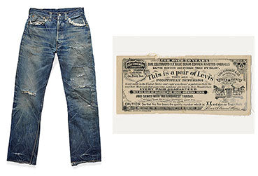 パンツの耐久性を高めるための工夫を重ねていた時、リーバイ・ストラウス&カンパニーと取引のあった仕立屋のヤコブ・デイビスが、リベットで補強するというアイデアを思いつきました。両者は共同で「衣料品のポケットの補強にリベットを使用する方法」に関する特許を取得しました。この時、ジーンズが誕生しました。