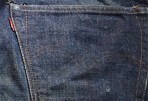 第二次世界大戦勃発によりディテール変更を余儀なくされた1944年。政府が資材節約のため全ての衣料品メーカーに商品を簡素化することを要請。リーバイス®も一部のリベットやシンチを取り除くことになりました。バックポケットのアーキュエットステッチも政府から削るよう要請されましたが、ステッチの代わりにペンキを代用することで伝統を守りました。