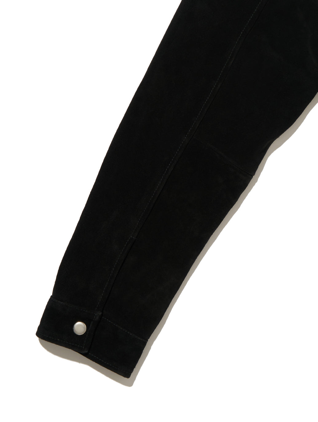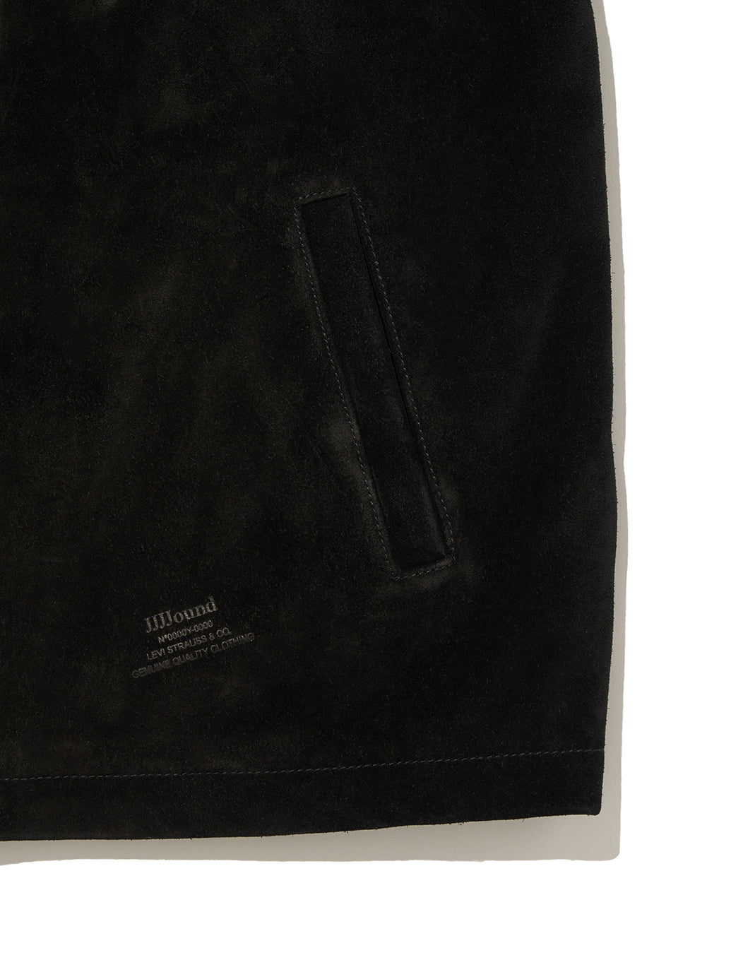 JJJJoundの定番アウターウェアのシルエットをベースにしたスエードコーチジャケットはレザー製で、サテンのライニング、内側にウェルトポケット、焦がし加工を施した錫の金具、エンボス加工のロゴスタンプとサイドシームにはLevi’s®レッドタブが付属します。