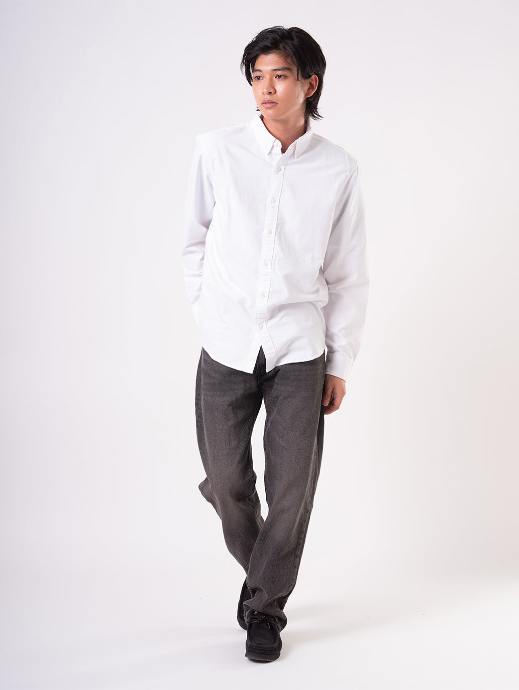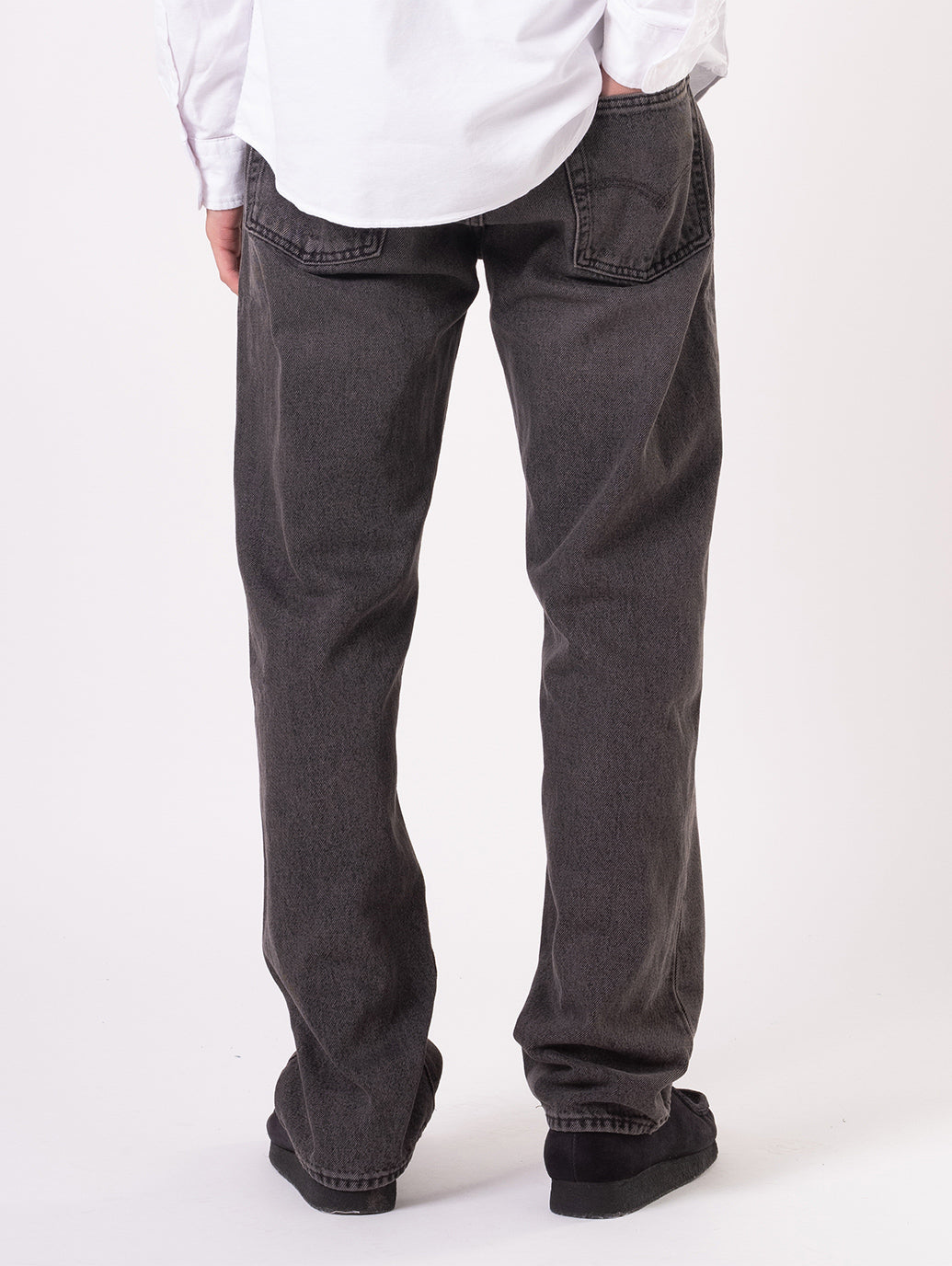 リラックス感のあるゆったりとしたストレートシルエットのパンツ。耐久性に優れた綿100%の生地、ブラックユーズドカラーが特徴です。汎用性の高いブラックですが、程よいフェード加工を施しているので、ワントーンコーデにも変化を出してくれる一本です。
