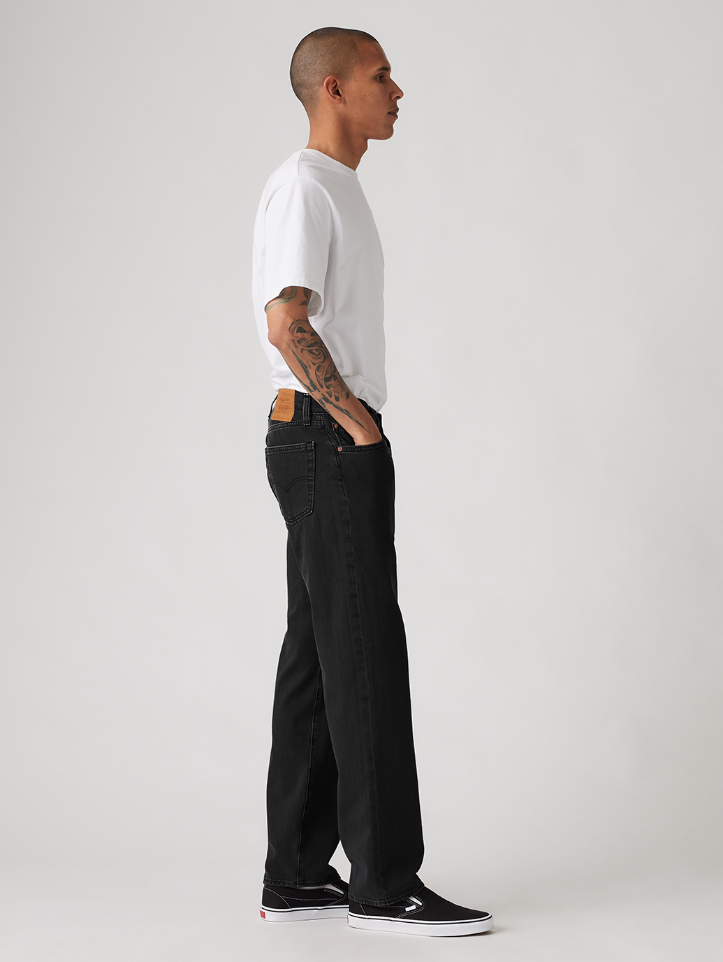 リラックス感のあるゆったりとしたストレートシルエットのパンツ。耐久性に優れた綿100%の生地、ブラックカラーが特徴です。汎用性の高いカラーなのでフォーマルな着こなしにも合わせやすい一本です。