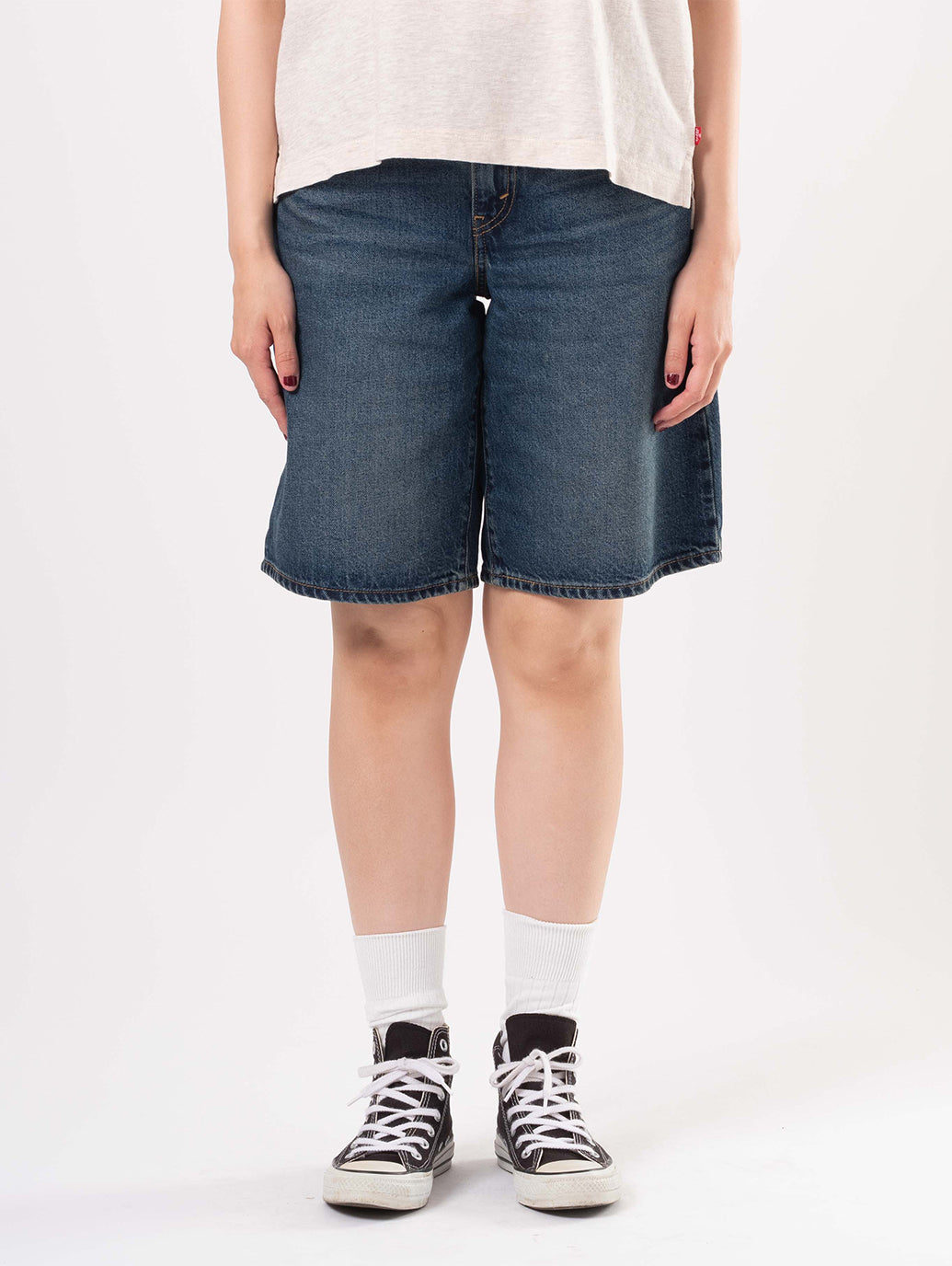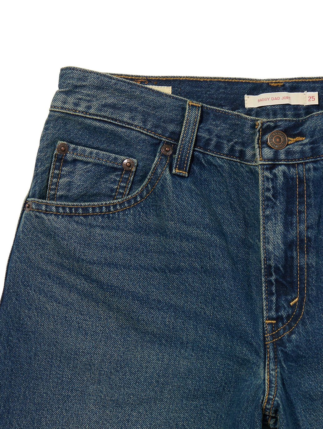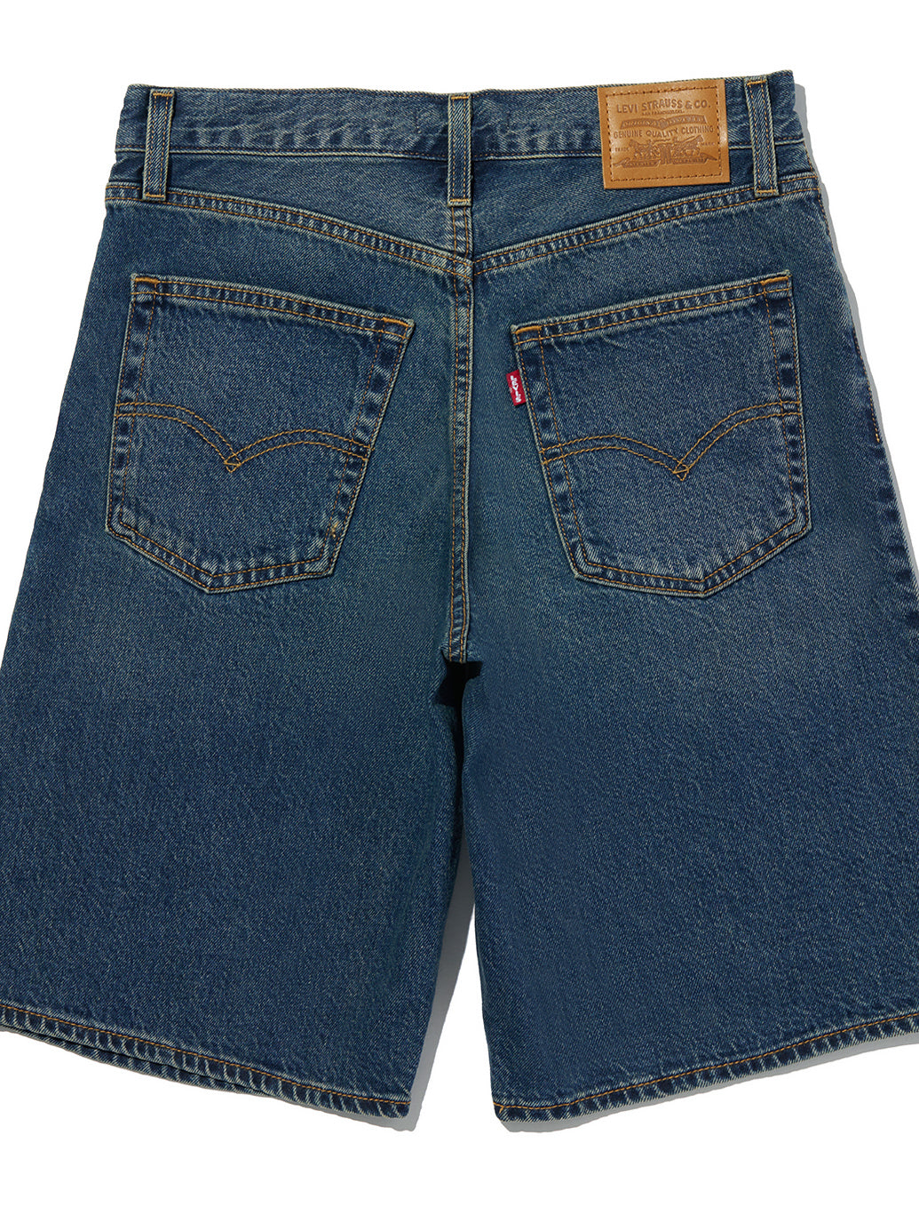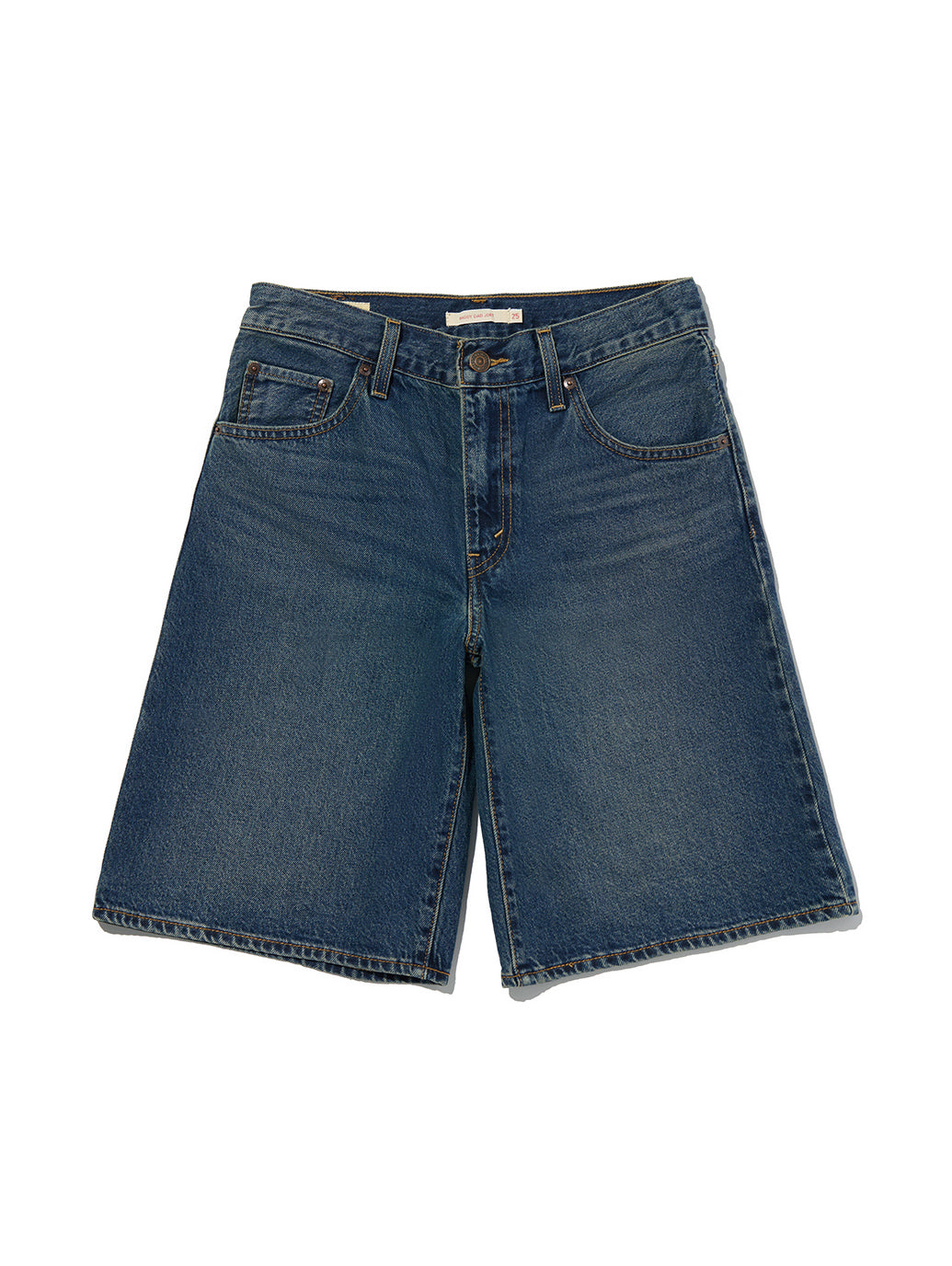 バギーなショートジーンズがトレンドのカラーでデザインされました。綿100%のリラックス感のあるミッドライズのストレートレッグジーンズ。余裕を持たせ、さりげなくエッジィな雰囲気にすることで、ゆったりしながらもシルエットが引き立ちます。お気に入りのスニーカーと合わせれば、いつでもクールな90年代のルックを楽しめます。