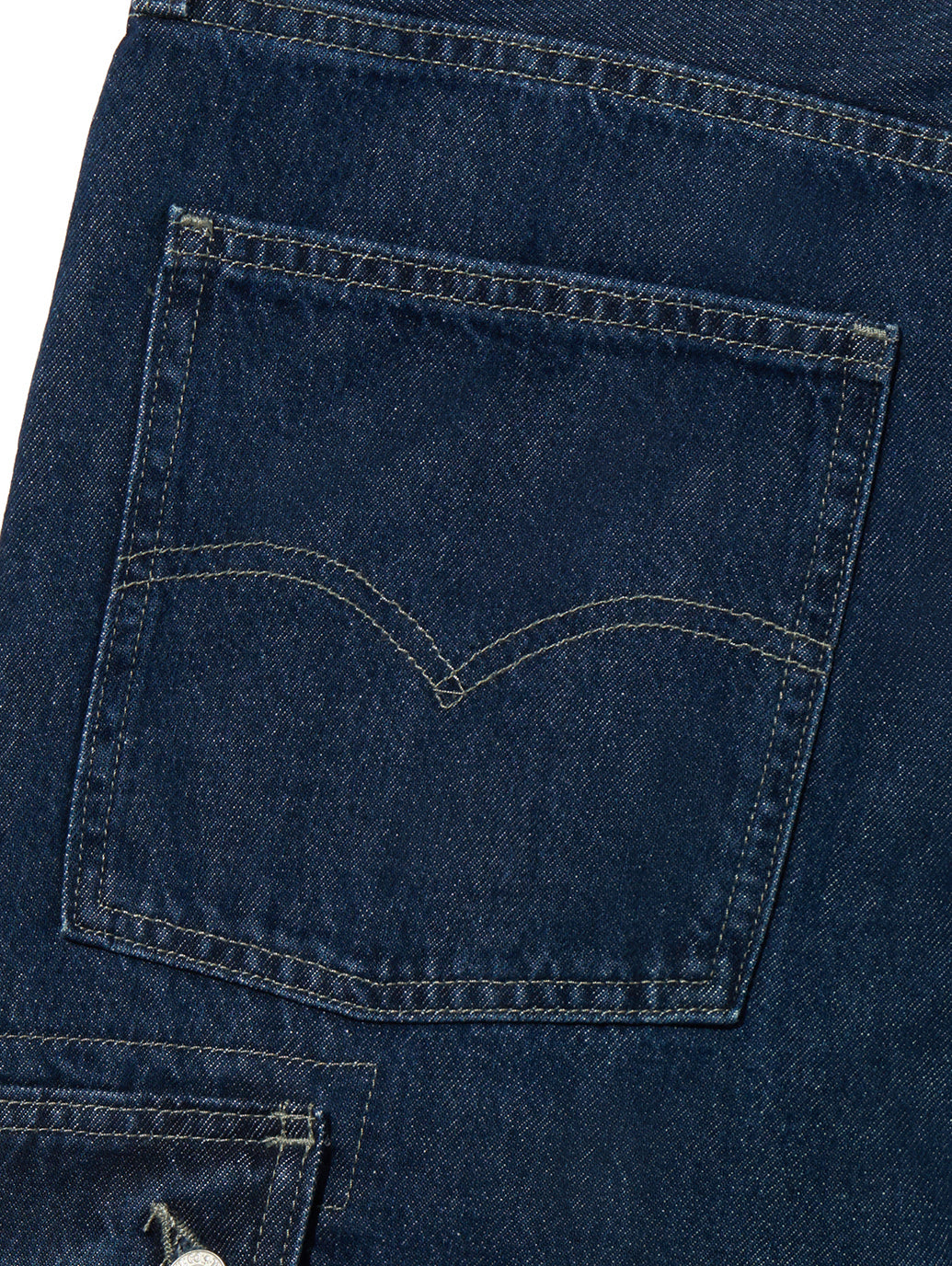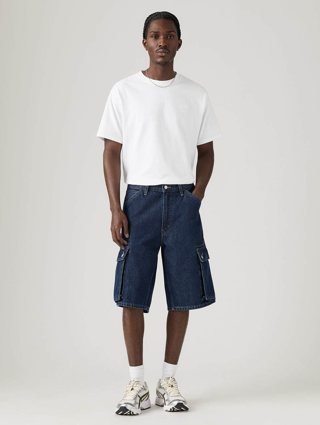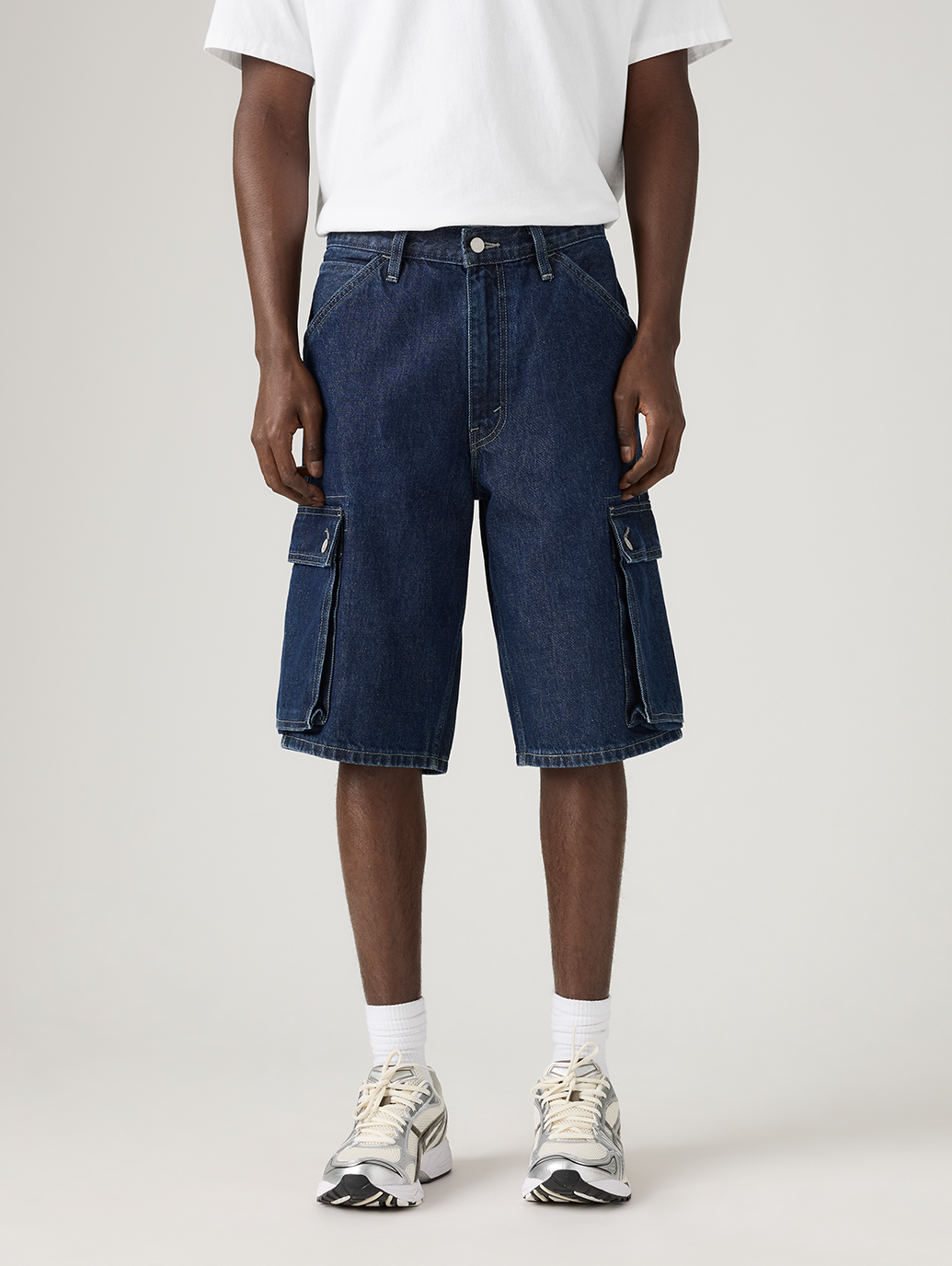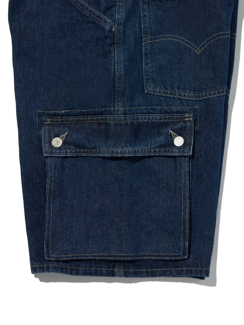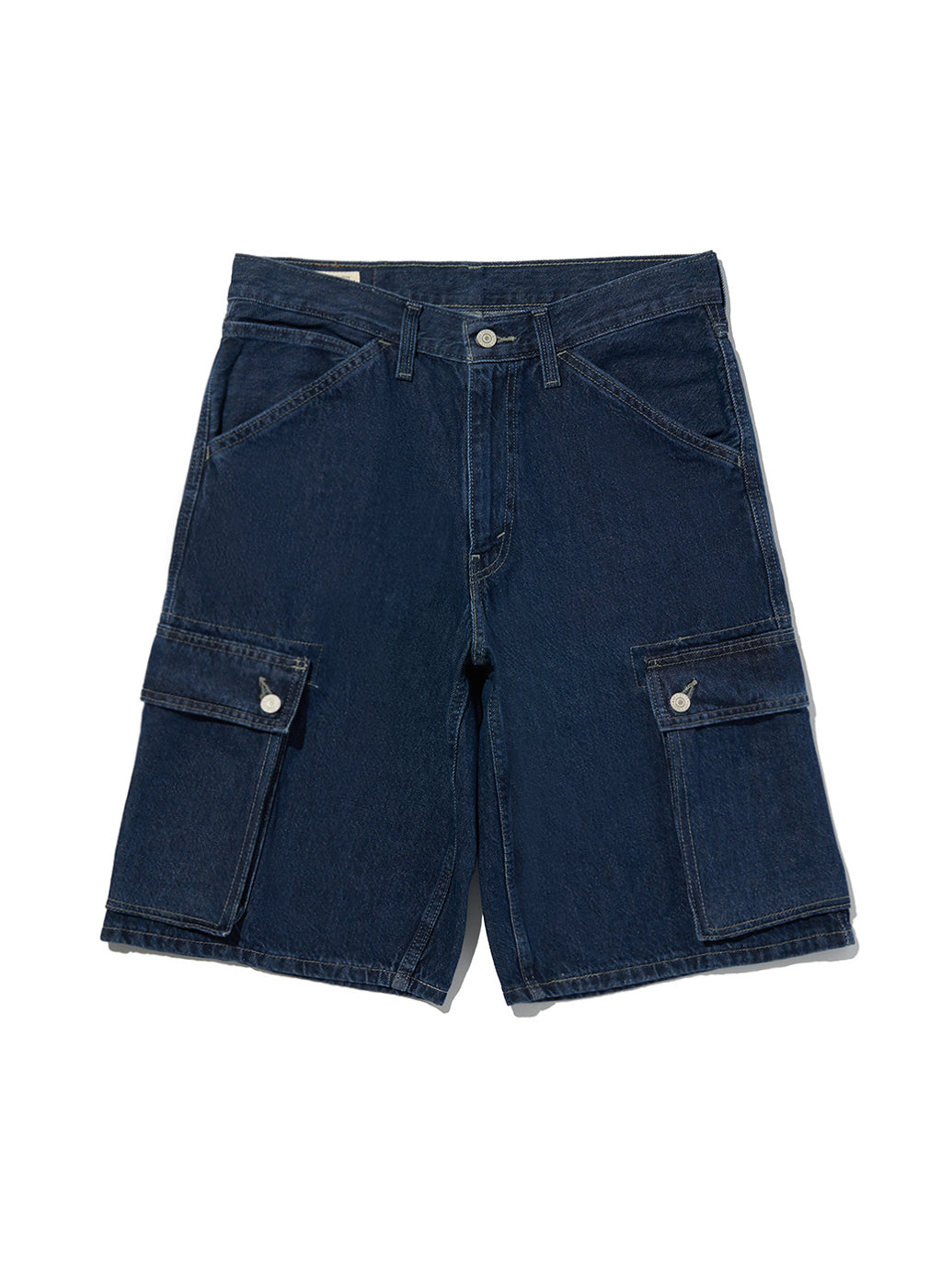 流行りのバキーカーゴショートパンツ。ブルーのカラーで両サイドにポケットが付いたデザイン。綿100%でしっかりとした生地感。股下が30cmと短すぎない丈です。この夏に大活躍のアイテムです。