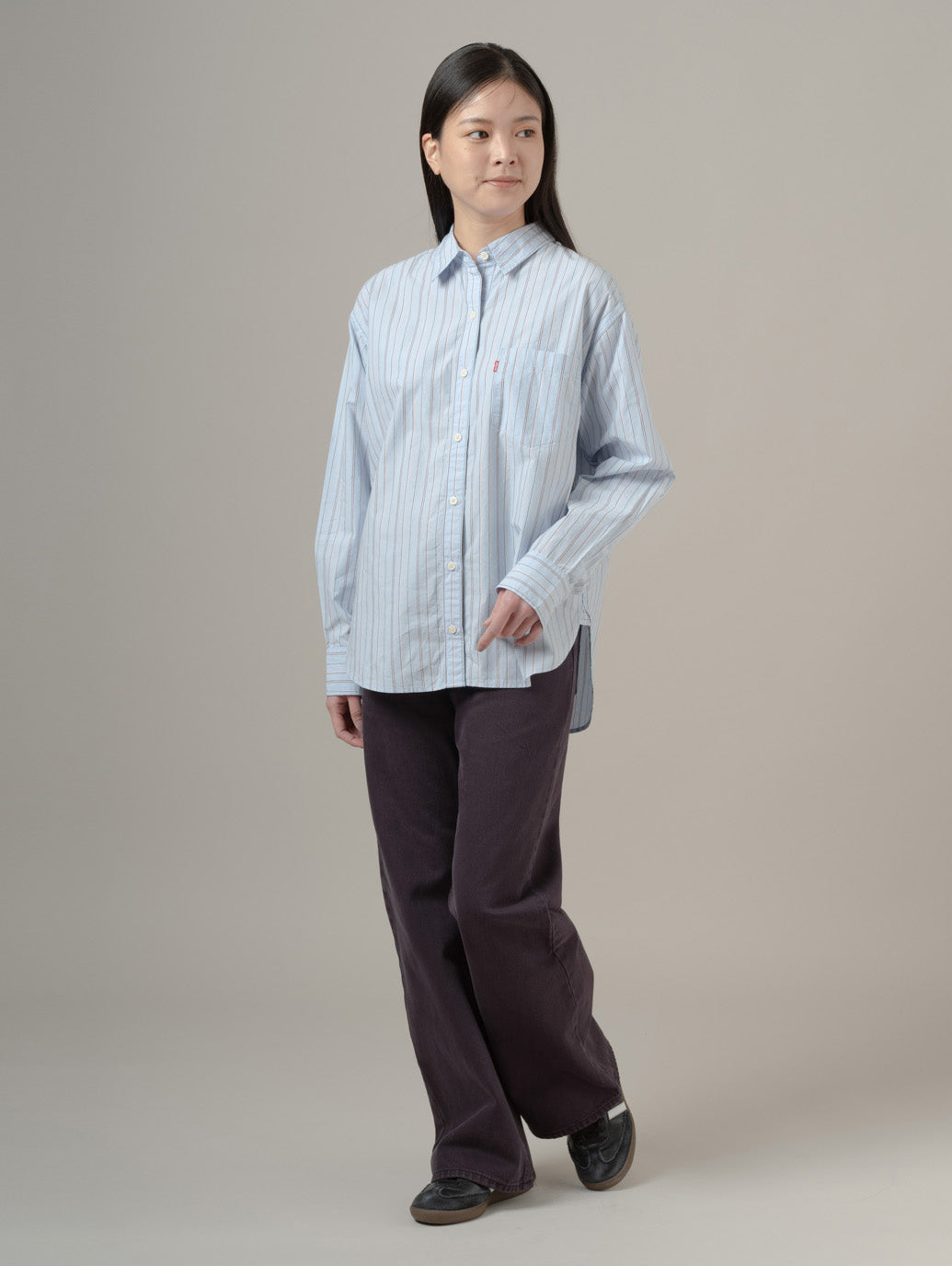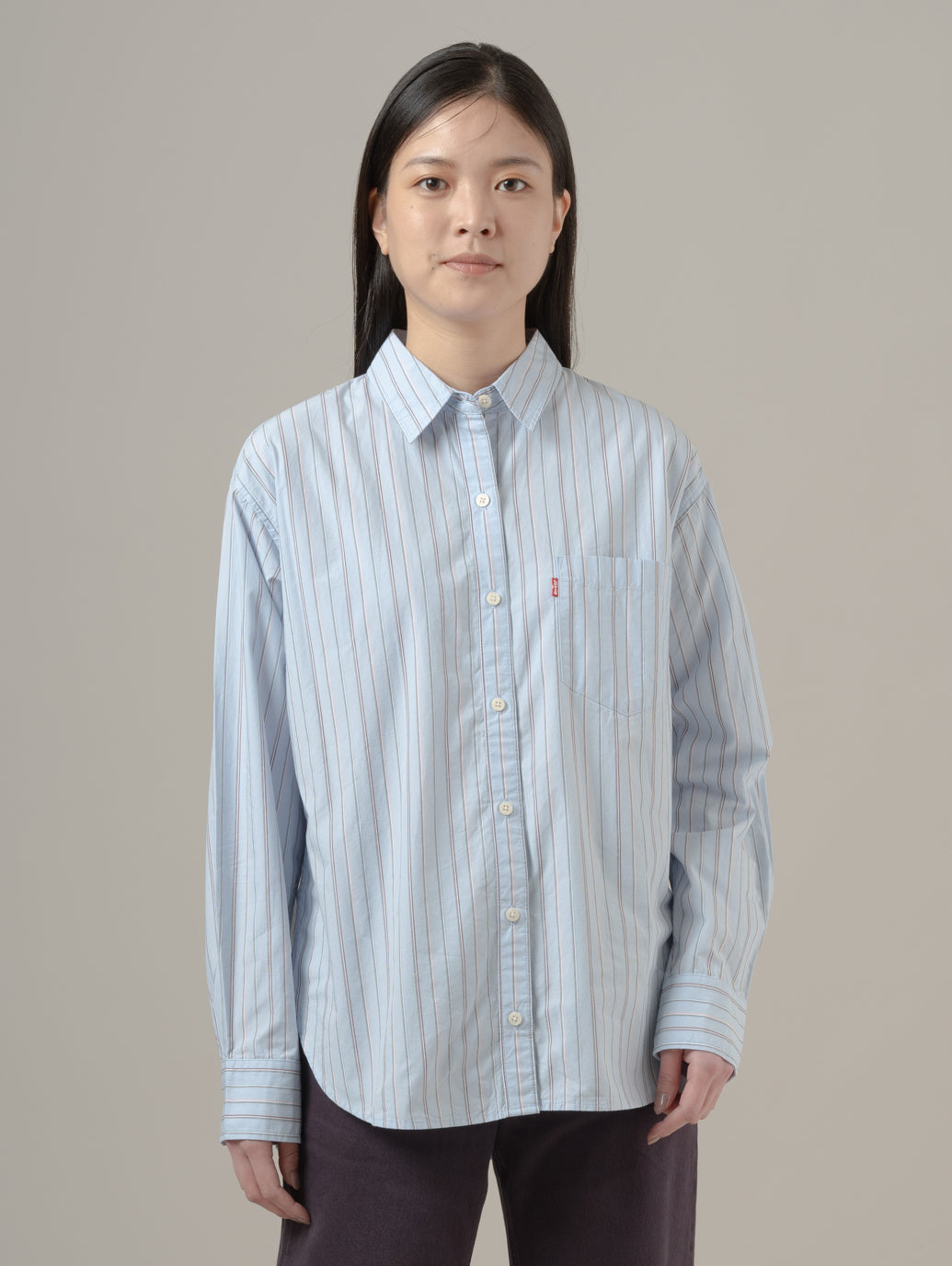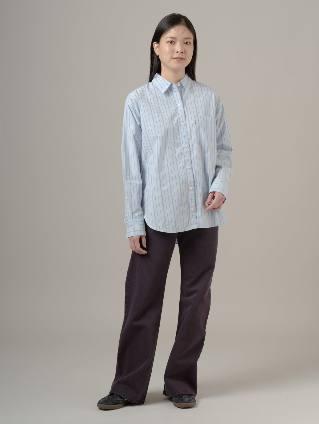 このリラックスフィットは用途の広い定番アイテムです。単体でもお気に入りのTシャツとあわせてもすてきなデザインでどんなジーンズにも合わせやすい一枚です。 model:167cm B74 W61 H88 着用サイズ:S