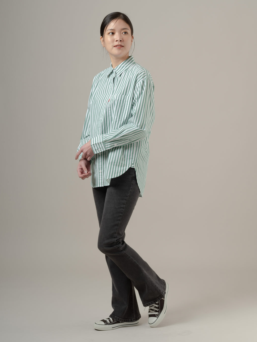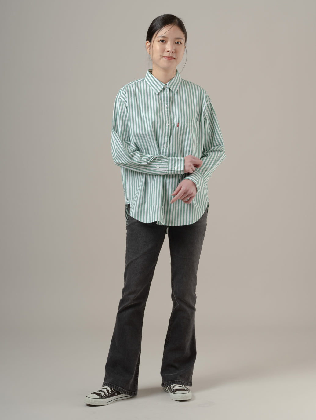 このリラックスフィットは用途の広い定番アイテムです。単体でもお気に入りのTシャツとあわせてもすてきなデザインでどんなジーンズにも合わせやすい一枚です。 model:167cm B74 W61 H88 着用サイズ:S