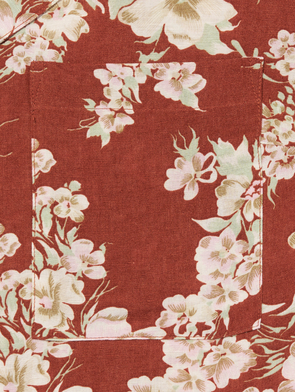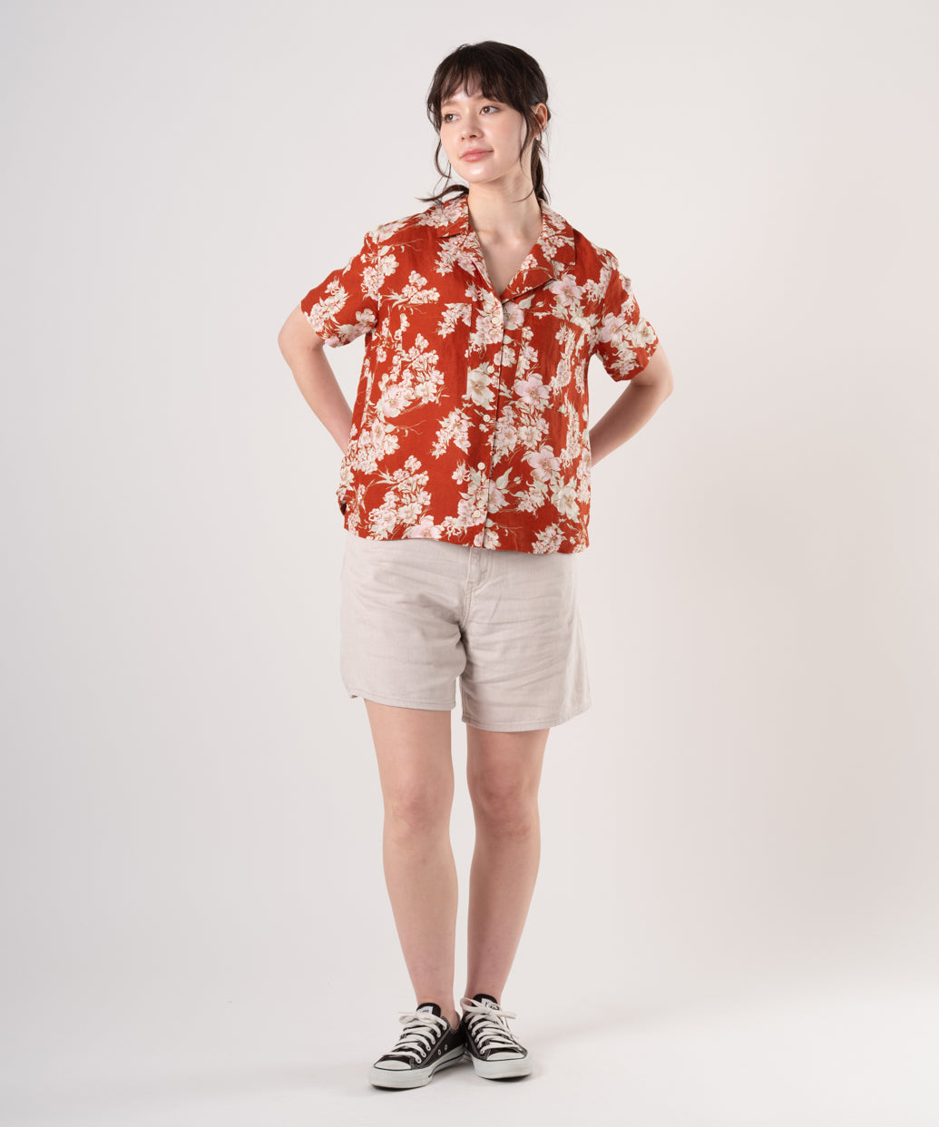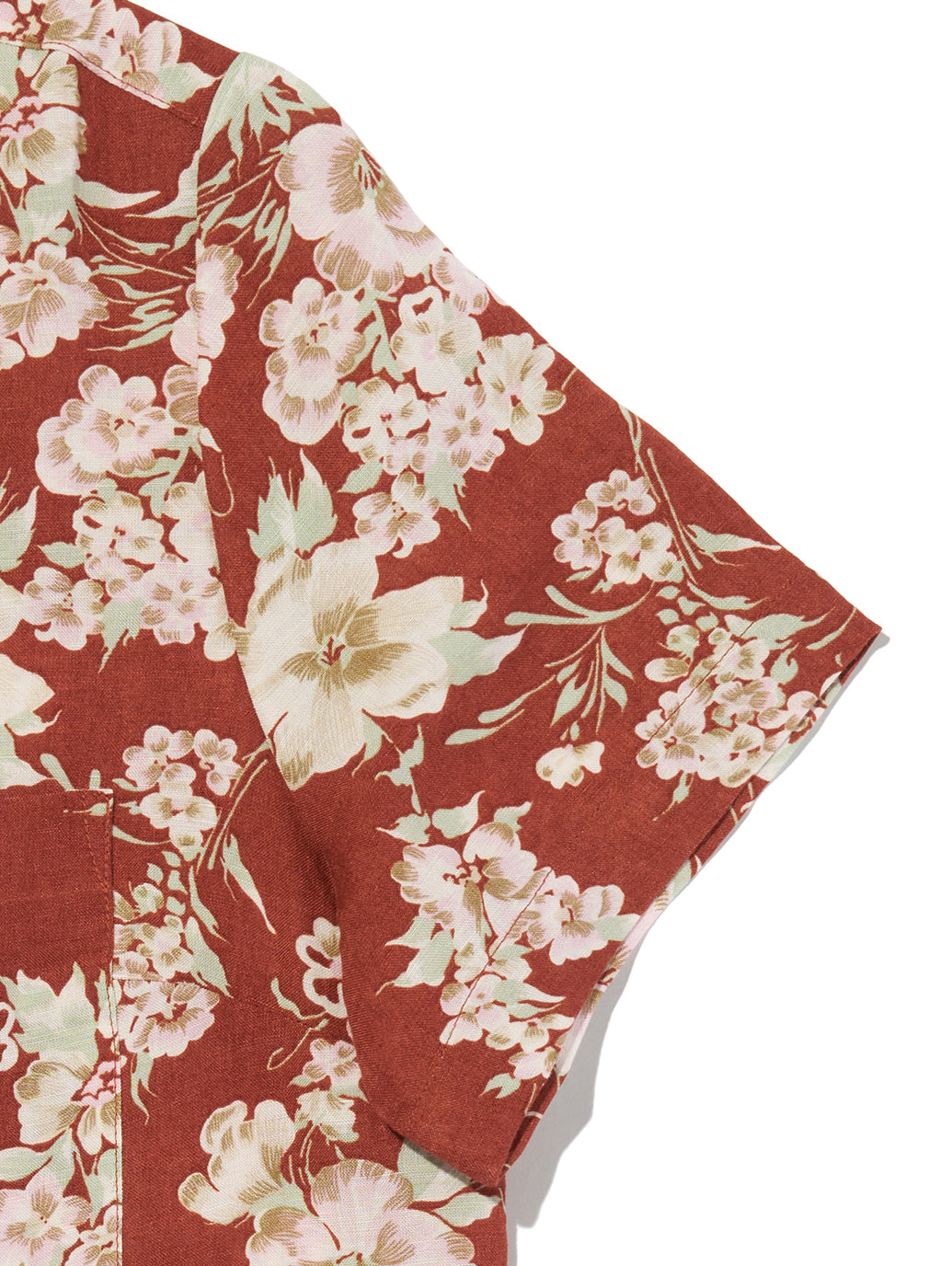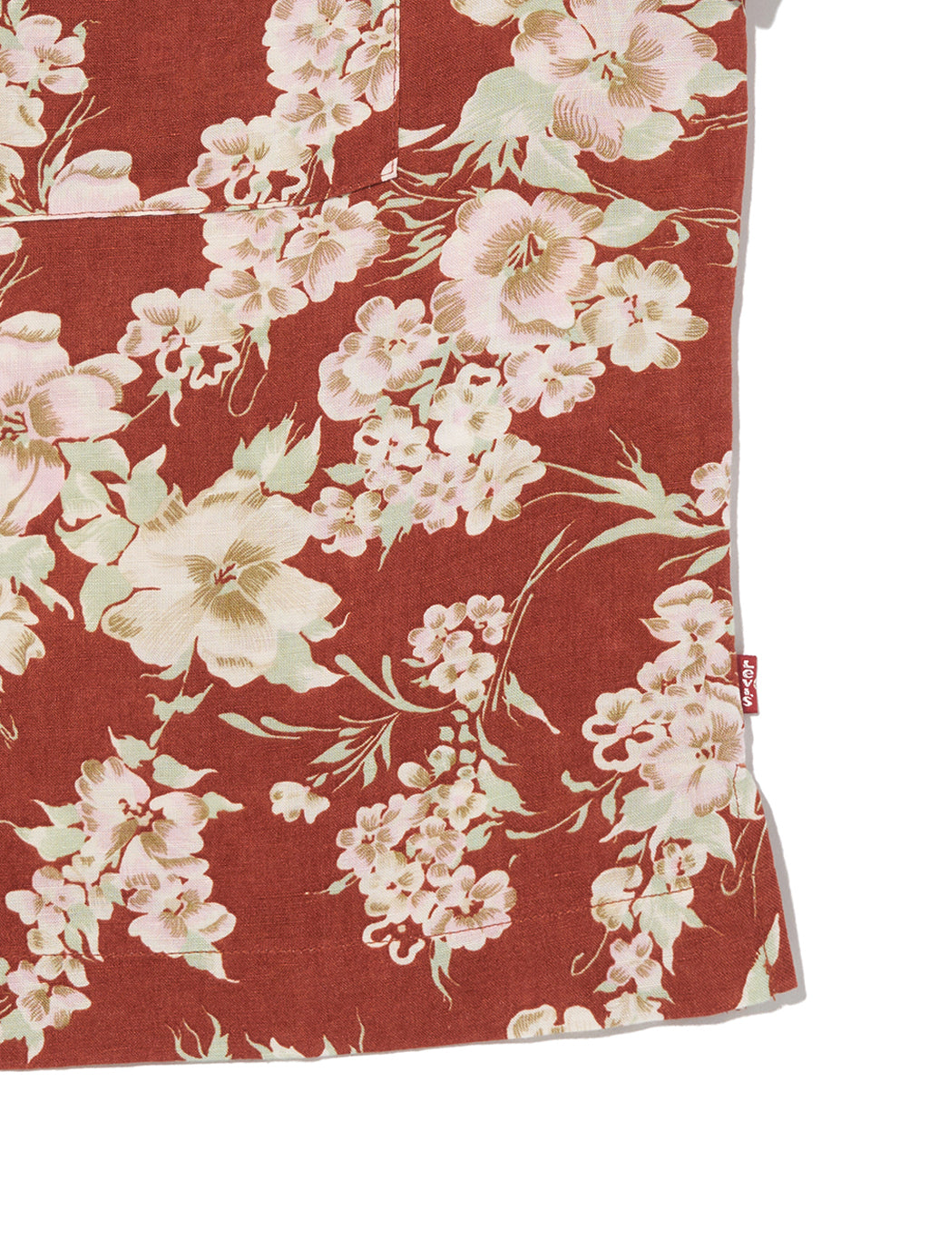 ボクシーでリラックスしたフィットでフロントボタンアップ仕様のシャツ。フロントには大きな2つのポケットを配し、開襟デザインも特徴です。総柄なので春先から夏のバケーションに活躍する一着です。