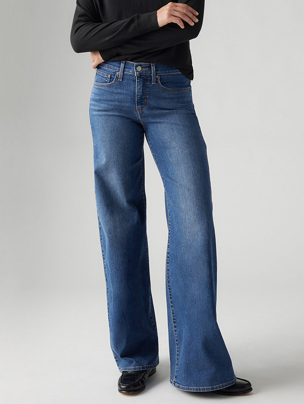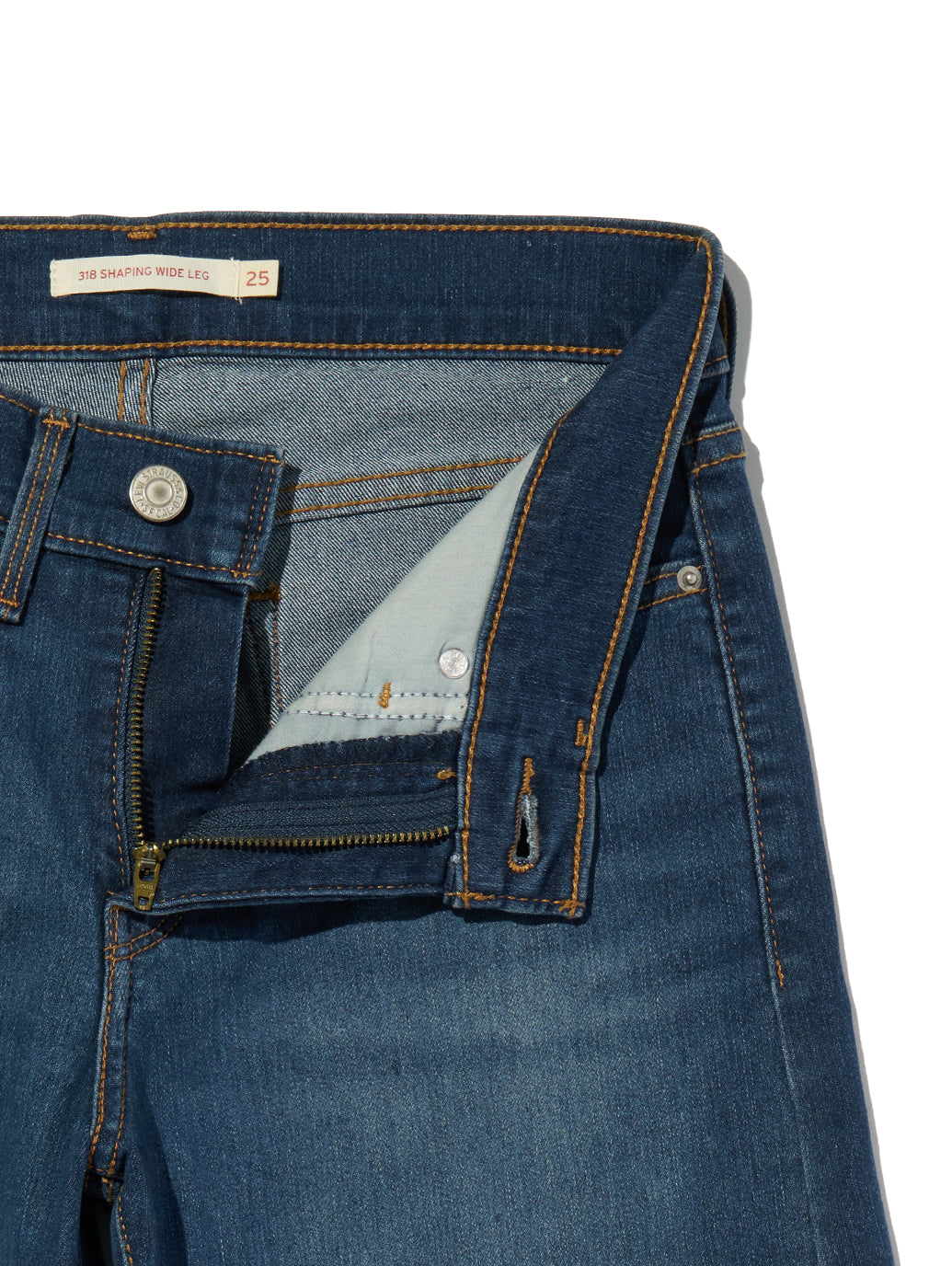 Levi'sのウィメンズ定番の300シリーズ。318 シェーピング ワイドレッグジーンズは、ウエスト周りの引き締める効果のあるフロントパネル設計になっており、ワイドレグとのメリハリがしっかり出やすく美脚効果のあるシルエットが魅力です。合わせやすのあるミディアムインディゴカラーで春先に活躍間違いなしの一本です。