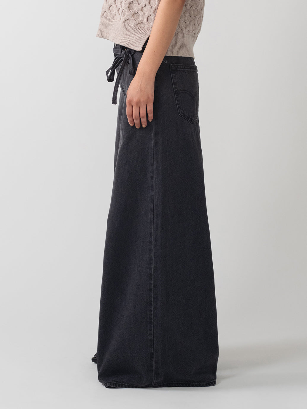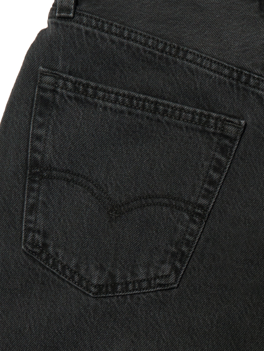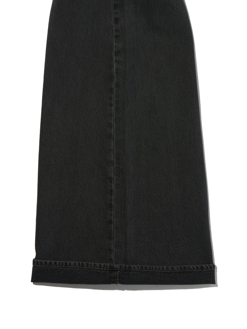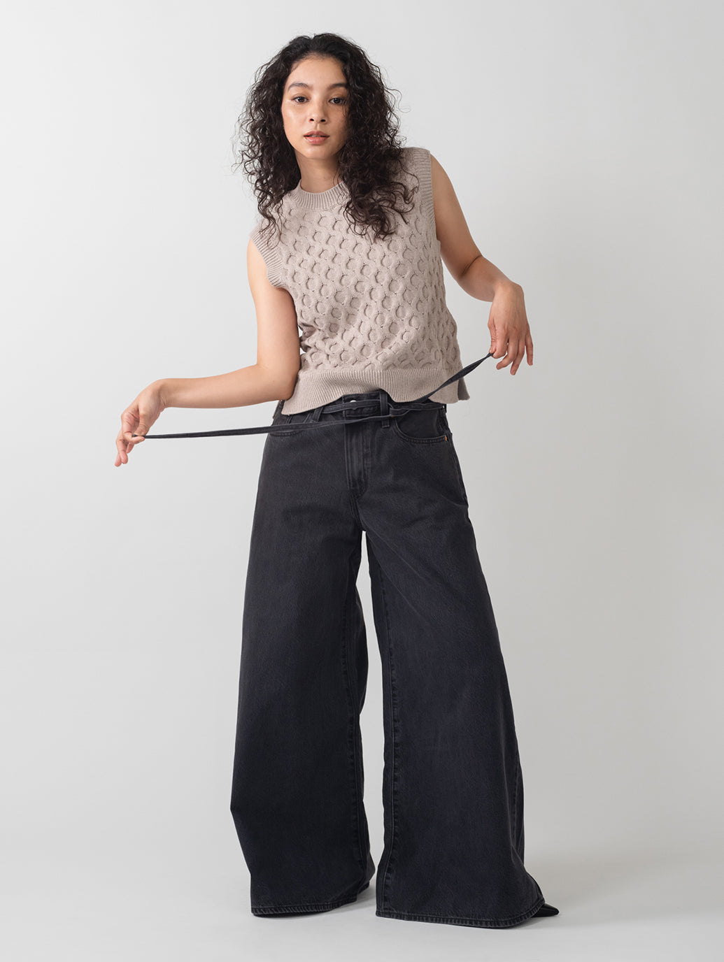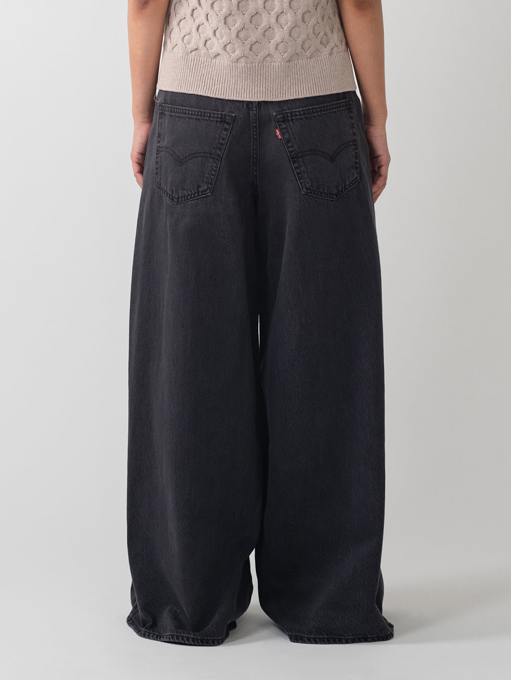 オーバーサイズのバギースタイルと特にワイドなレッグ、そして着やすいミッドライズを、XLスーパーワイドジーンズに取り入れました。さらに、調節可能なタイベルト仕様、ブラックユーズドカラーなので、幅広い着こなしを楽しめる一本です。
