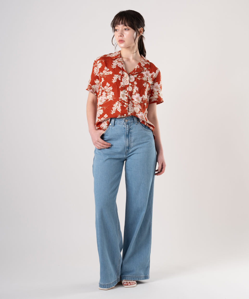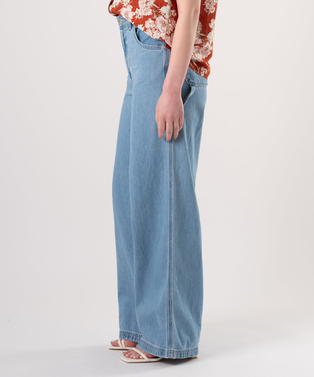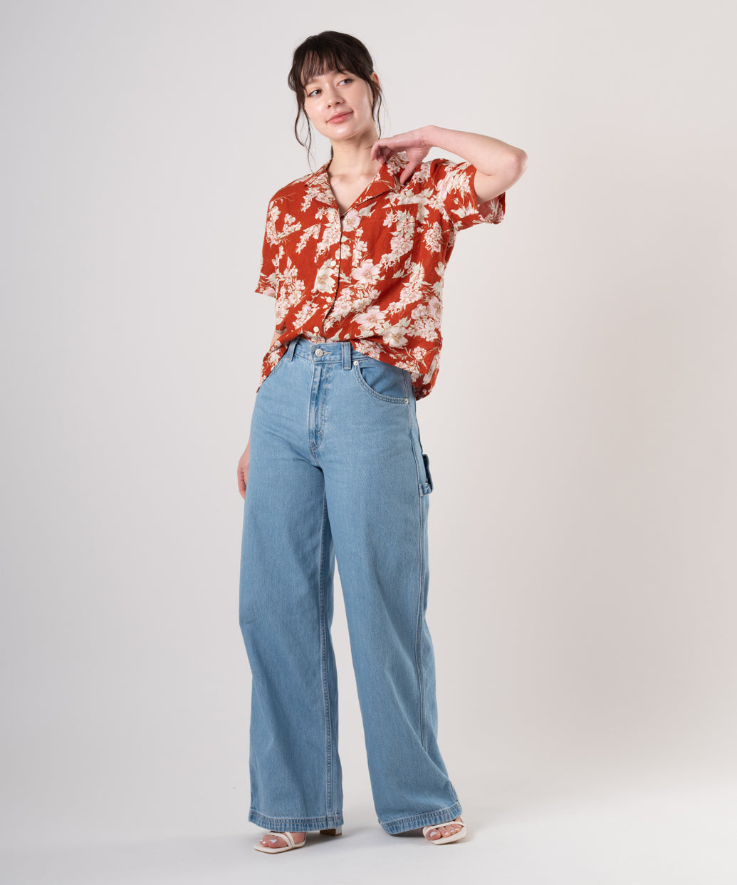 トレンドのバギースタイルで、自分のウエストにピッタリなサイズに変更できる優れたジーンズがデザインされました。スタイルを引き立てるハイライズのスタイルで、リラックスフィットのスタイルの背中にアジャスターを付けて、ぴったりにあわせられるようにしました。是非、アジャスターを利用してコーディネートをお楽しみください。