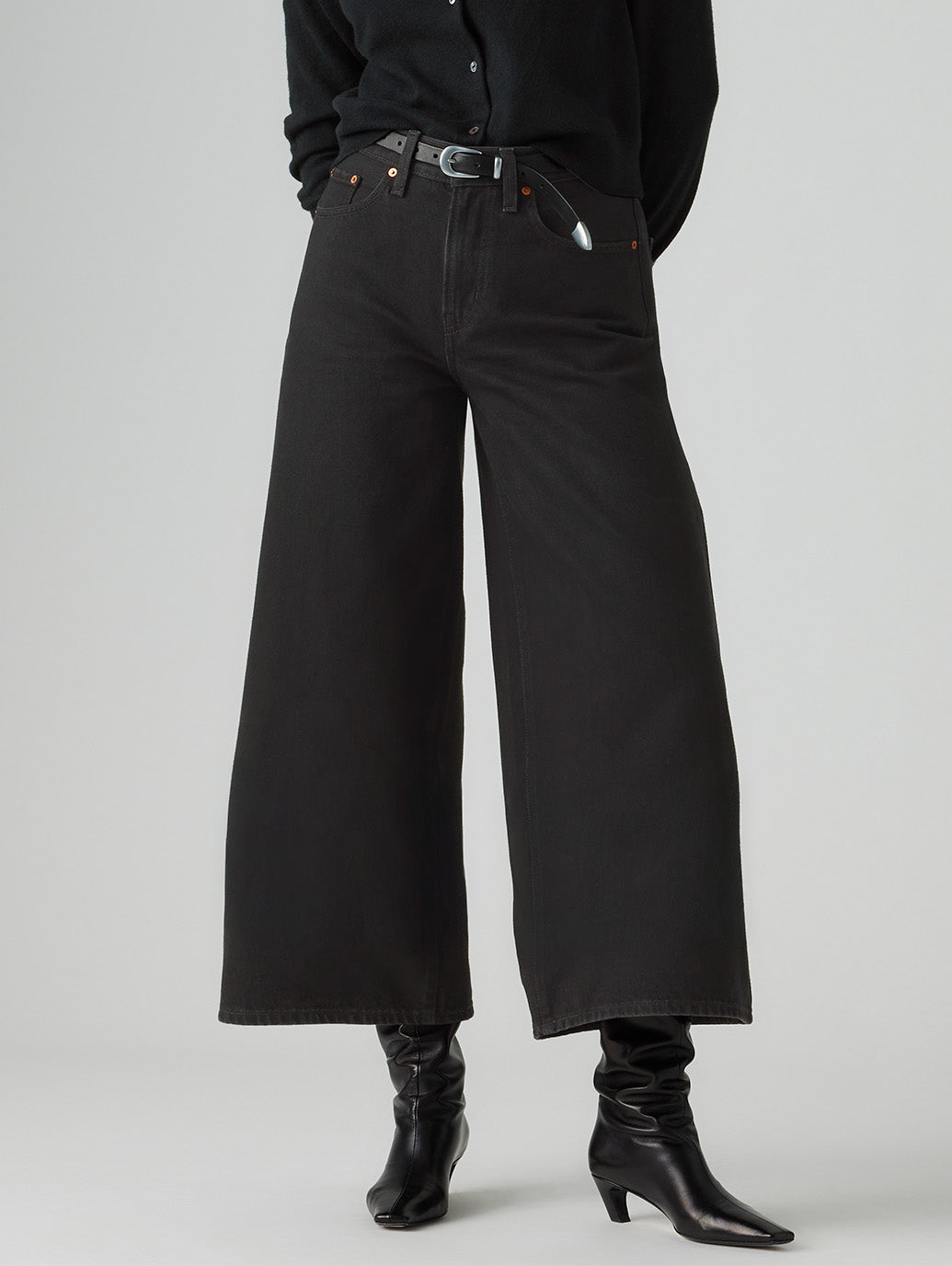 オーバーサイズのバギーシルエットと、広めのストレートレッグを取り入れたXLキュロットジーンズ。