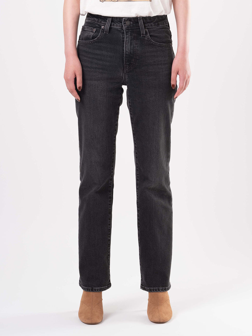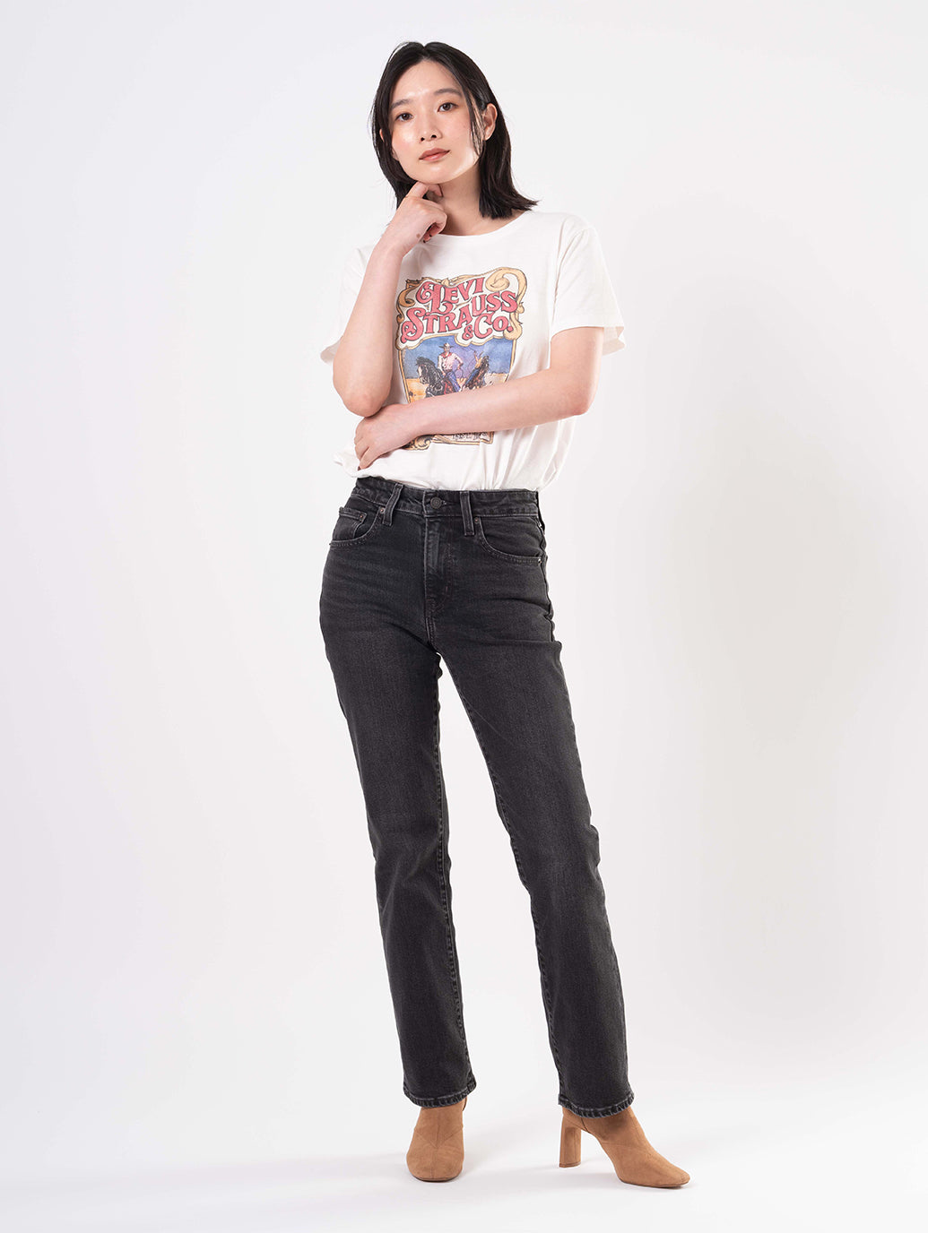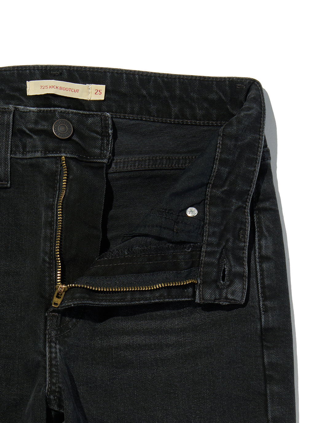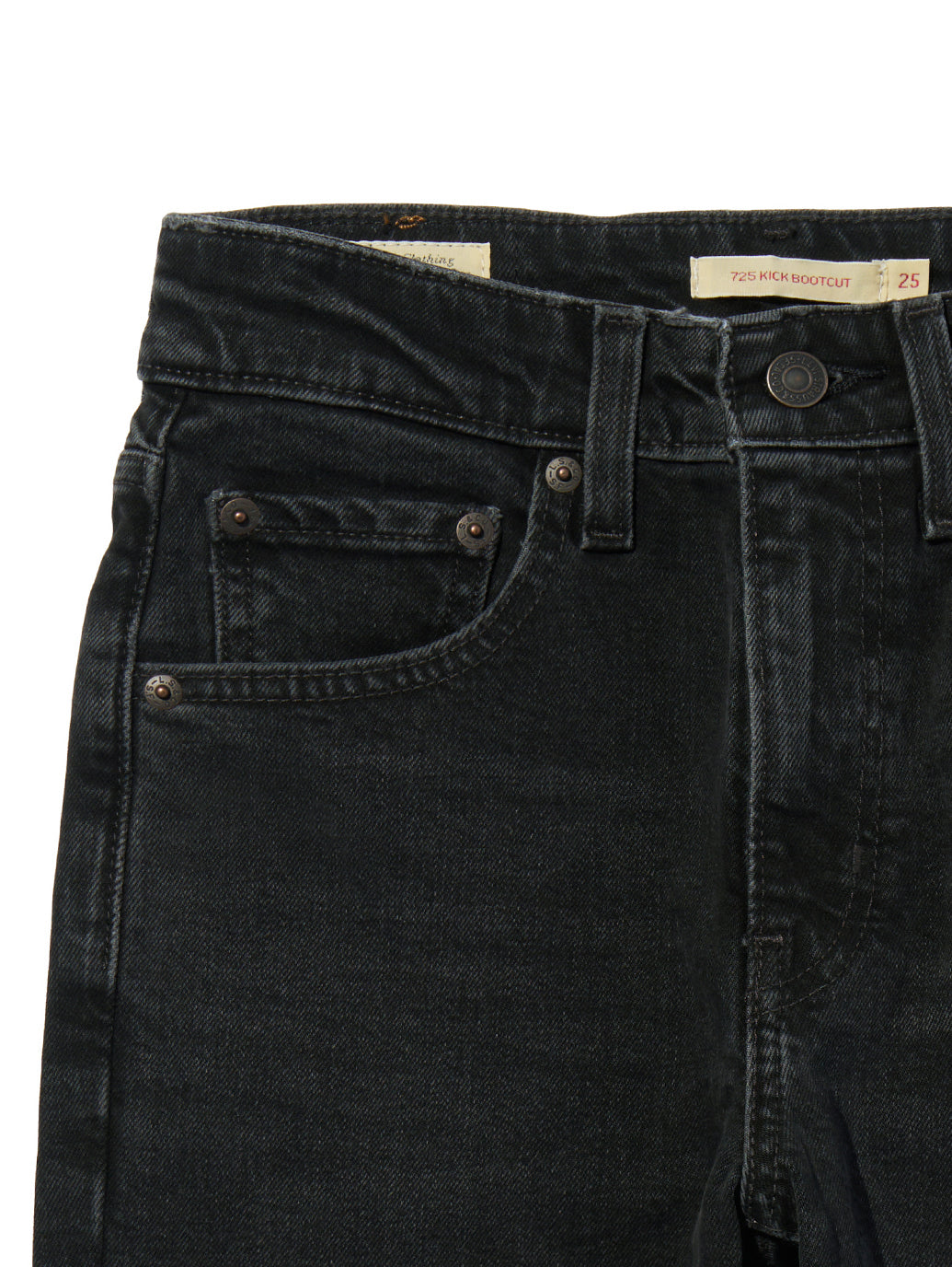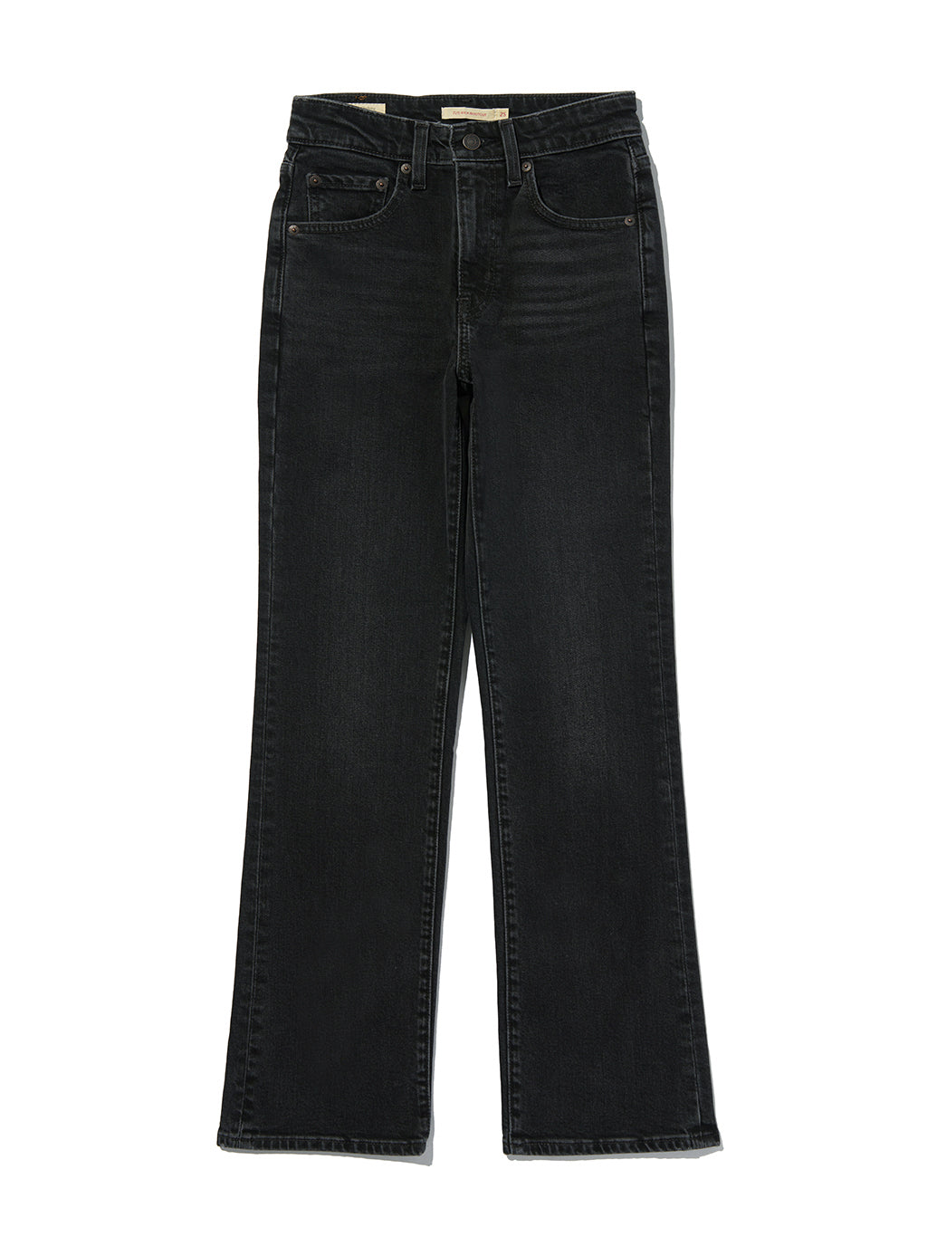 725 キックブーツジーンズは、ウエストをすっきりと見せるハイライズに、脚のラインをきれいに引き立てるスリムなシルエット。裾にかけてほんのり広がるブーツカットが、さりげなくレトロで女性らしい雰囲気を演出してくれる一本です。