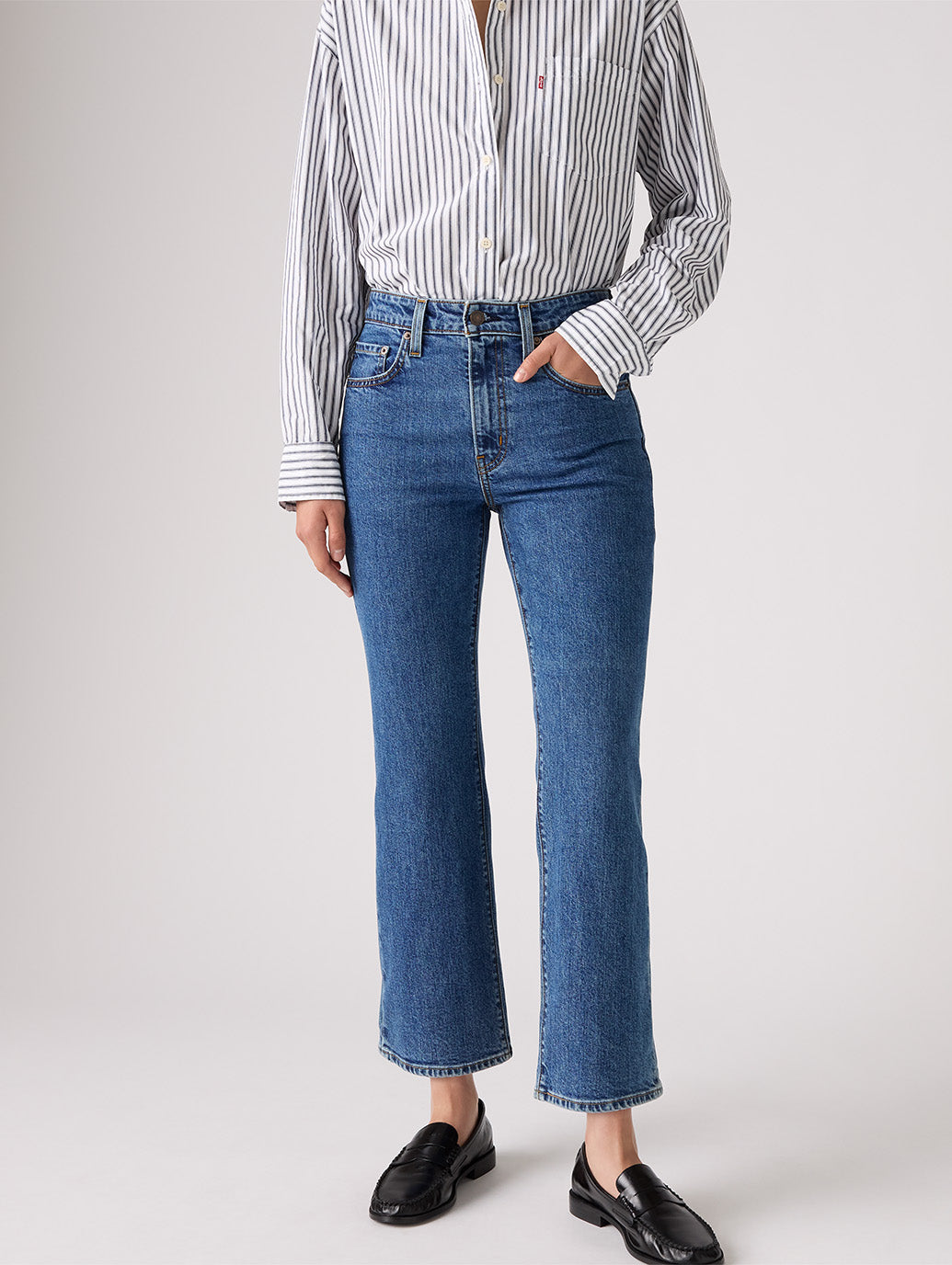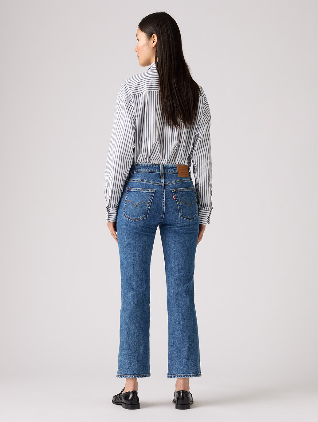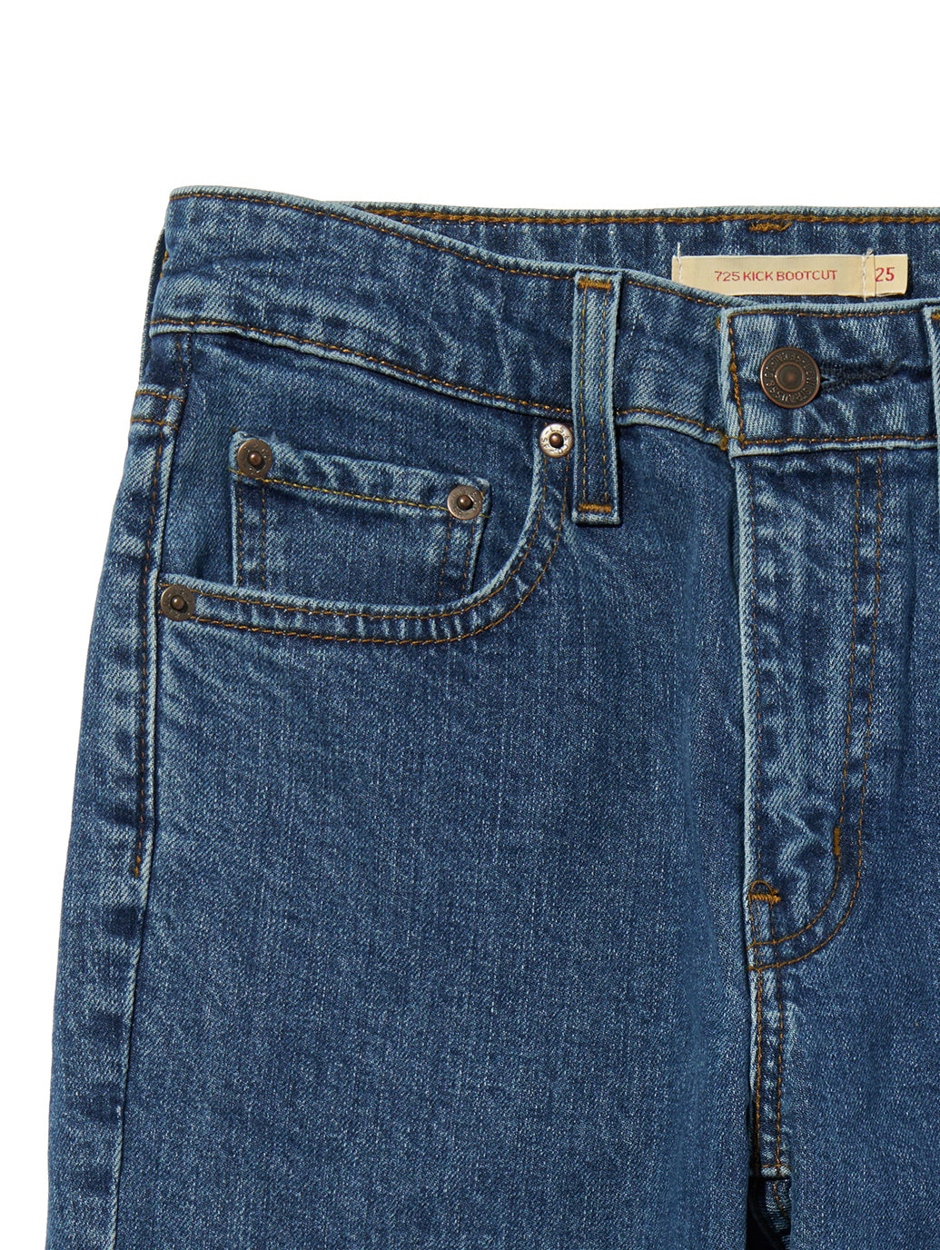超ハイライズと足首にかけて美しく広がるブーツカットを融合させた、725 キックブーツジーンズ。
