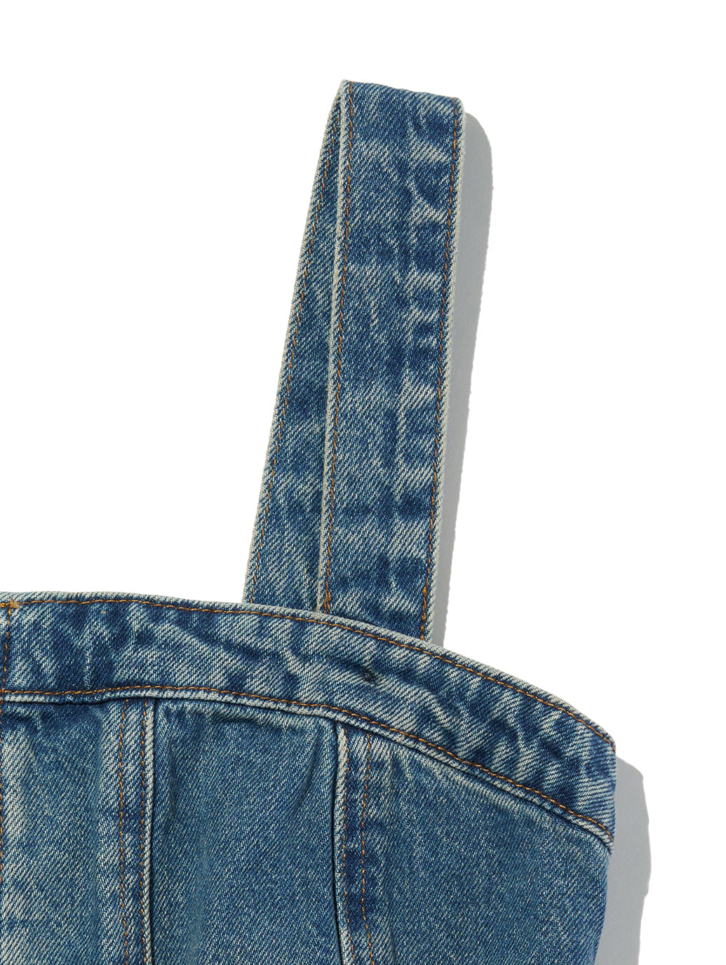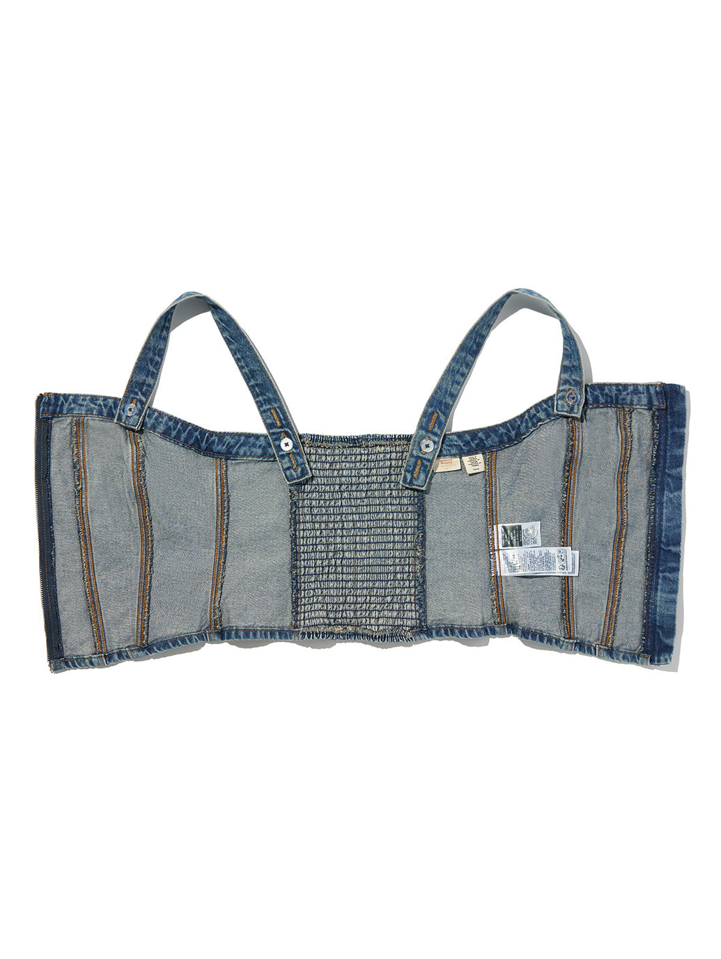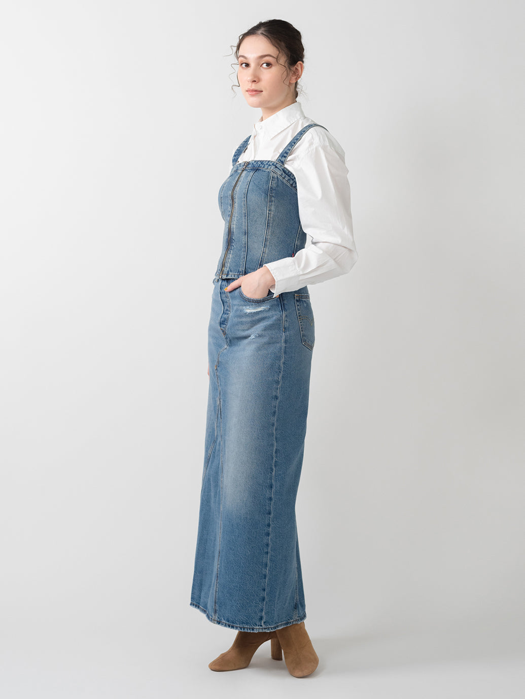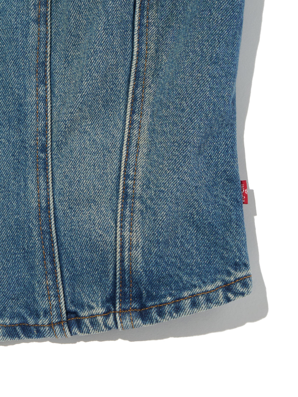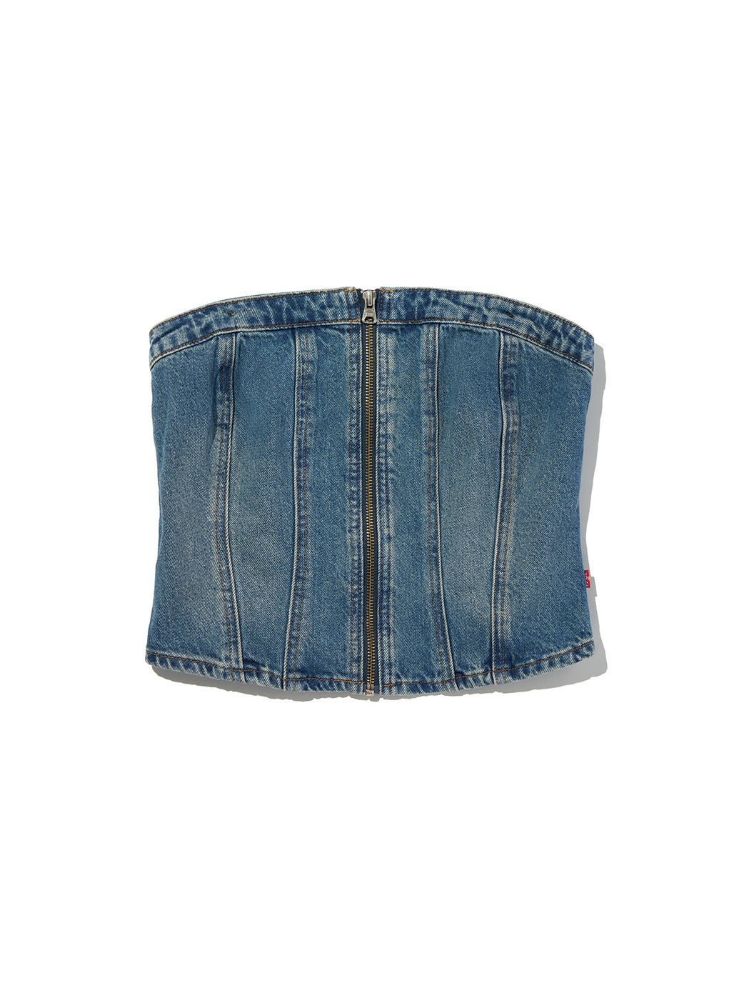 Levi'sらしくデニム生地を使用したスカルプドビスチェ。コルセット風のデザイン、フロントジップアップのスリムフィットが特徴で、春先にはシャツの上に合わせる着こなしもお勧めです。ストラップは取り外し可能でオールシーズン活躍するアイテムです。
