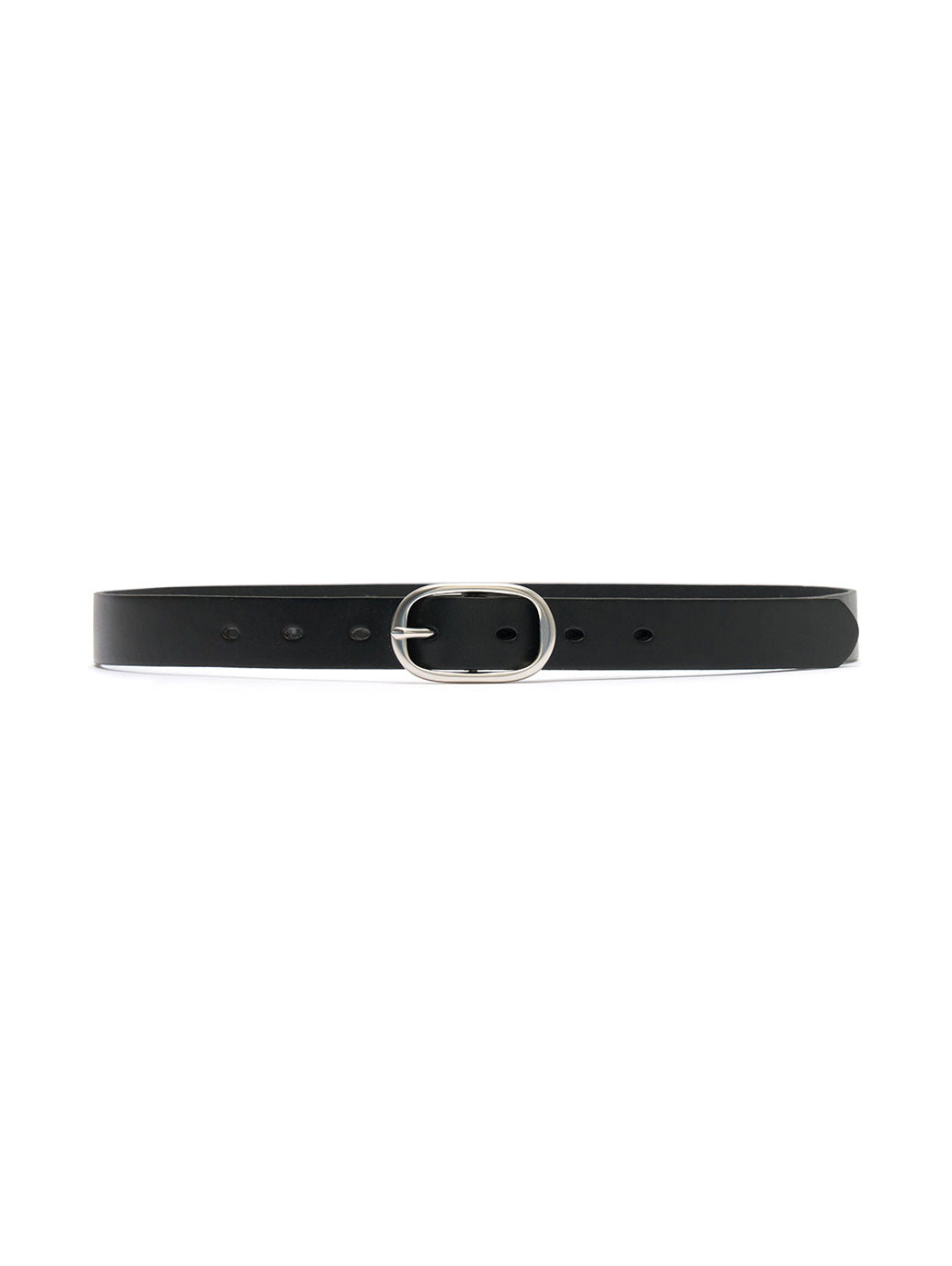 丈夫で長持ちする本革を使ったレザーベルト 。ブラックカラー、耐久性のある構造、丸みのあるバックルのデザインです。スタイリングのアクセントとして活躍するアイテムです。