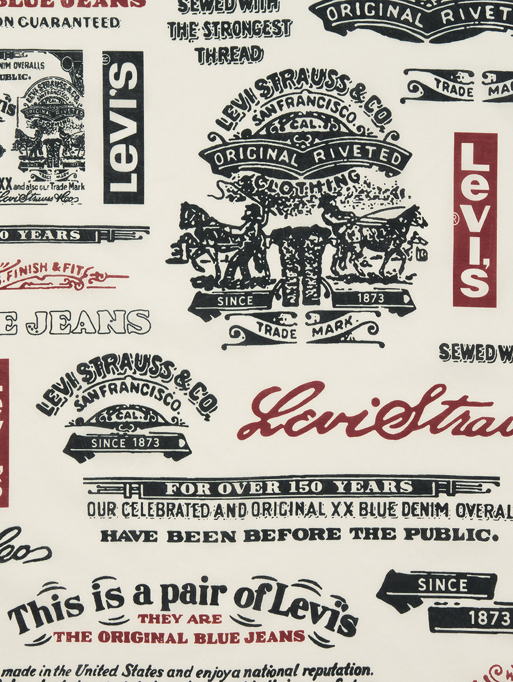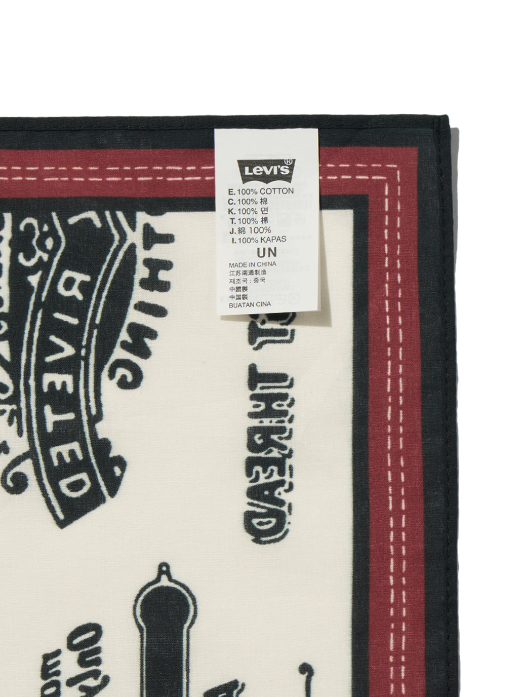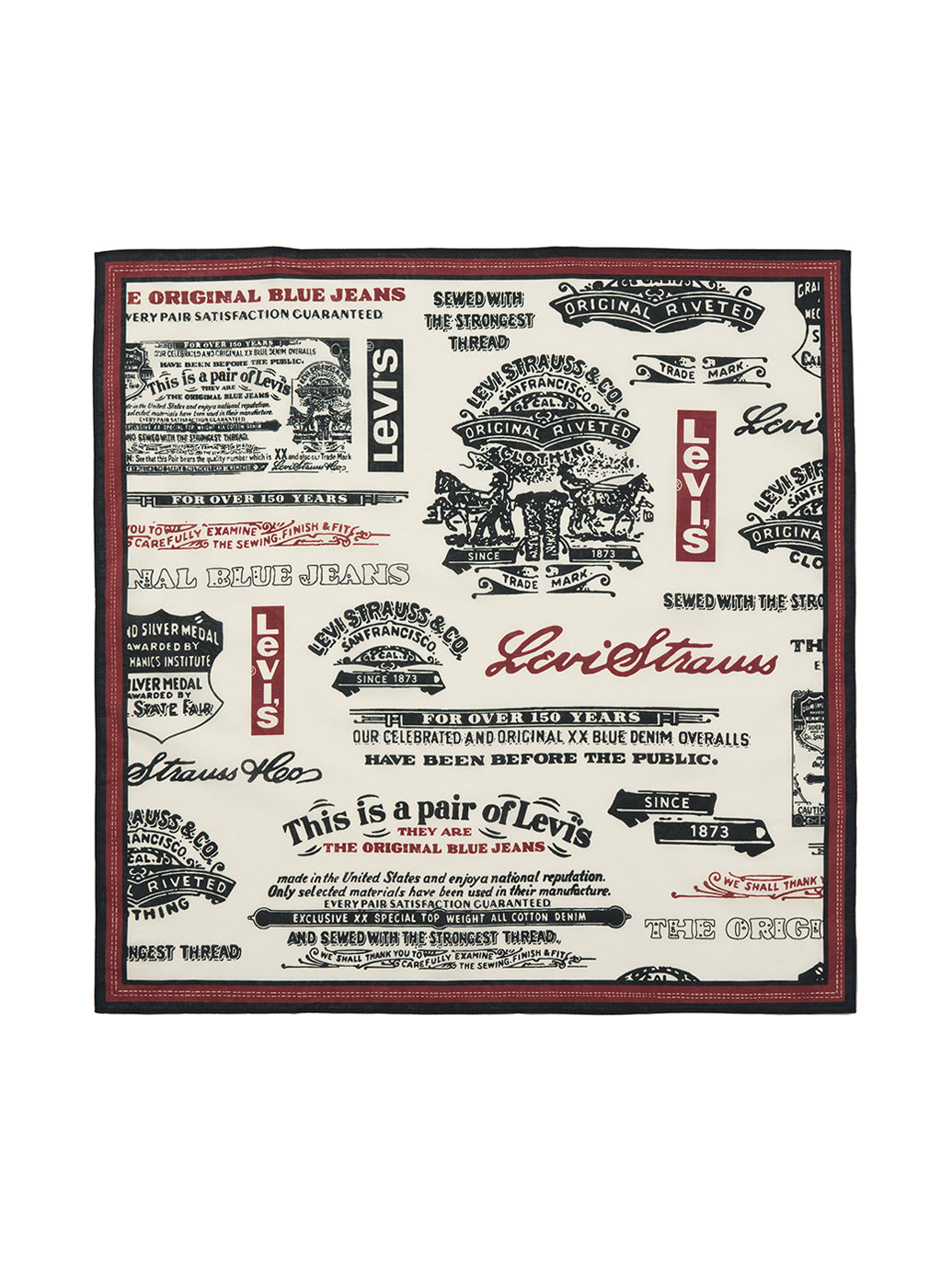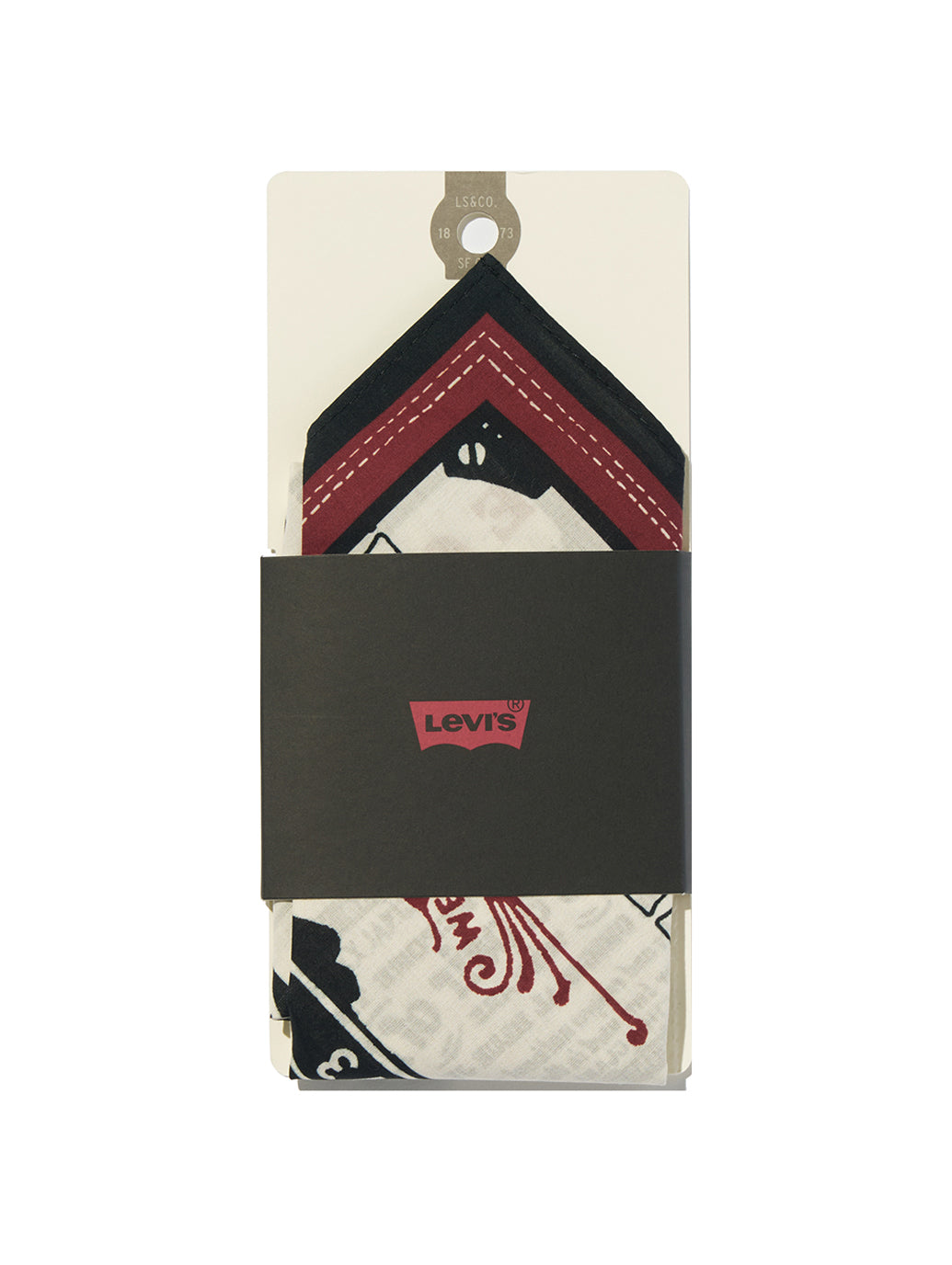 レッドタブ®、ツーホース・マークなどLevi’sを象徴とするグラフィックを落とし込んだバンダナ。アウターの胸ポケット、ウエスト周りのアクセントなどスタイリングのアクセントとしても活躍するアイテムです。