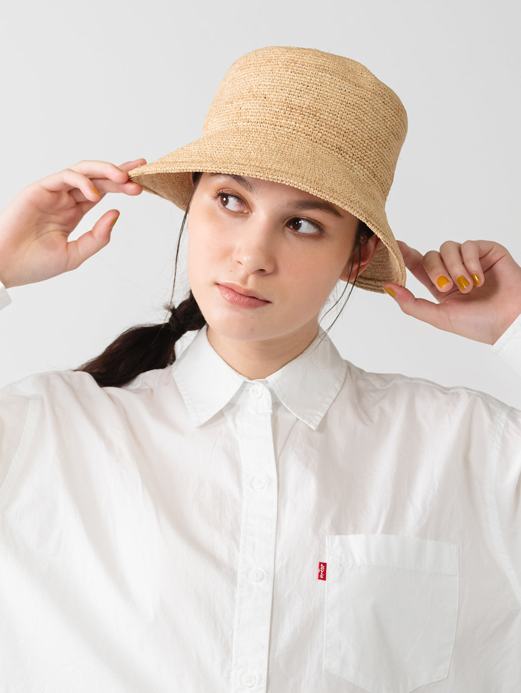 当社のストローバケットハットは、暖かい気候の日のために作られました。快適なフィット感とストローデザインが特徴です。