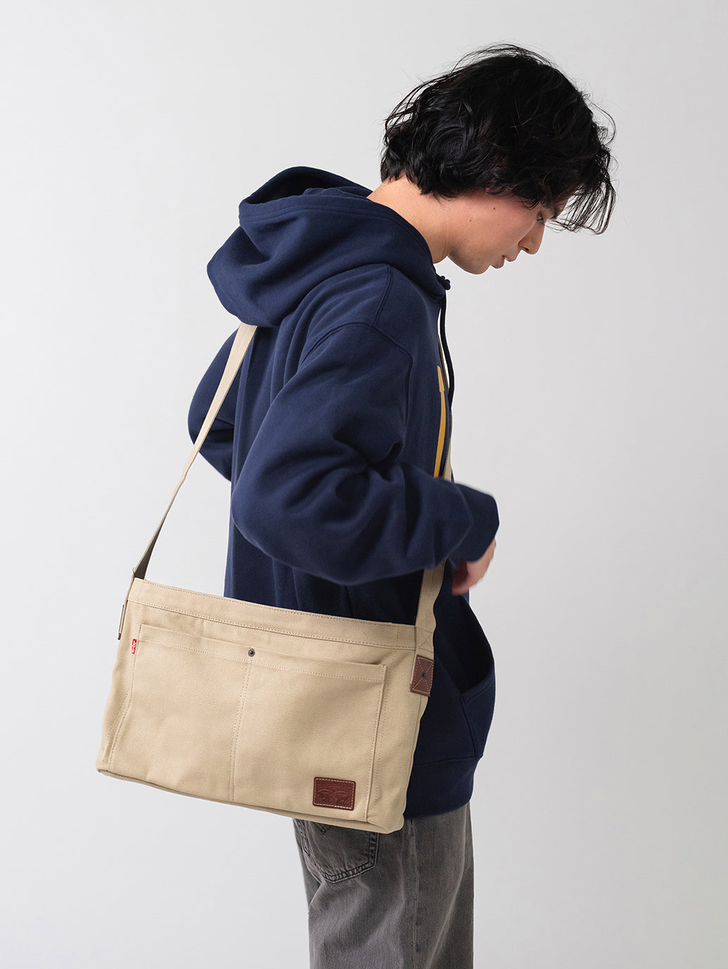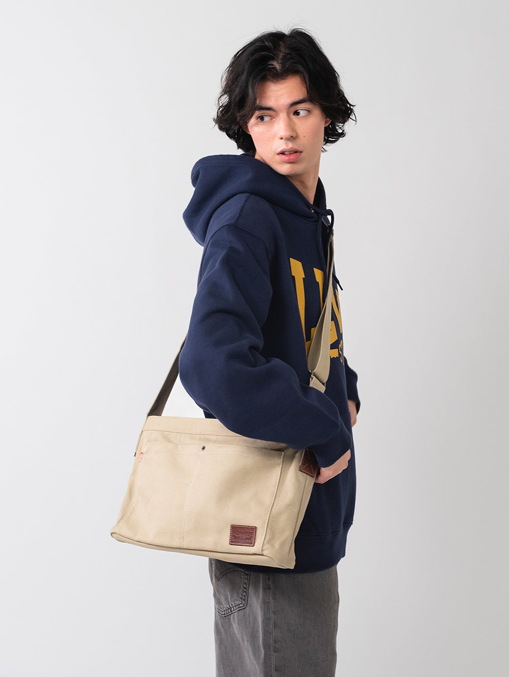 Levi’sらしく耐久性に優れたコットンキャンバスを使用したメッセンジャーバッグ。8.5Lの容量で広々とした内部、調節可能なストラップが特徴です。外側・内側ともにポケットを配し、小物を整理しやすくちょっとした旅行や外出にお勧めのアイテムです。