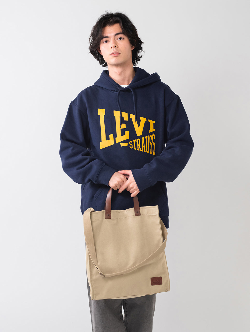 Levi’sらしく耐久性に優れたコットンキャンバスを使用したトートバッグ。調整可能なストラップ、内側にスリップポケットを配したデザイン特徴です。ツーホース・マークのレザーパッチも配し、機能性とデザイン性を兼ね備えたアイテムです。