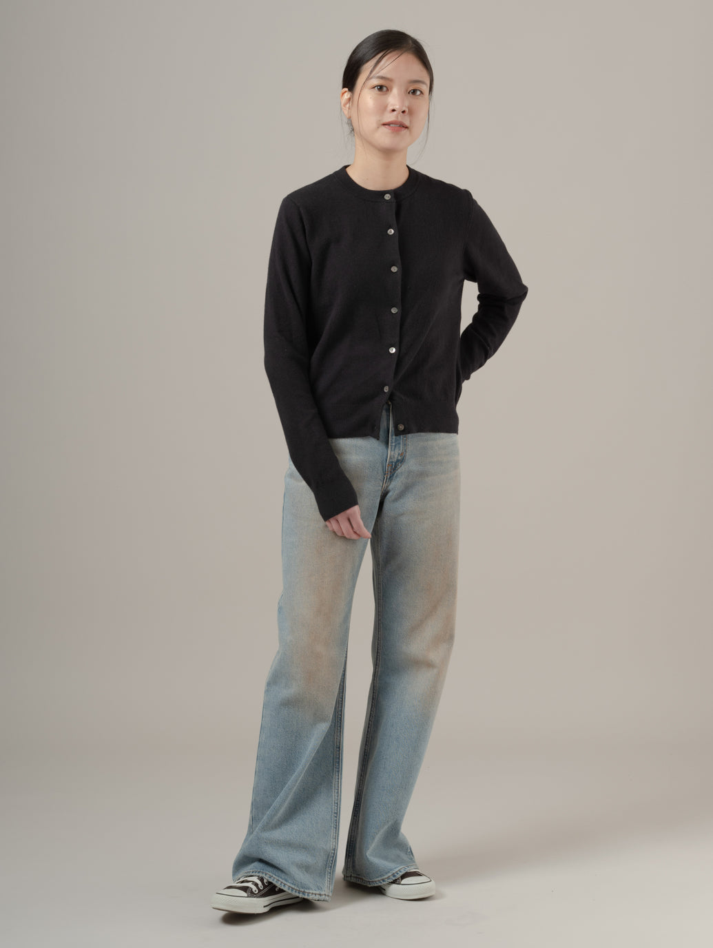 柔らかくて着心地のいい定番カーディガン。 豊富なカラーバリエーション、シンプルで上品なのでどんな服にも合わせやすく、ワードローブの定番アイテムとして理想的な一枚 model:167cm B74 W61 H88 着用サイズ:S
