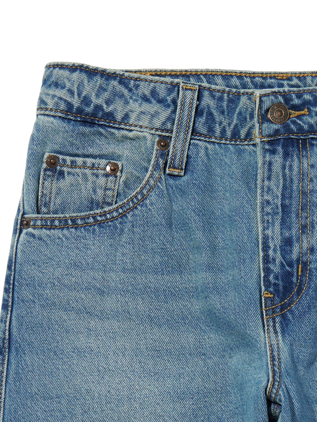 ミッドライズで腰まわりはすっきり、程よいゆとりが脚のラインをきれいに見せてくれる、ラフなのにこなれて見える万能デニム。ほんのり色落ちを効かせたインディゴブルーは、立体感のある表情が魅力。
