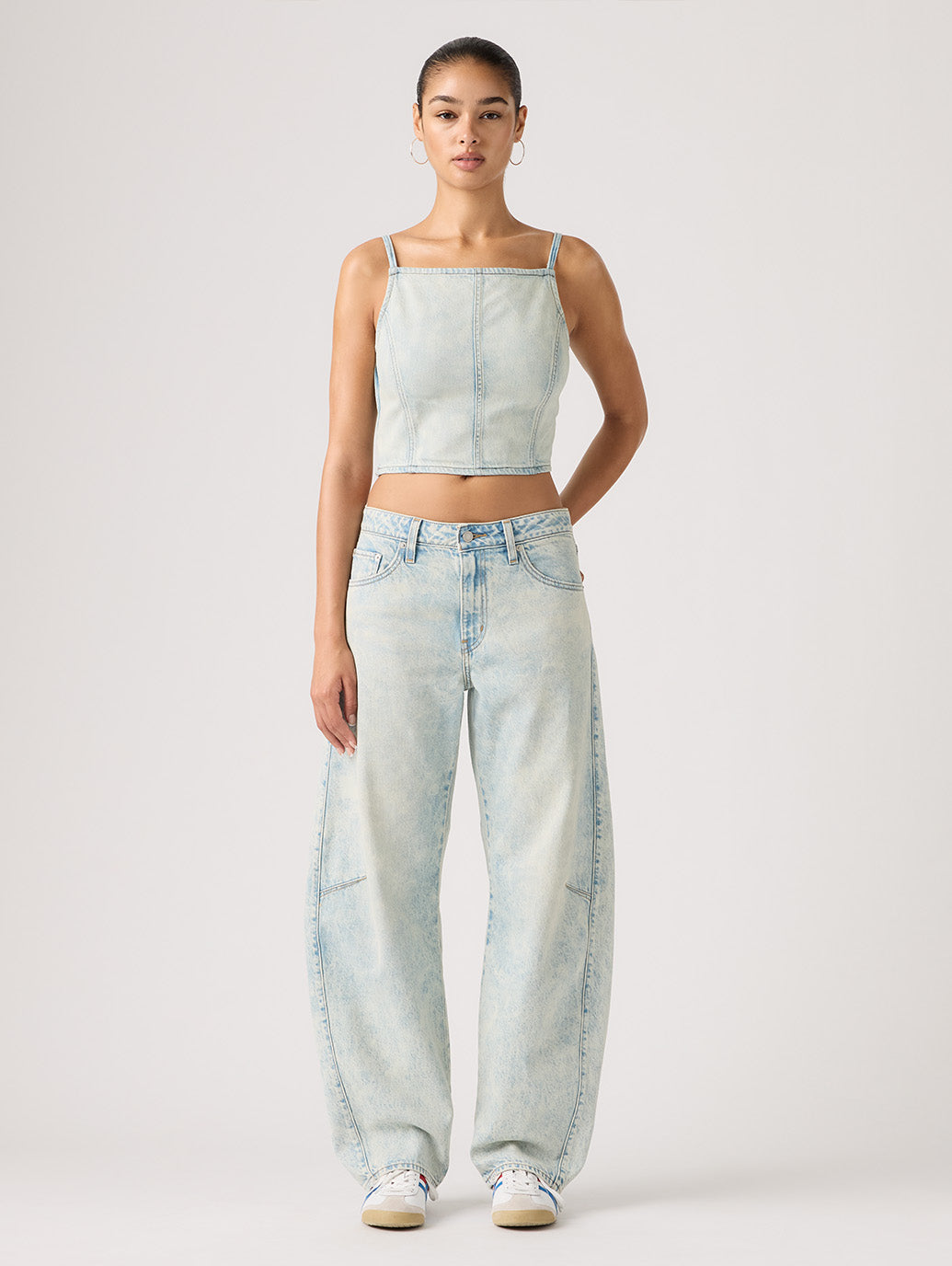 今っぽさとリラックス感、どっちも欲しい人へ。 ゆるっとカーブを描くバギーダッドバレルシルエットは、今や定番のスタイル。 ミッドライズで腰まわりはすっきり、程よいゆとりが脚のラインをきれいに見せてくれる、ラフなのにこなれて見える万能デニム。スウェットやロンTでカジュアルに、コンパクトなトップスでトレンド感のある着こなしもお楽しみいただけます。