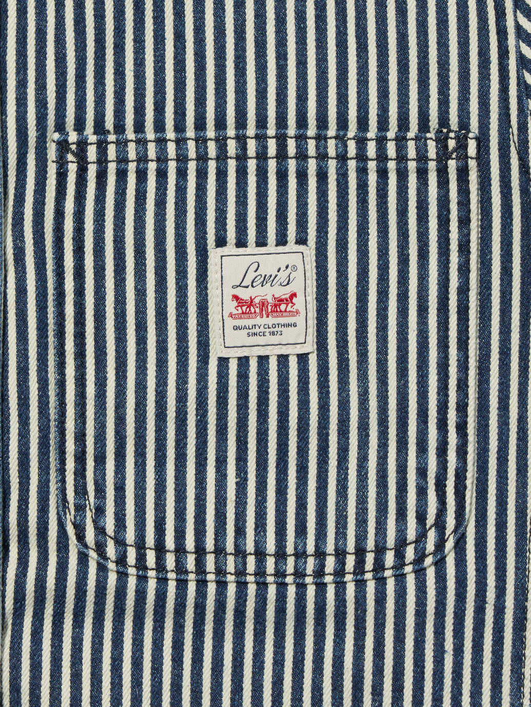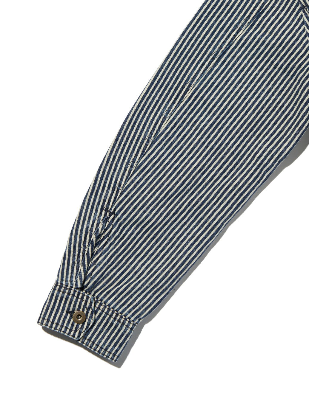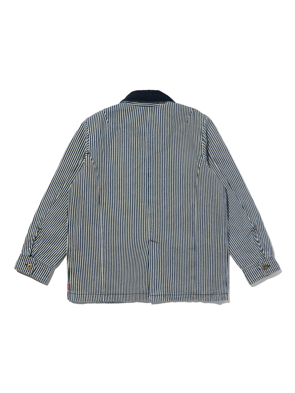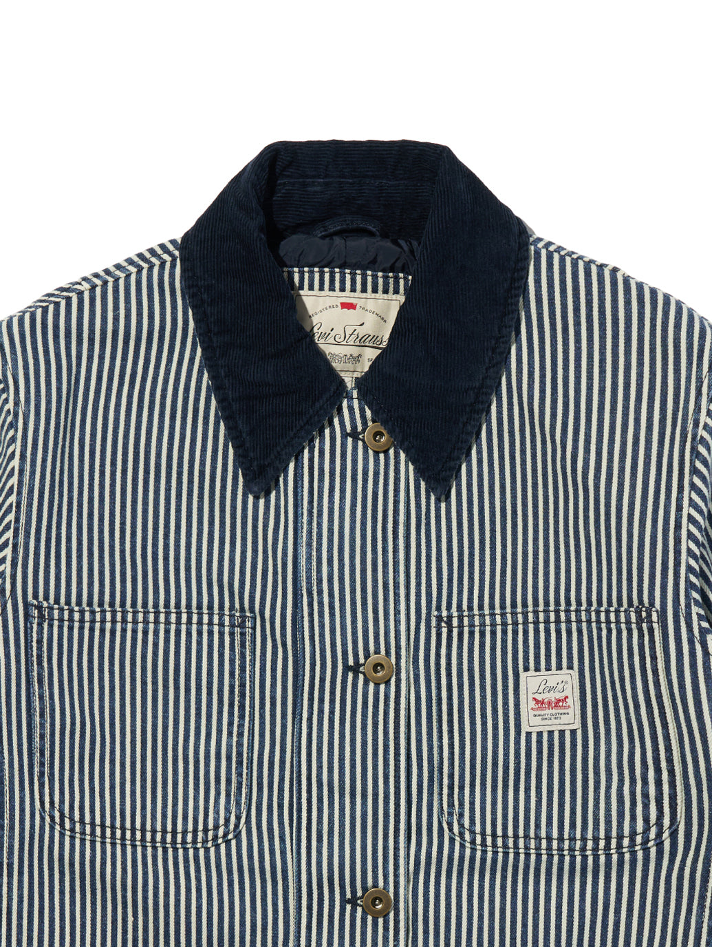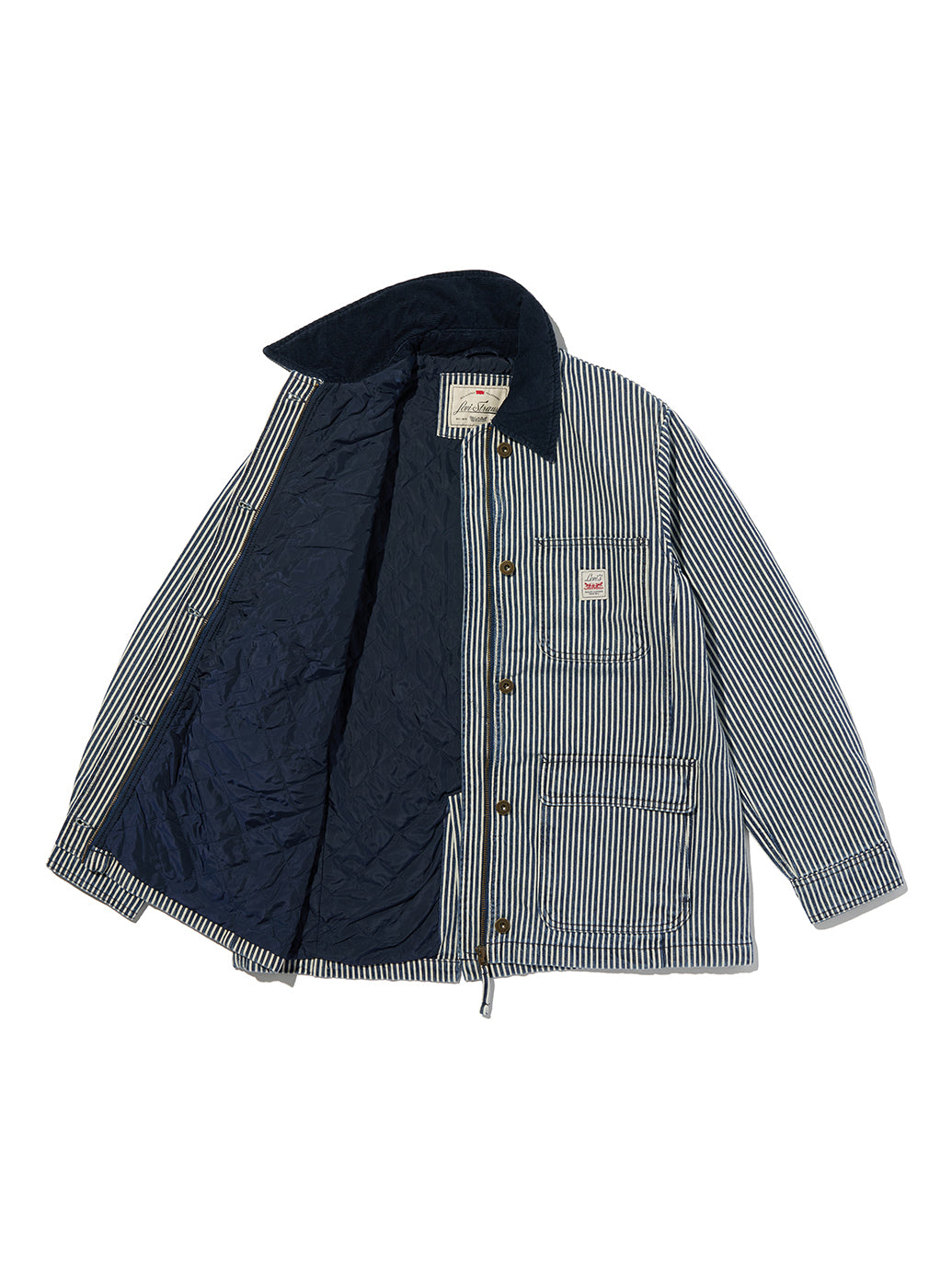 Bree Barn ストライプジャケットは、ジップとボタン留めを組み合わせたフロントデザインがポイント。ゆったりとしたフィット感とロング丈シルエットに加え、レイヤード風のディテールが魅力の一着です。