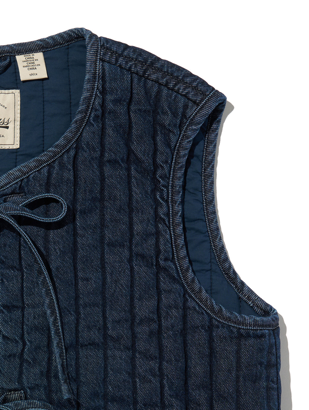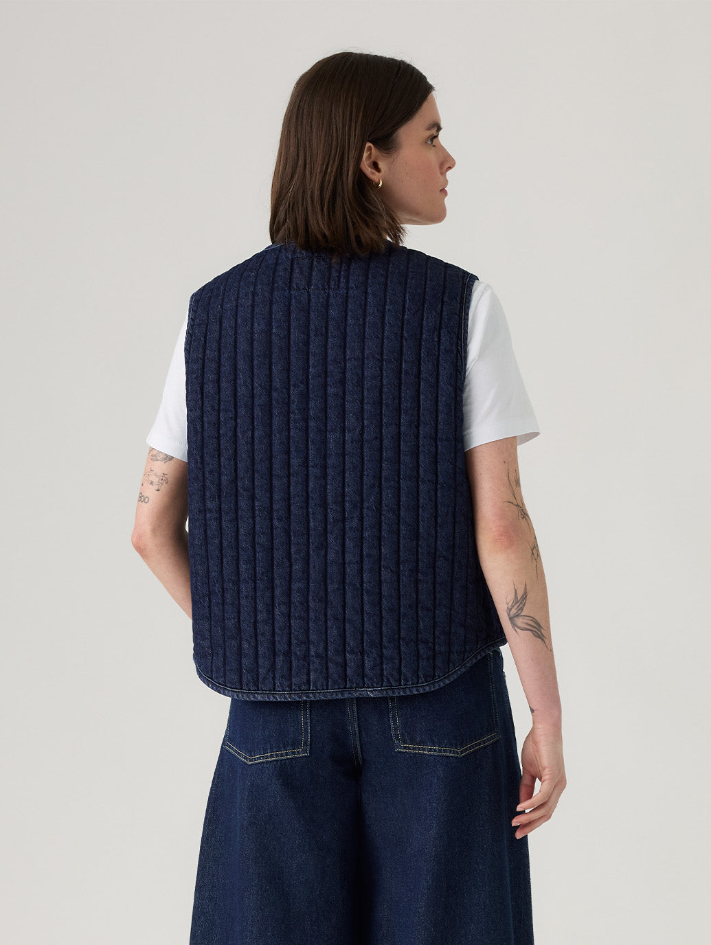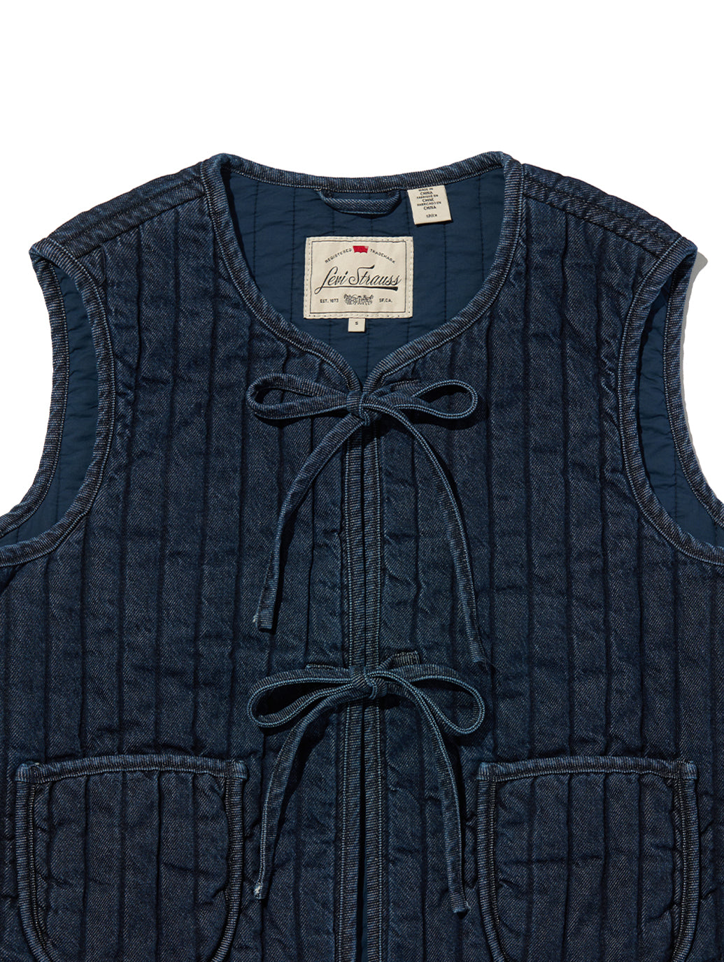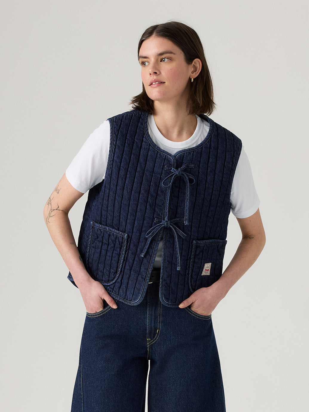 ロッティー ライナー ベストは、上品なキルティングデニムを使用したレディースベストです。タイ留めディテールとスタンダードフィットのシルエットが、コーディネートをスマートに引き締めます。デイリーカジュアルからきれいめスタイルまで幅広く合わせやすく、羽織るだけで着こなしに洗練された印象をプラスします。