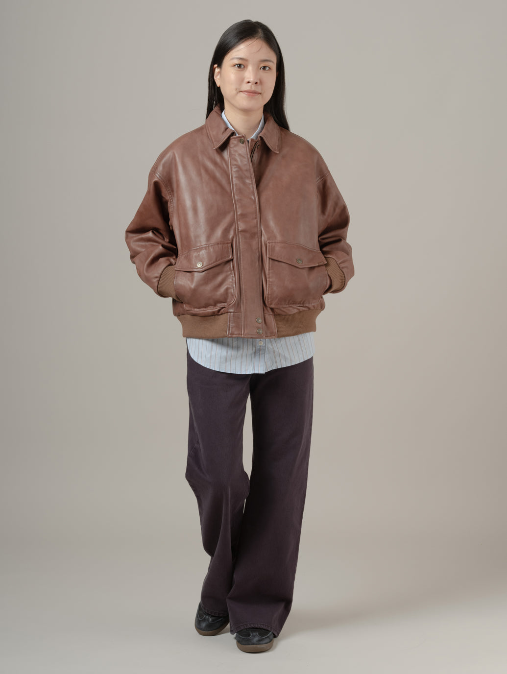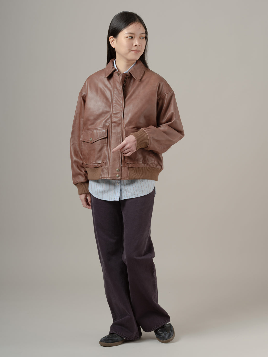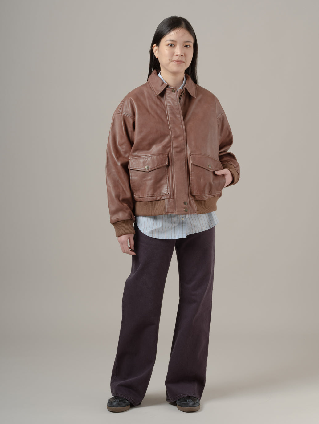 本革を使用したケネディ ダッド ジャケットは、ゆったりとしたリラックスフィットで、収納力に優れた深めの2つのフロントポケット。カジュアルにもきれいめにも合わせやすく、幅広いシーンで活躍します