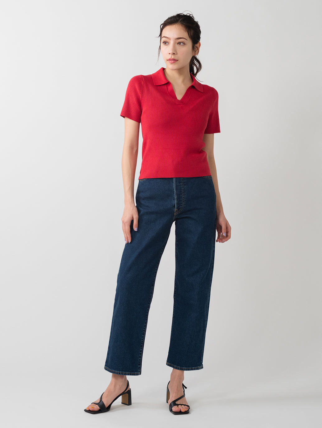現代にあわせてリメイクされたクラシックなポロ。Levi'sのFaithセーターポロは、スタイルを引き立てるVネックや、タイムレスな襟の形、ソフトなリブニットなどのクラシック要素を大切にし仕上げました。目を引くレッドカラーのボディの生地はレーヨン90%が配合されており、しなやかでドレープ感のある生地感がポイントです。ワイドボトムスと合わせてメリハリを出すスタイリングがお勧めの一着です。