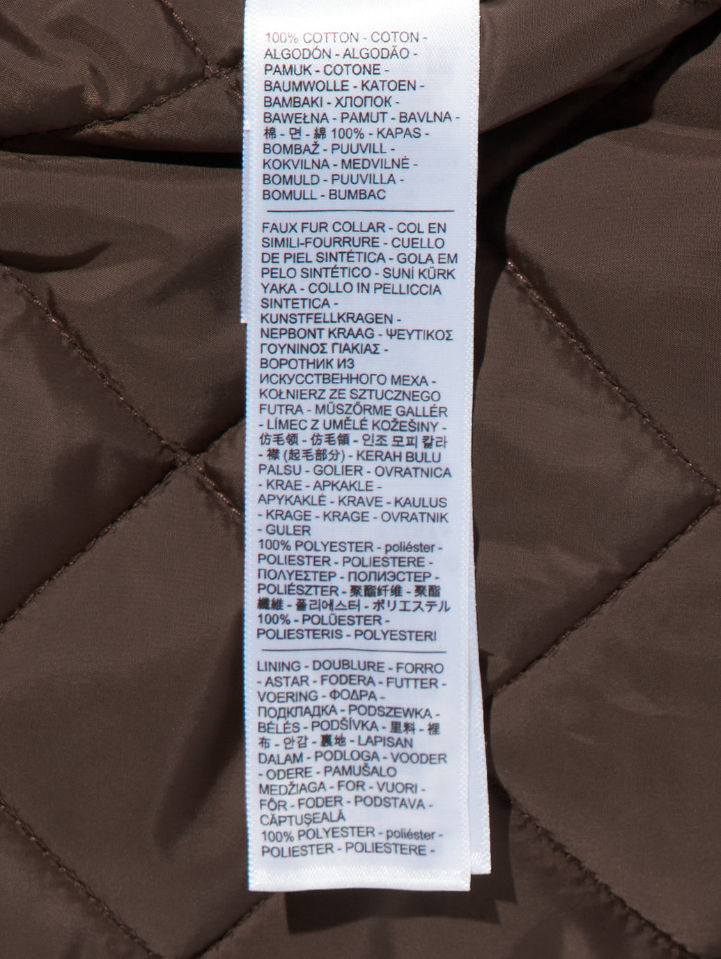 ・綿100%, 裏地:ポリエステル100%, 襟部分ポリエステル100%