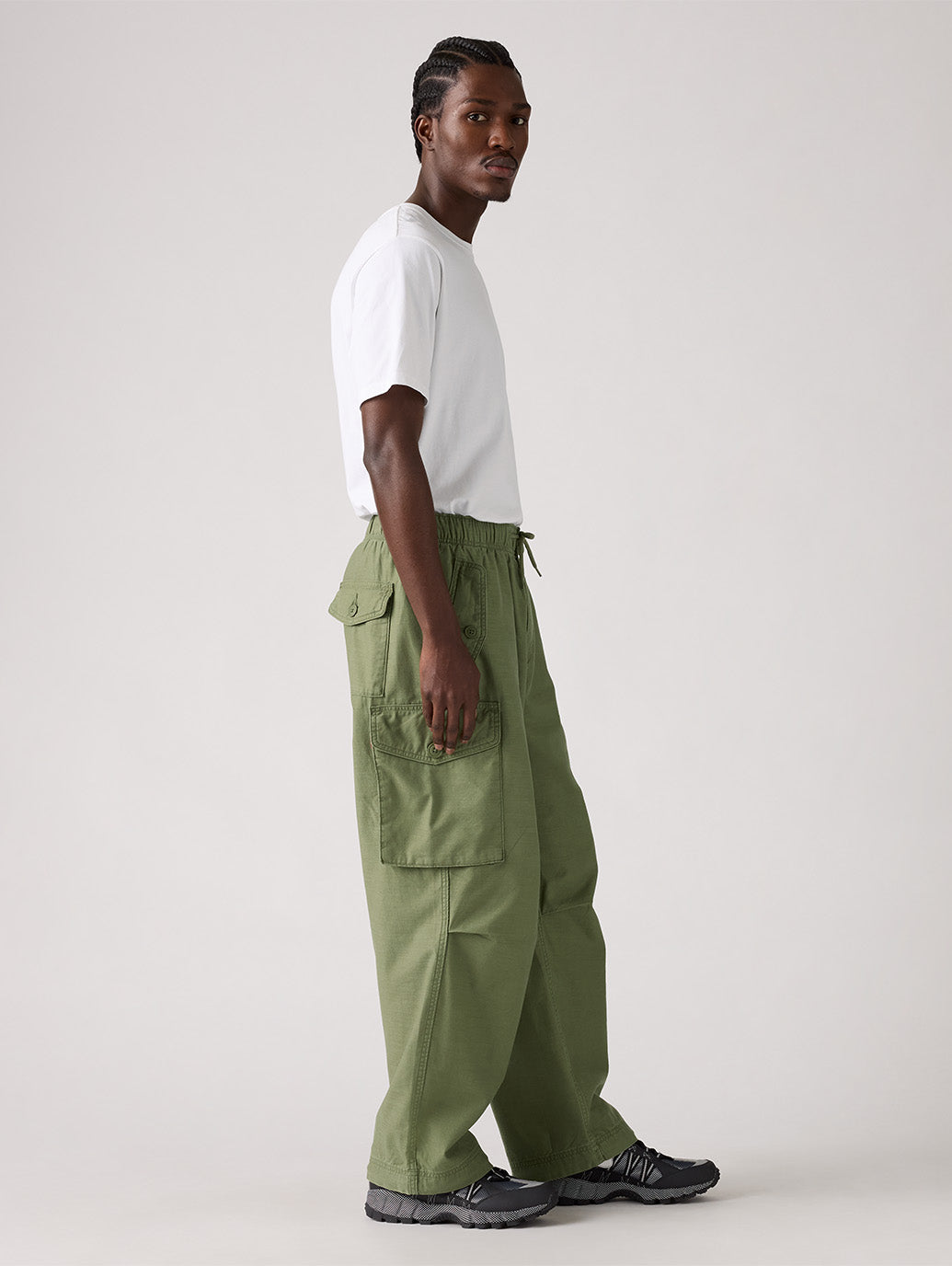 近年の90'sのリバイバルとしてその名の通りルーズでゆったりとしたストレートシルエットにワークテイストを落とし込んだパンツです。カーキカラーで耐久性のある綿100%の生地、通常の5ポケットに加え2つのカーゴポケットが配されているのが特徴です。ファッションアイテムとしてのみならず作業着としても活躍する一本です。
