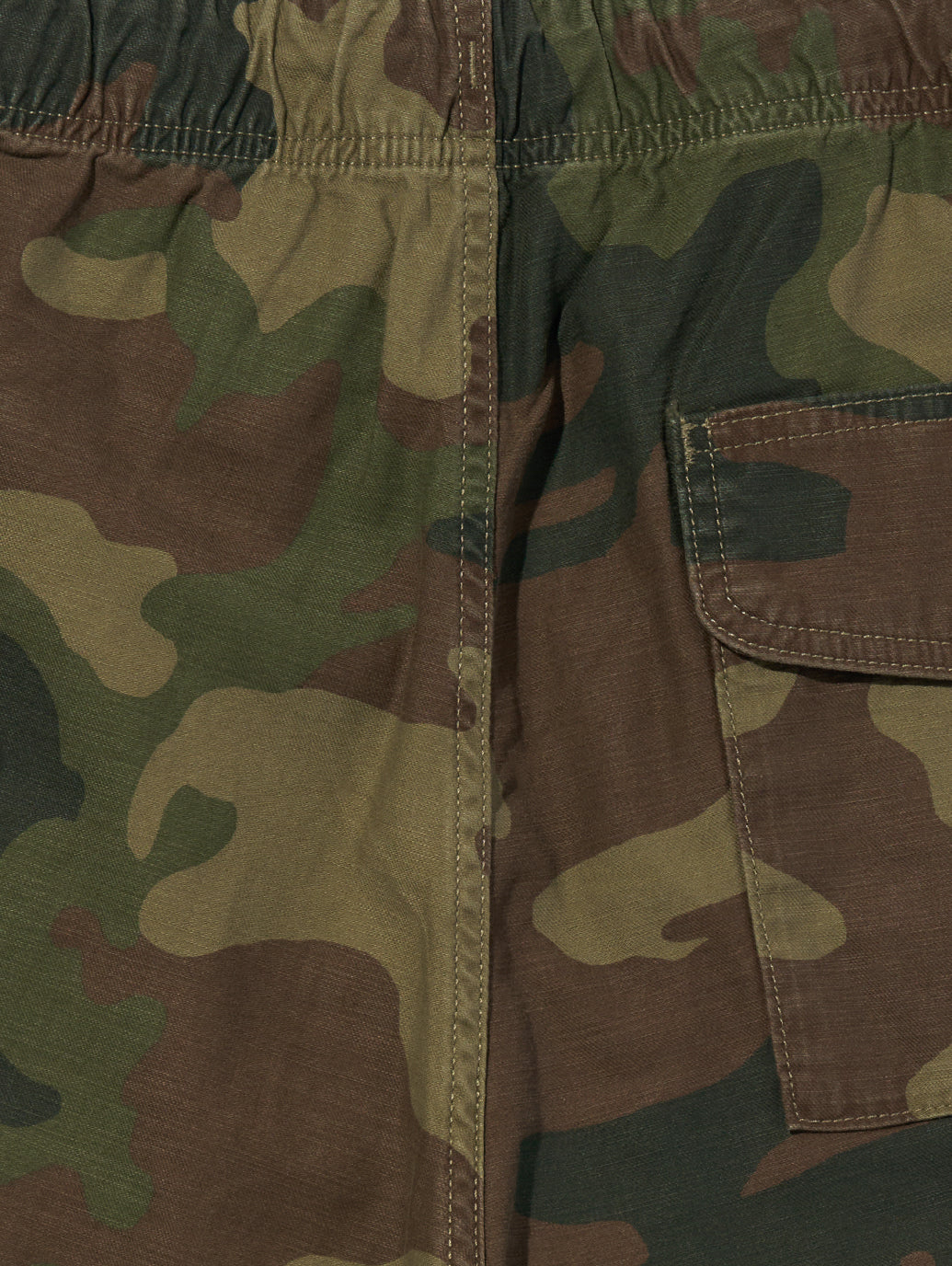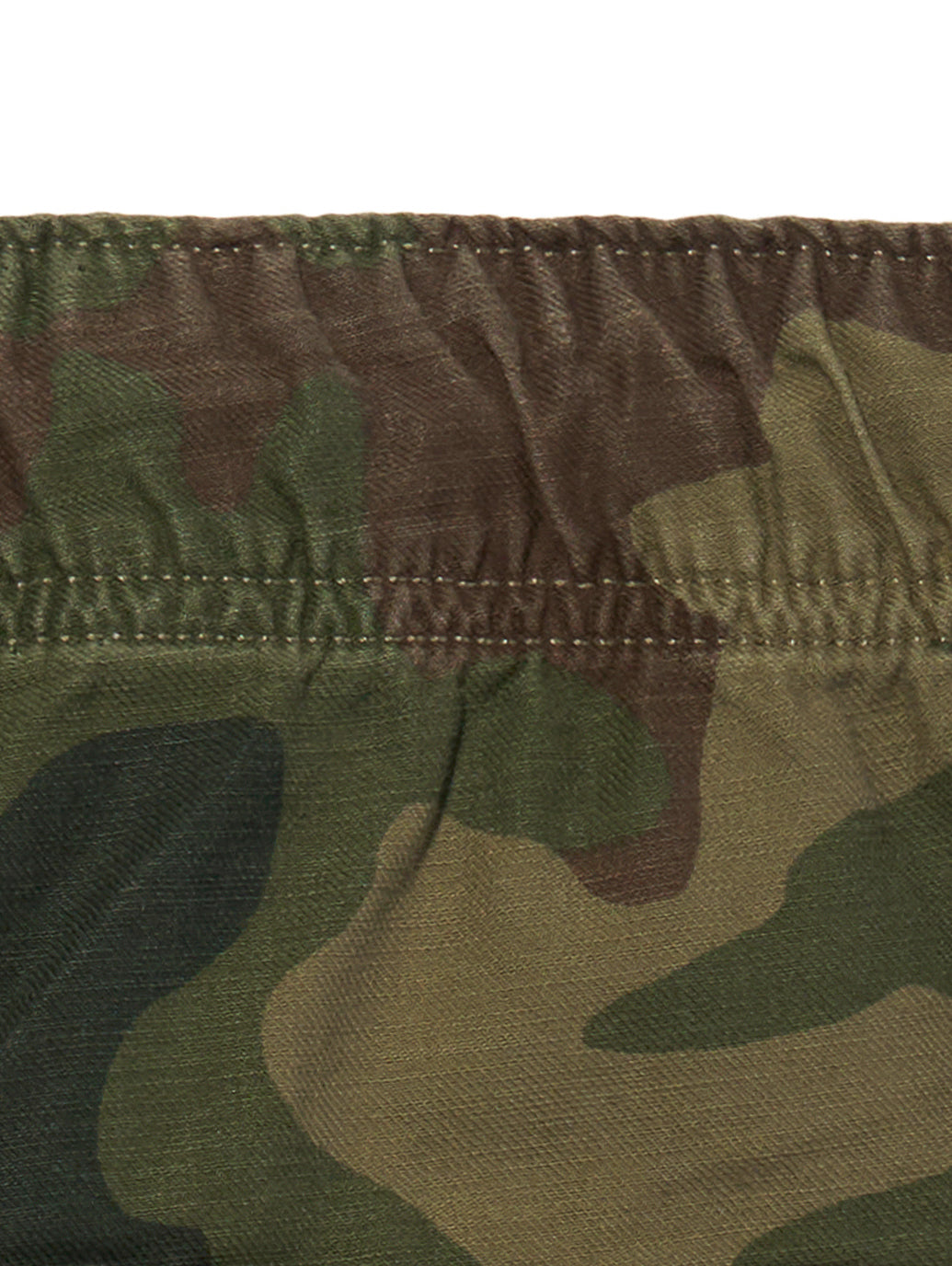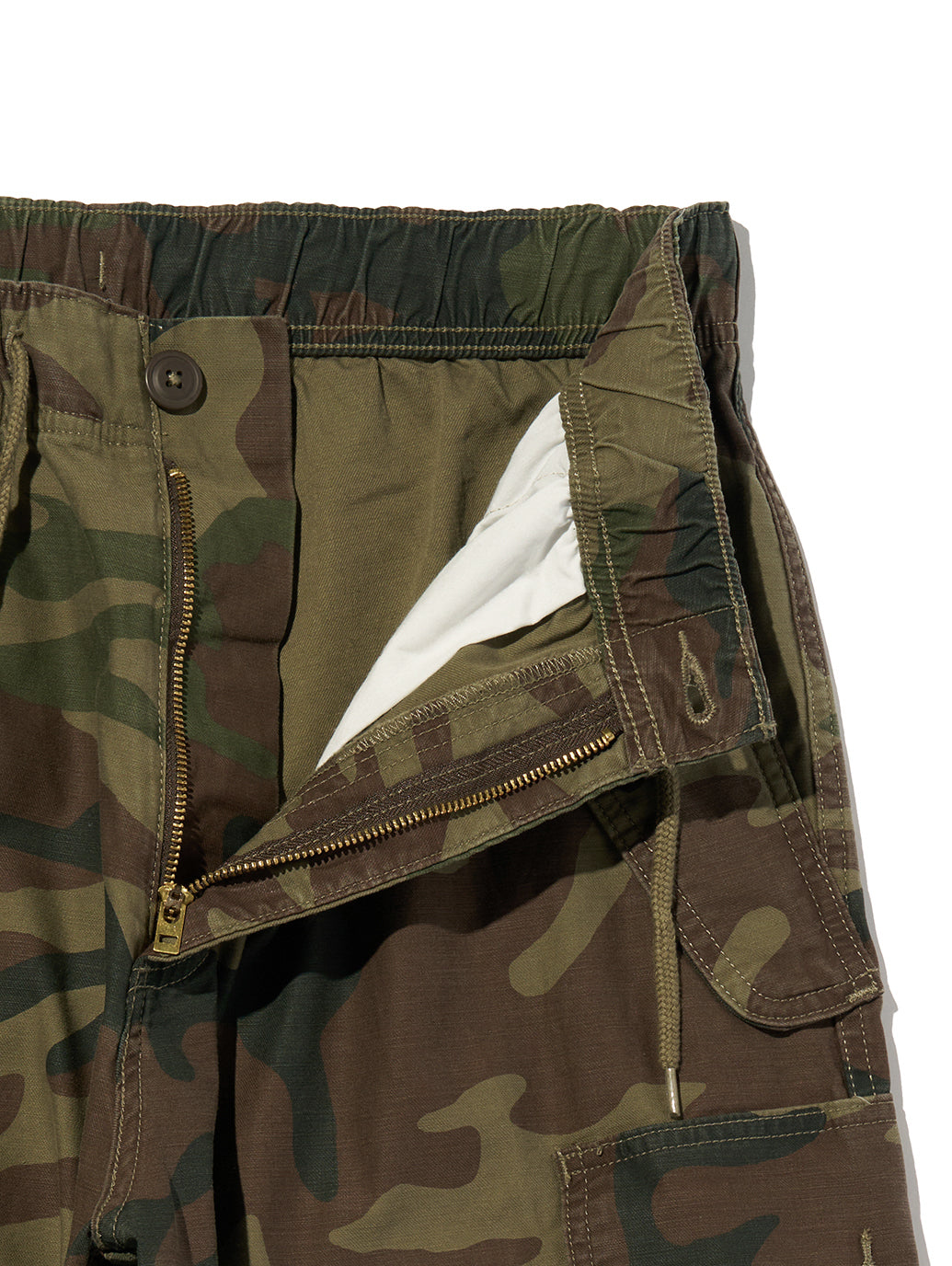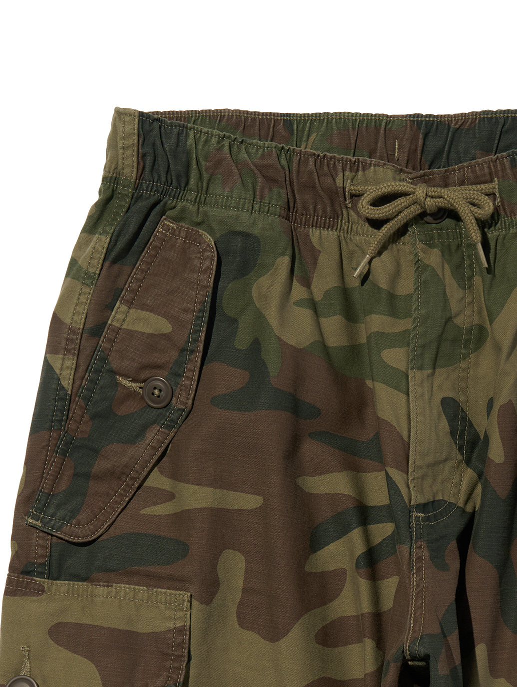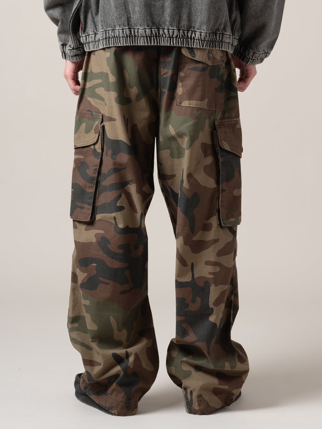 近年の90'sのリバイバルとしてその名の通りルーズでゆったりとしたストレートシルエットにワークテイストを落とし込んだパンツです。迷彩柄で耐久性のある綿100%の生地を使用し、調節可能なウエスト仕様により快適なフィット感を実現。必需品を収納できる2つのカーゴポケットが配されているのが特徴です。ファッションアイテムとしてのみならず作業着としても活躍する一本です。 model:181cm B89 W68 H83 着用サイズ:33inch