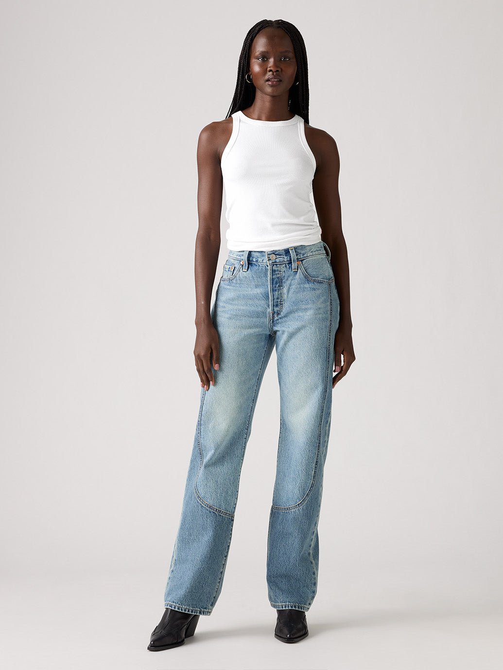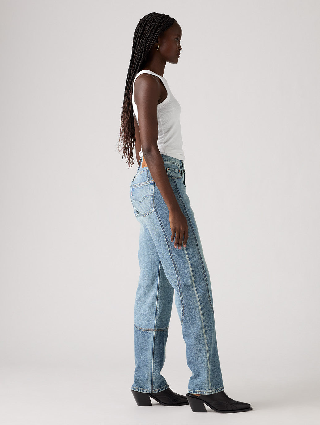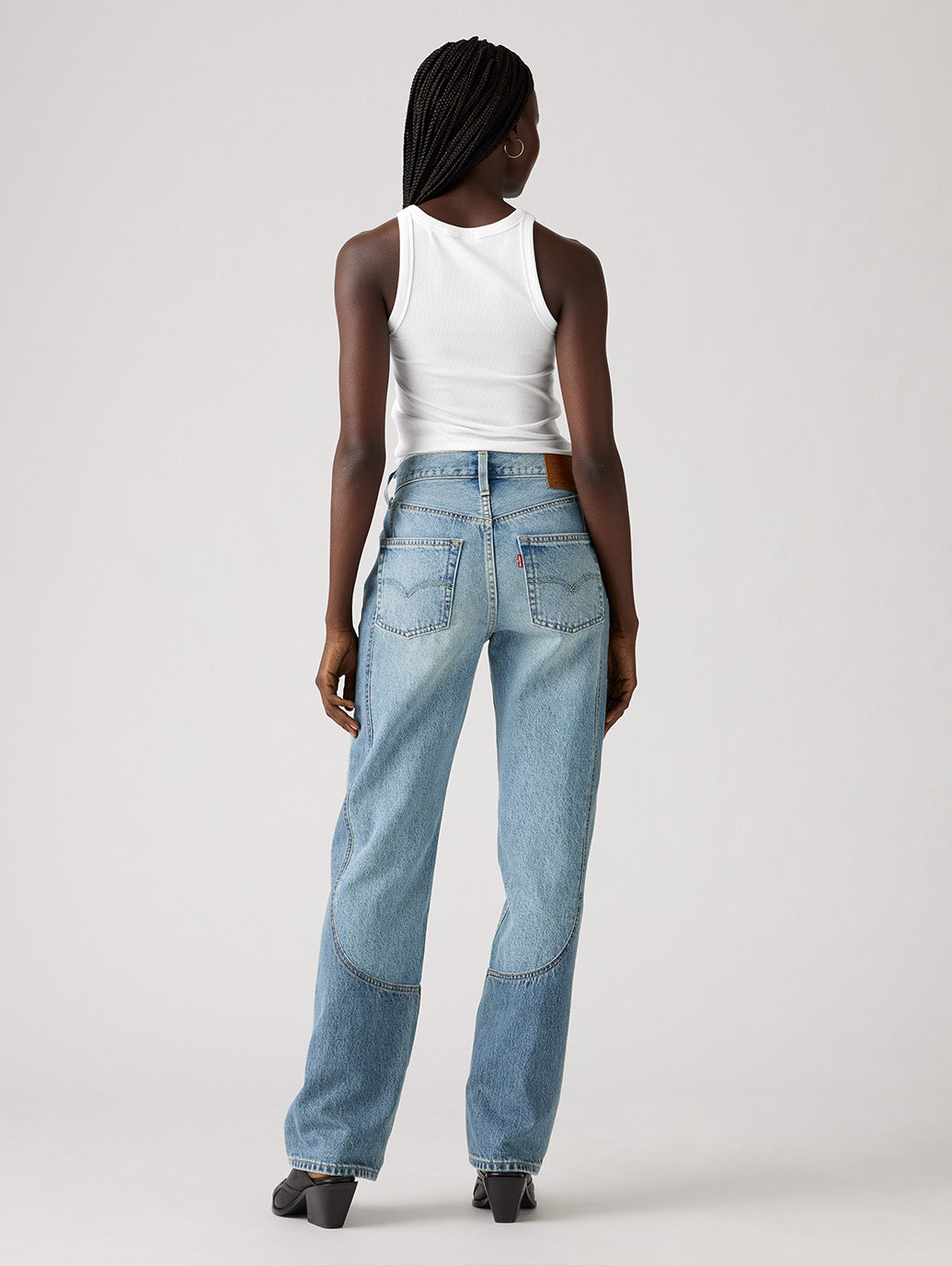 クラシックなミッドライズ、チャップスから着想を得たディテール、そして脚にほどよい余裕を残したルーズストレートなシルエット。