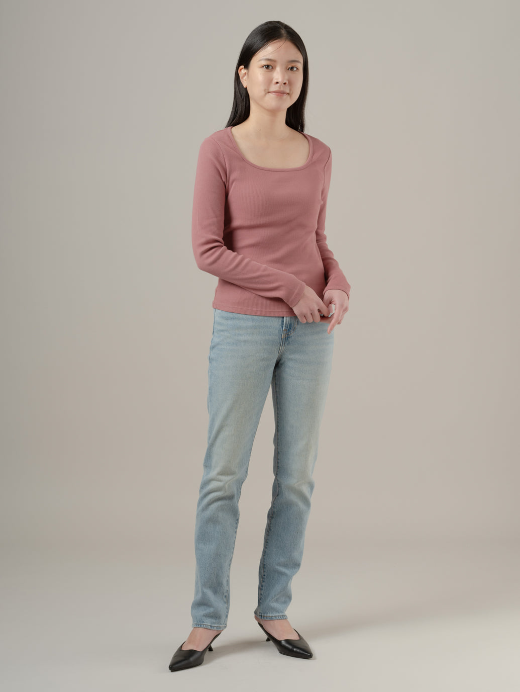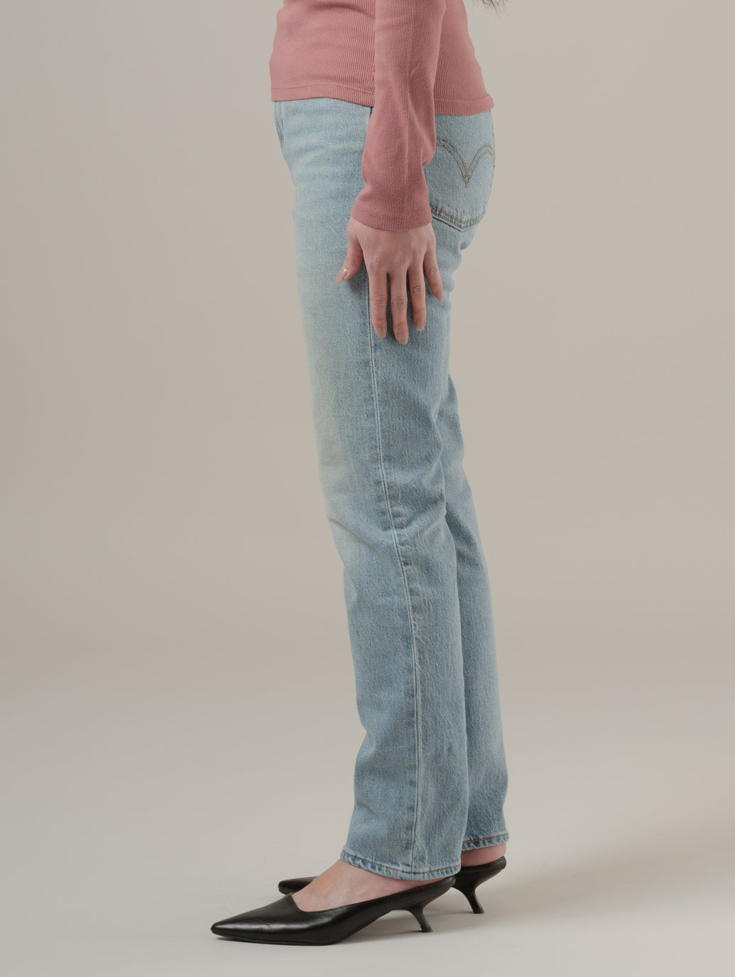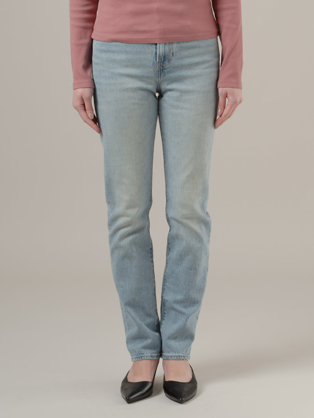 誰もが憧れる定番スタイルを、すっきりと洗練されたシルエットに。 ヴィンテージライクなWedgie Slim ジーンズは、ヒップラインをきれいに見せるこだわりの構造で、美しいスタイルを叶えます。 程よくフィットするシルエットが魅力で、どんなトップスにも馴染む一本。 毎日のワードローブに欠かせない、タイムレスなデニムです。 model:167cm B74 W61 H88 着用サイズ:26inch