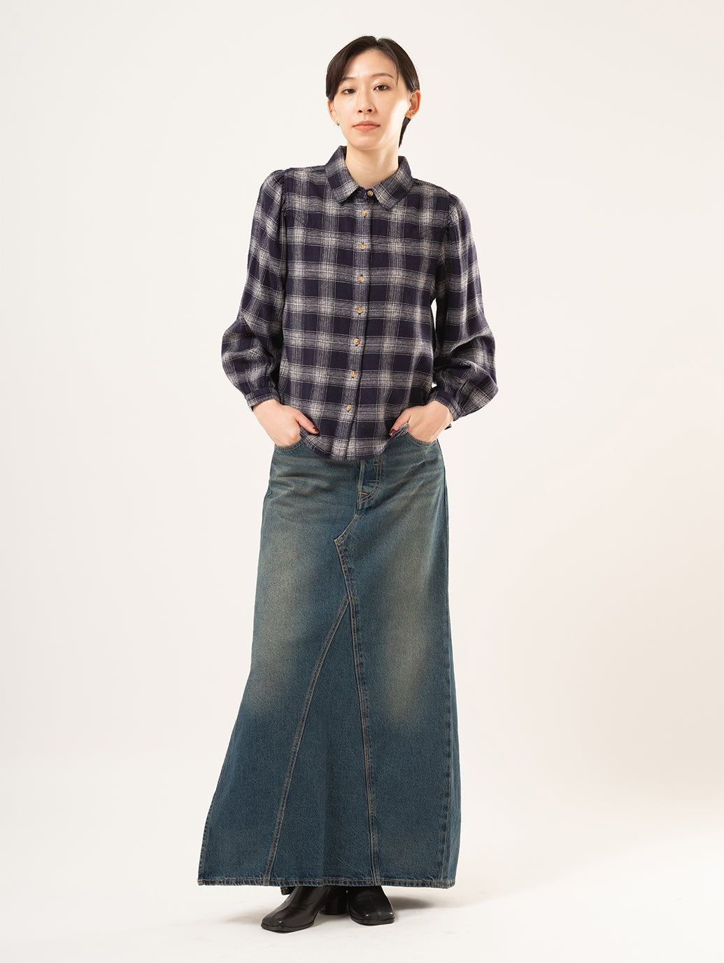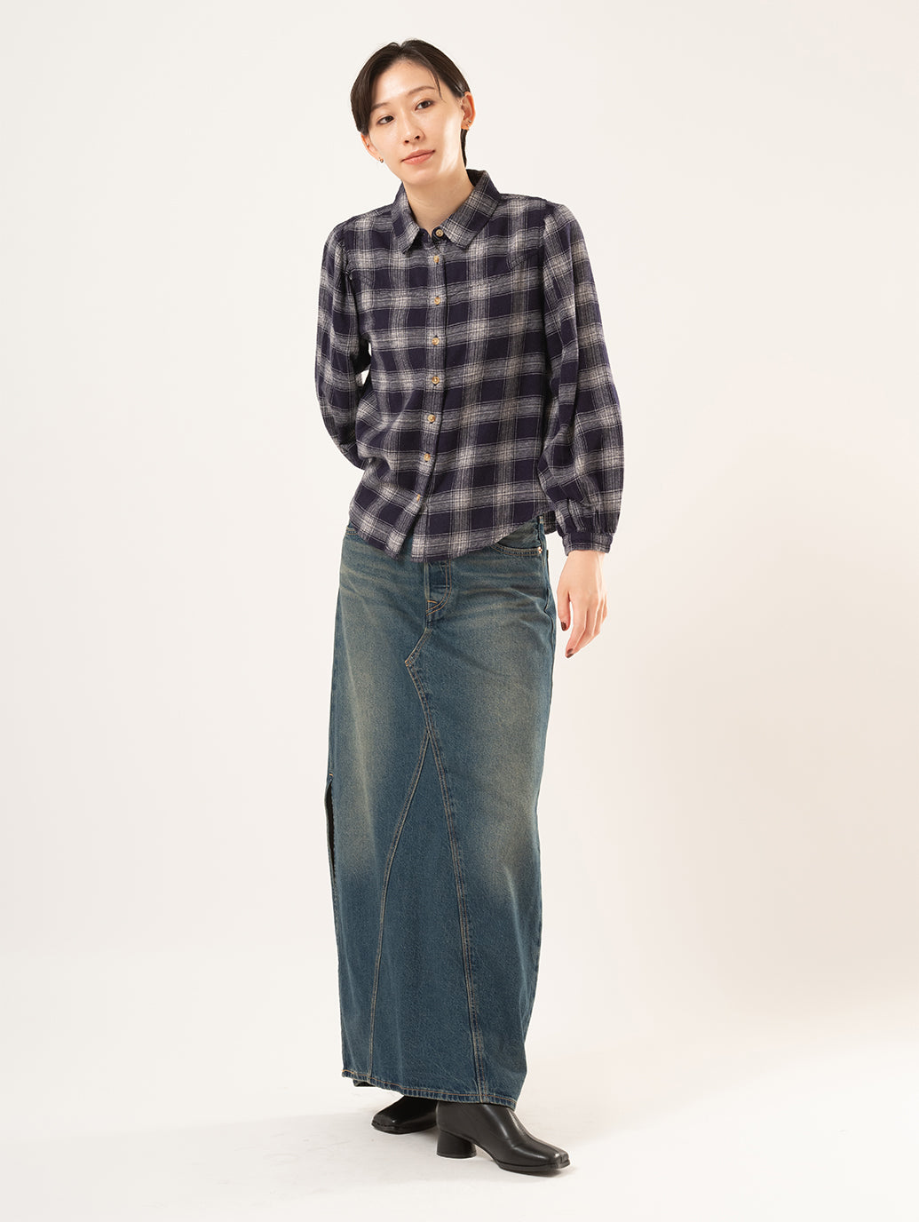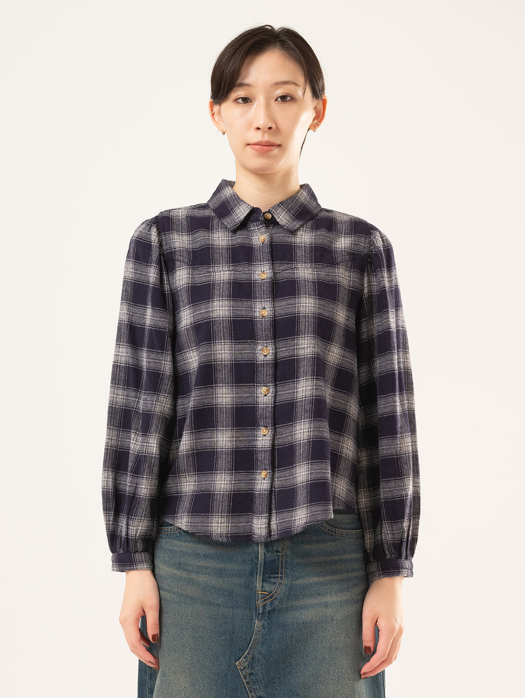 Journey ウエスタンシャツは、クラシックなボタン留めのフロントと、特徴的なウエスタンヨークのディテールを備えた一枚です。程よくボリュームのある袖がデザインのアクセントとなり、カジュアルからトレンド感あるスタイルまで幅広く活躍します。
