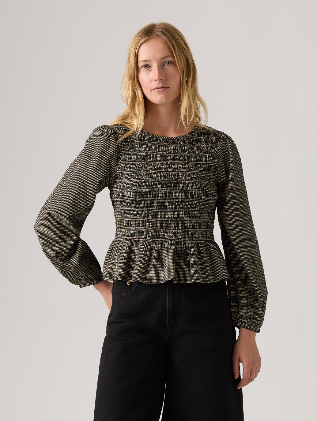 FLEUR シャツは、上品なハイネックラインに繊細なルーシュディテールをあしらったデザイン。さらに、ふんわりとしたボリュームスリーブが女性らしいシルエットを引き立てます。ロマンチックな雰囲気を演出できる一枚です。