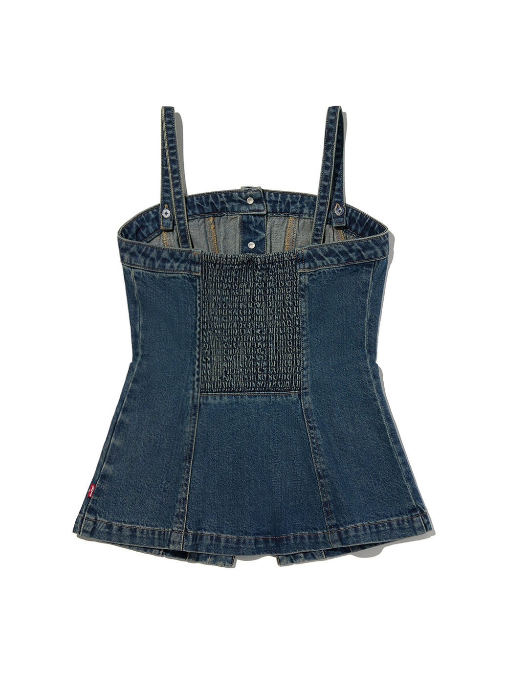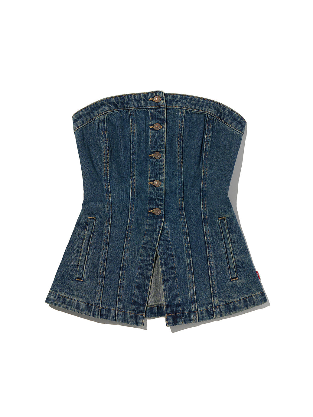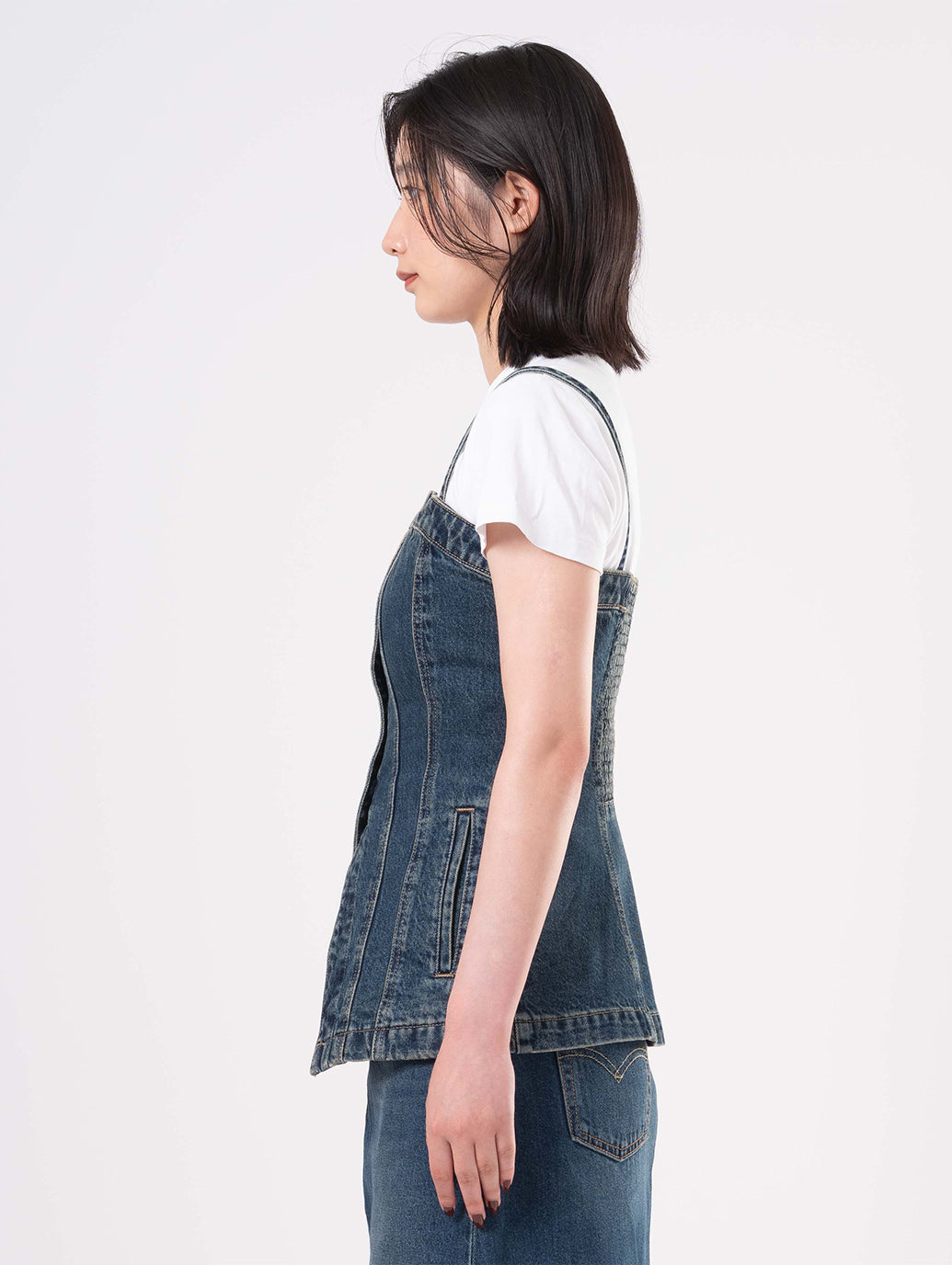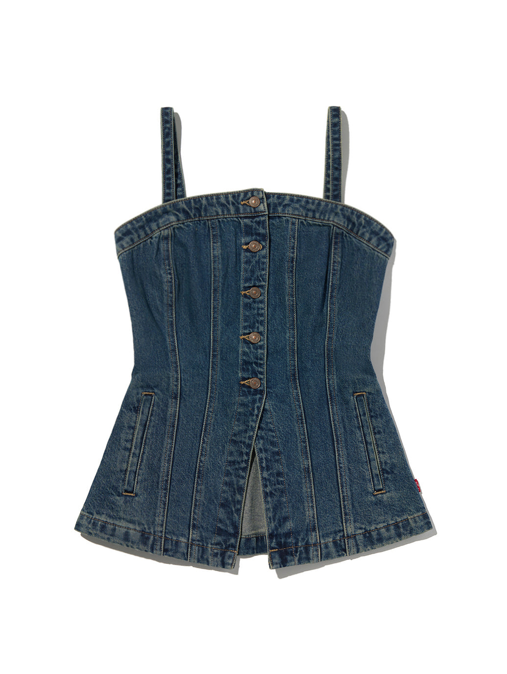 Levi'sらしくデニム生地を使用したテーラード ビスチェ。柔らかなスクエアネック、ボタン留めのフロント、そして美しいスリムフィットが魅力です。ストラップは取り外し可能でオールシーズン活躍するアイテムです。
