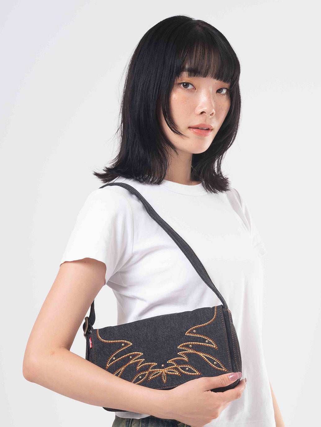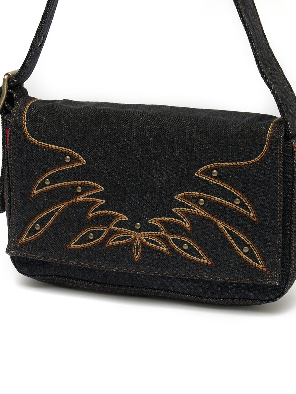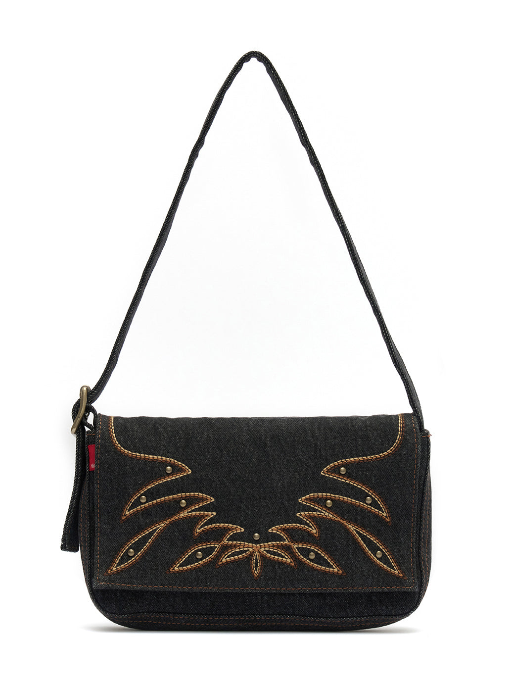 ヴィンテージ感漂うデニム素材のインディアナ ショルダーバッグ。マグネット留めの折りたたみデザインと、調節可能なショルダーストラップで機能性も抜群。カジュアルスタイルにぴったりの一点です。