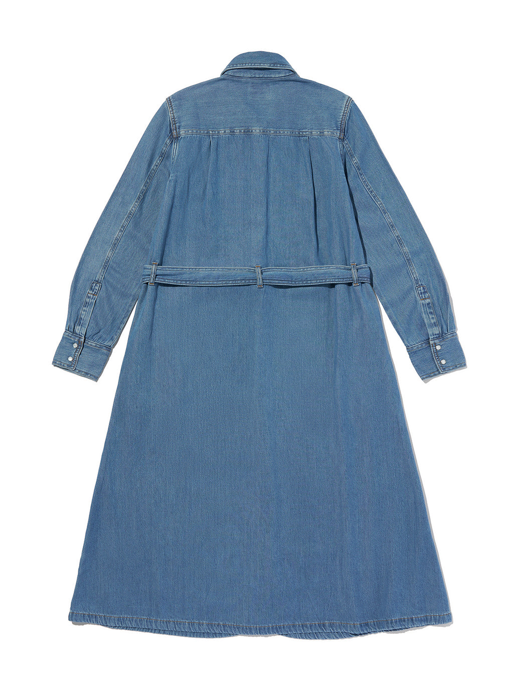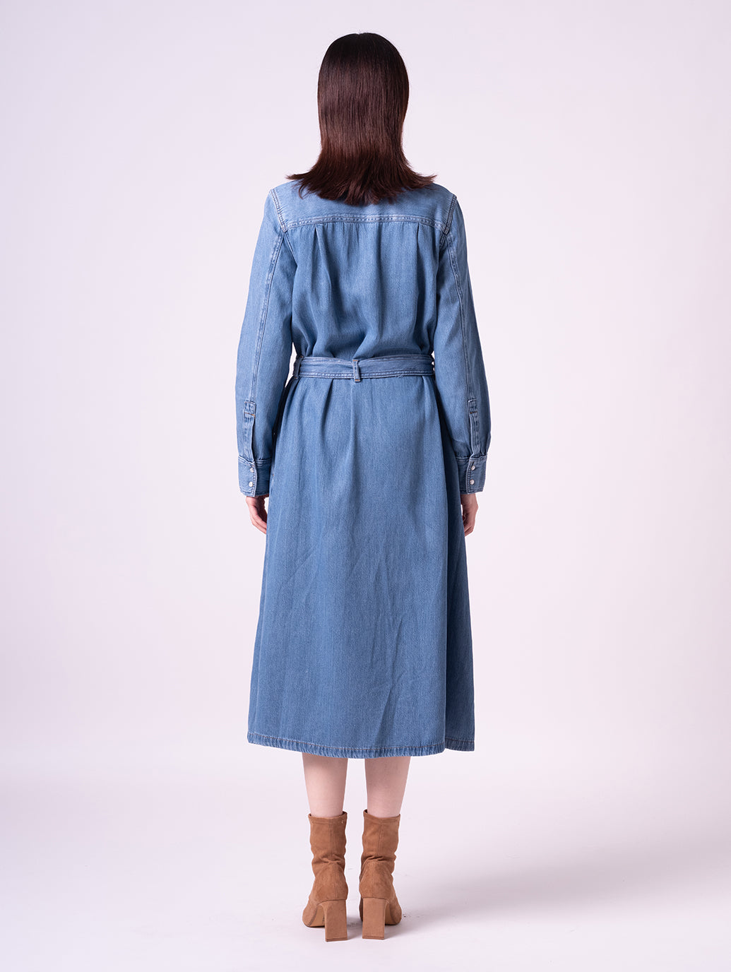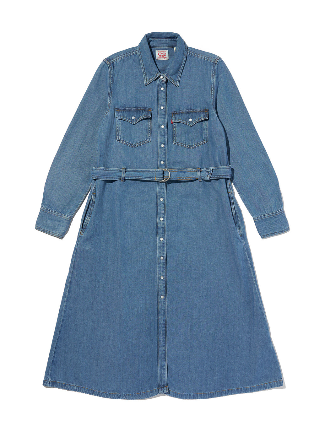 ウェスタン風でモダンな Quincey ロングスリーブ マキシ ドレス。フロントのボタン留め、ウエストをマークするベルト、足首が隠れる長さが特徴です。
