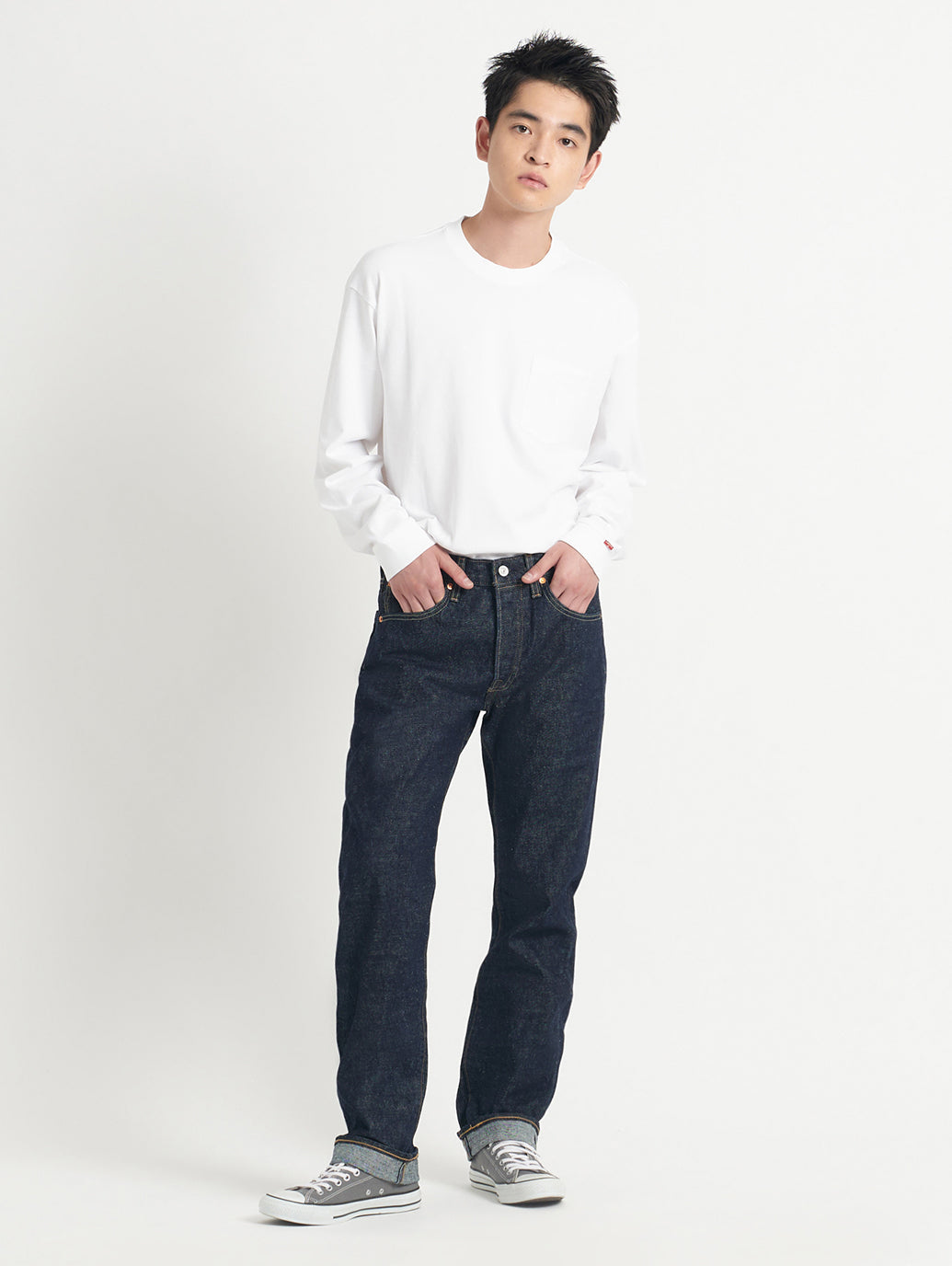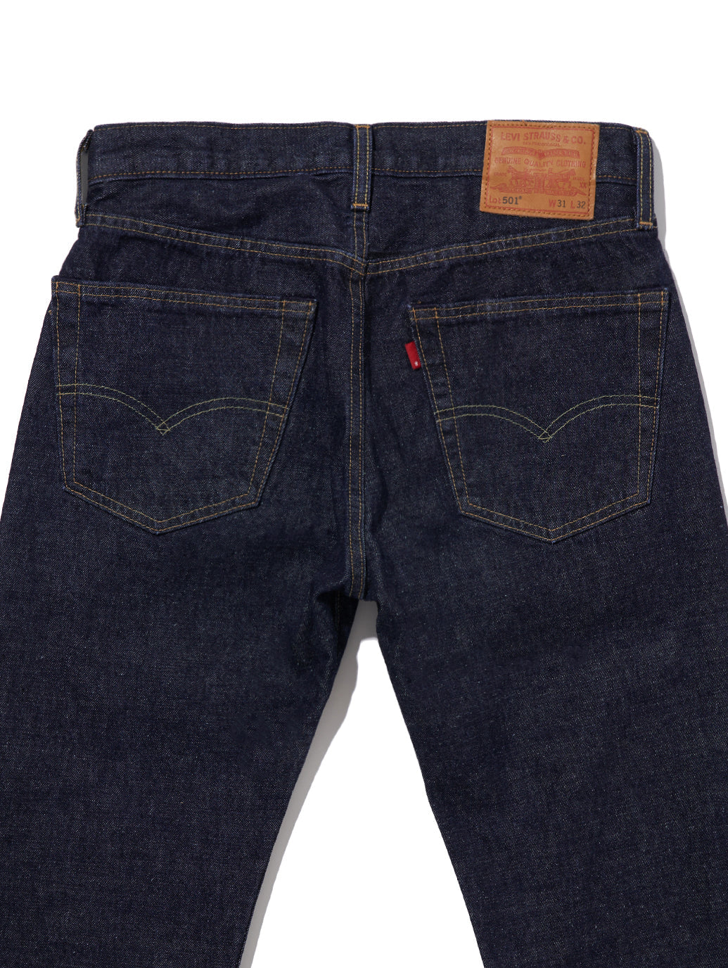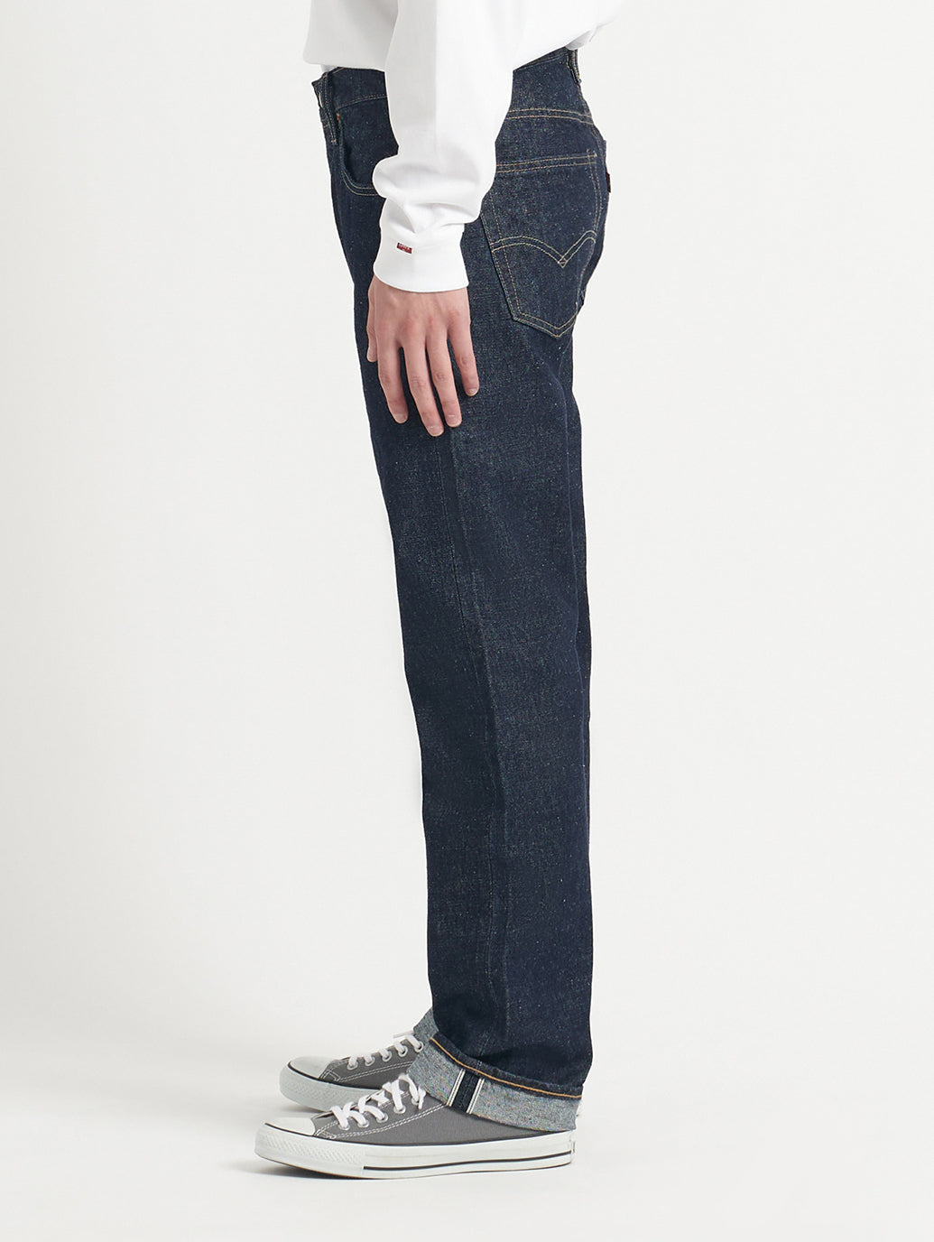 1890年にロットナンバーとして「501」が、初めて商品に付けられて以来、たくさんの人々に愛され続け、その人らしさを表現する究極のアイテムの一つとして今も人気のジーンズです。シグネチャーのストレートシルエットでカスタマイズや自己表現にぴったり。股上は程よい深さで裾に向かってすっきりとしたストレートシルエットです。セルビッジ仕様で、まだ糊を落としただけの色落ちがしていないリンスの状態、長年穿き込むことで経年変化を楽しめますし、ヘンプを配合しているので肌ざわりも軽やかなので快適にも穿ける一本です。