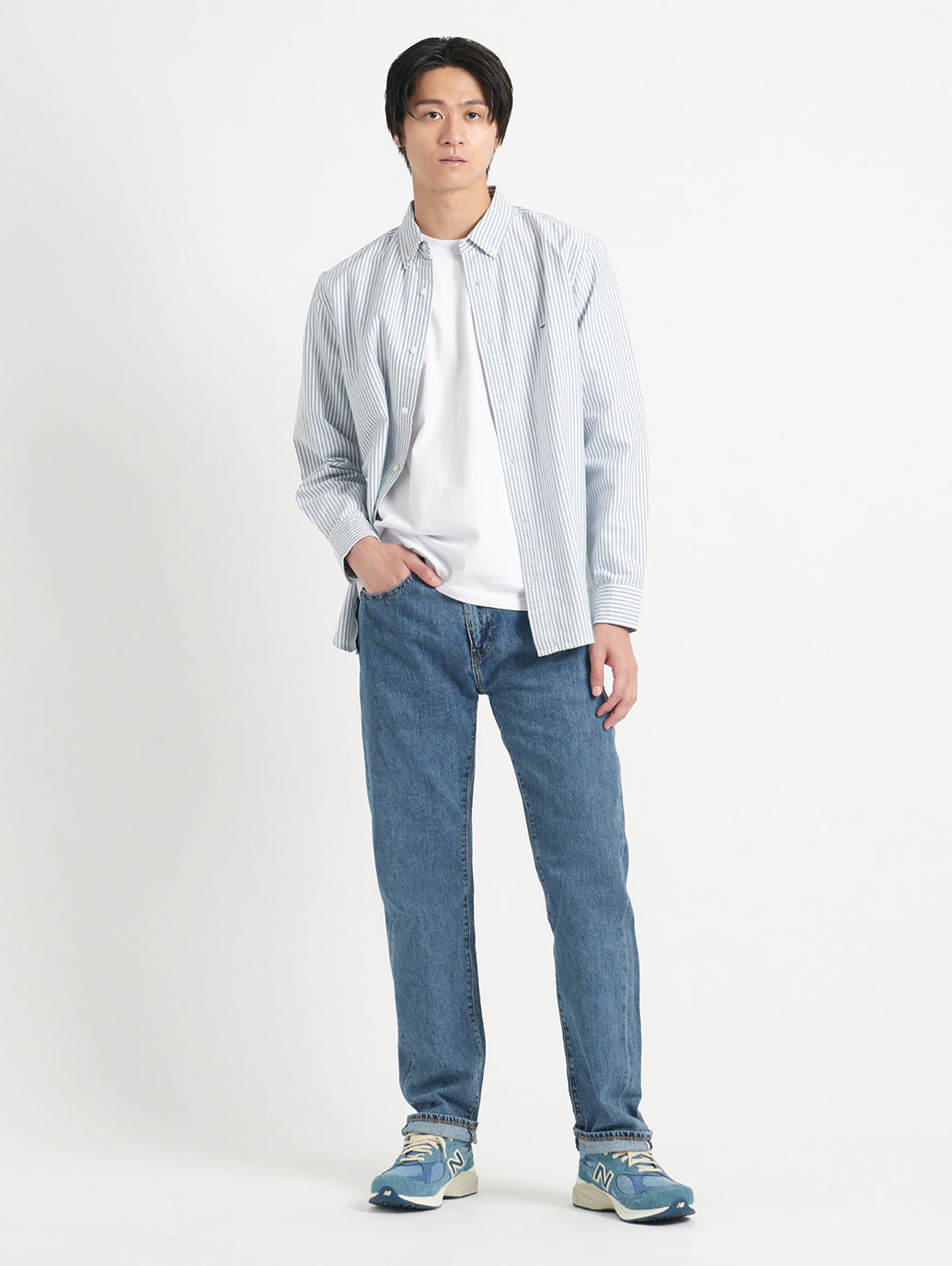 長い間、愛されているリーバイス®のベーシックシルエットの一つ。労働着をルーツに持つ501®とは異なるモダンなコンセプトとともに生まれました。ジップフライのストレートシルエット、程よい深さの股上、長年穿き込んだかのような雰囲気のあるフェードしたライトカラーの綿100%の生地に加えて、耐久性に優れ、プレミアム感も強いセルビッチ仕様です。裾を少しロールアップして穿いて頂きたい一本です。