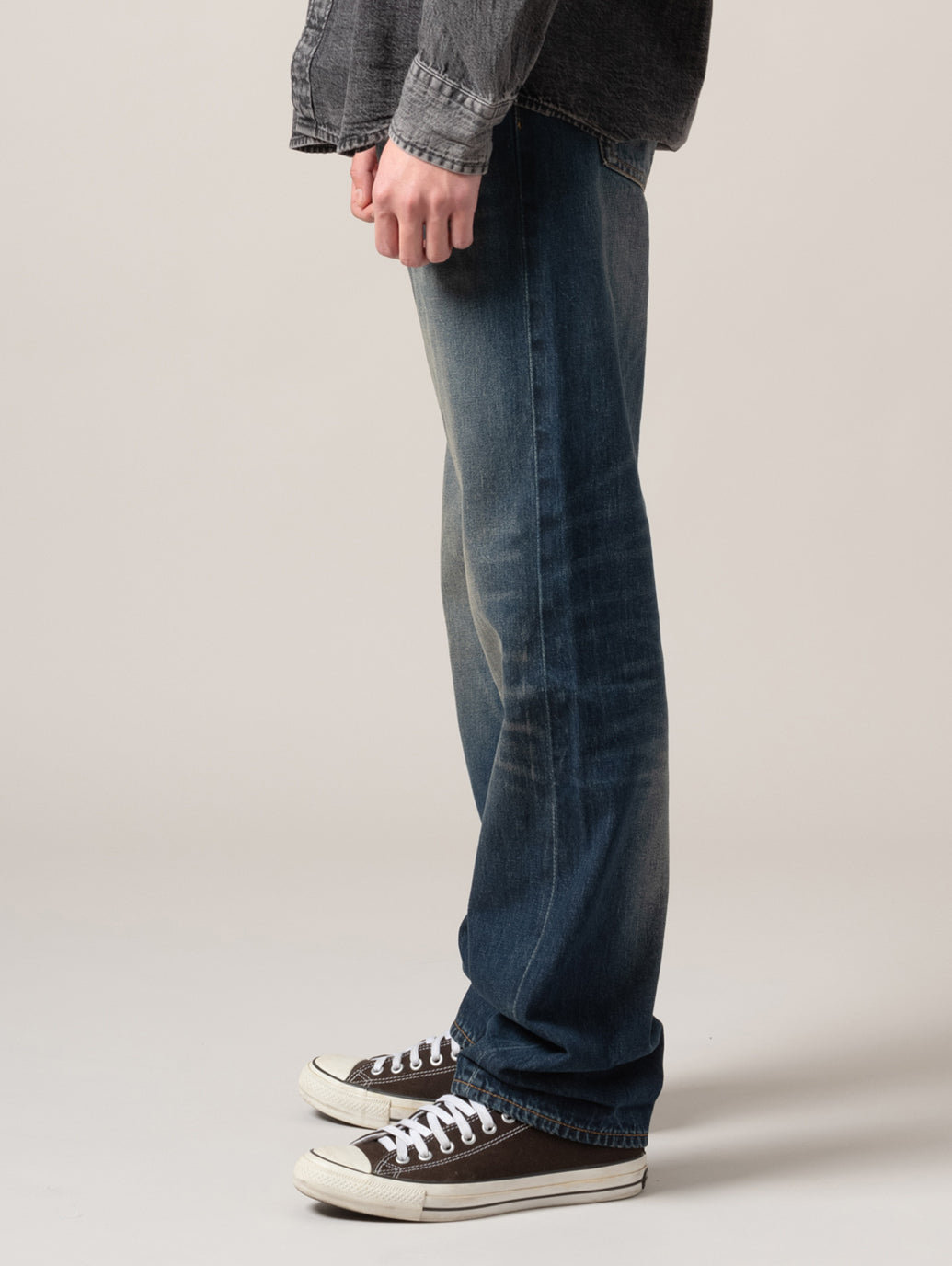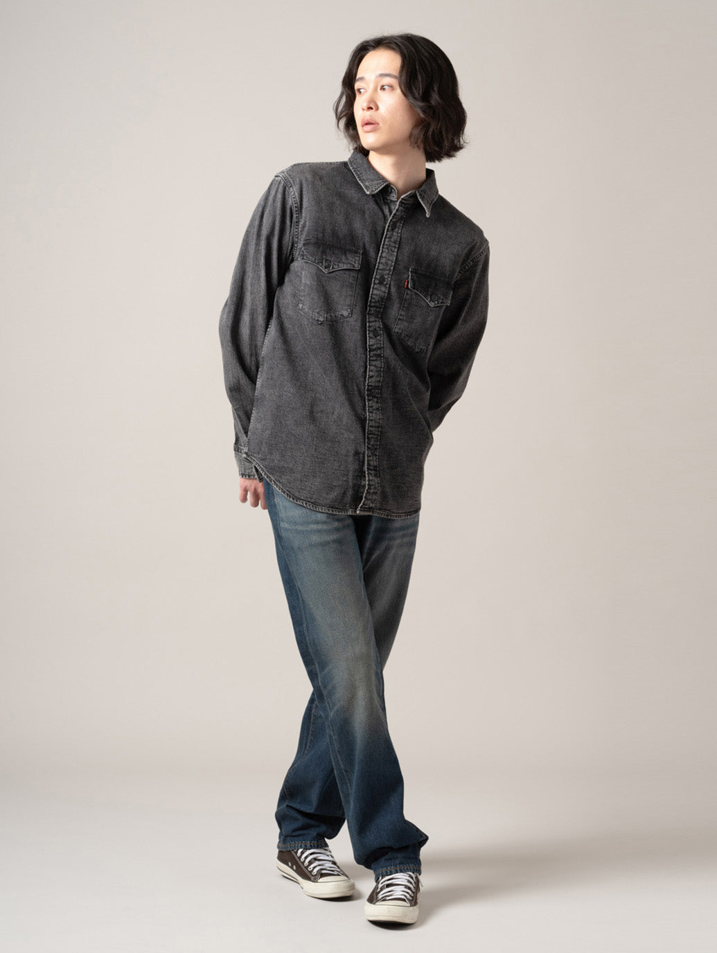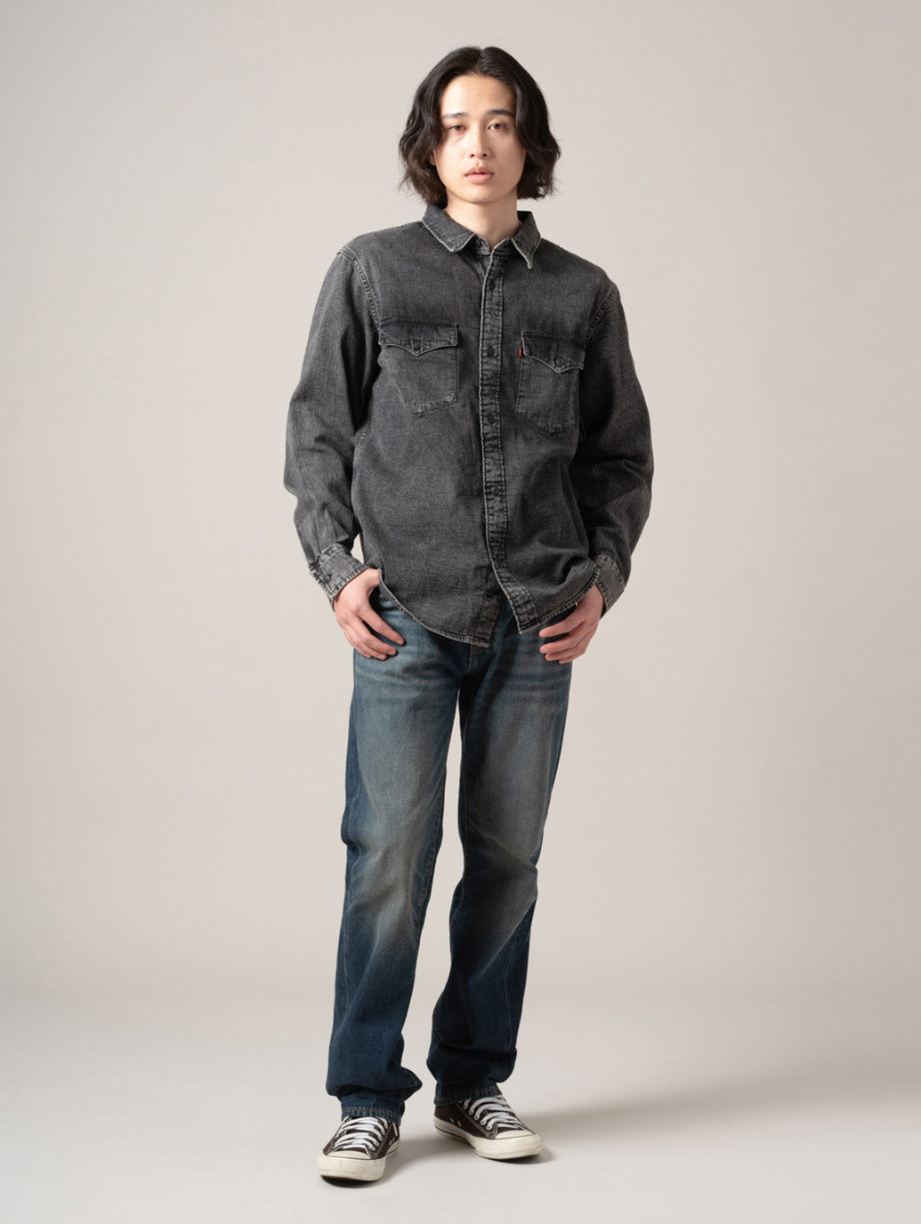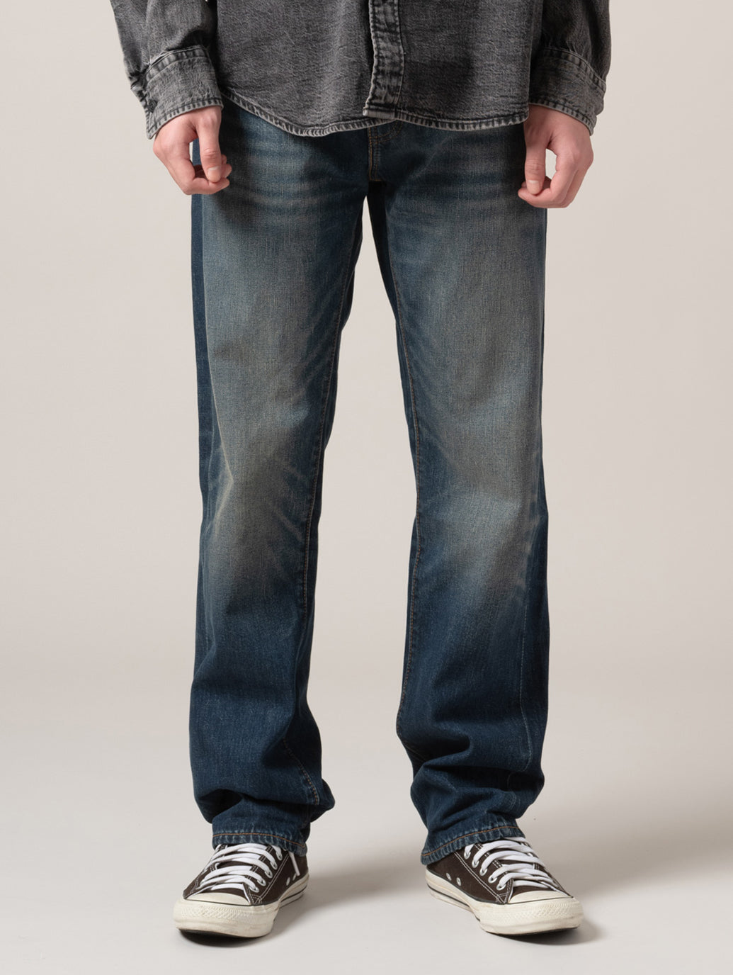 リーバイスのベーシックシルエットの一つ。長い間、愛されている1本。ジップフライのストレートレッグ。労働着をルーツに持つ501®とは異なるモダンなコンセプトとともに生まれた505™ Regular Straight。たくさんの人々に愛され続け、その人らしさを表現する究極のアイテムの一つとして今も人気のジーンズです。ストレートフィットでカスタマイズや自己表現にぴったり。股上は程よい深さで裾に向かってすっきりとしたストレート。ヴィンテージ /古着で必ず目にするシルエットです。 ワーク &ミリタリー テイストにも大活躍。軍物などとも相性が良い一本です。アメリカ/フランス/ドイツ/イタリアの80s 90sスタイルにもぴったり。ゆるだぼやビッグシルエット/オーバーサイズで着用したい場合は少し大きめのサイズを選ぶのがお勧めです。 model:181cm B89 W68 H83 着用サイズ:33inch