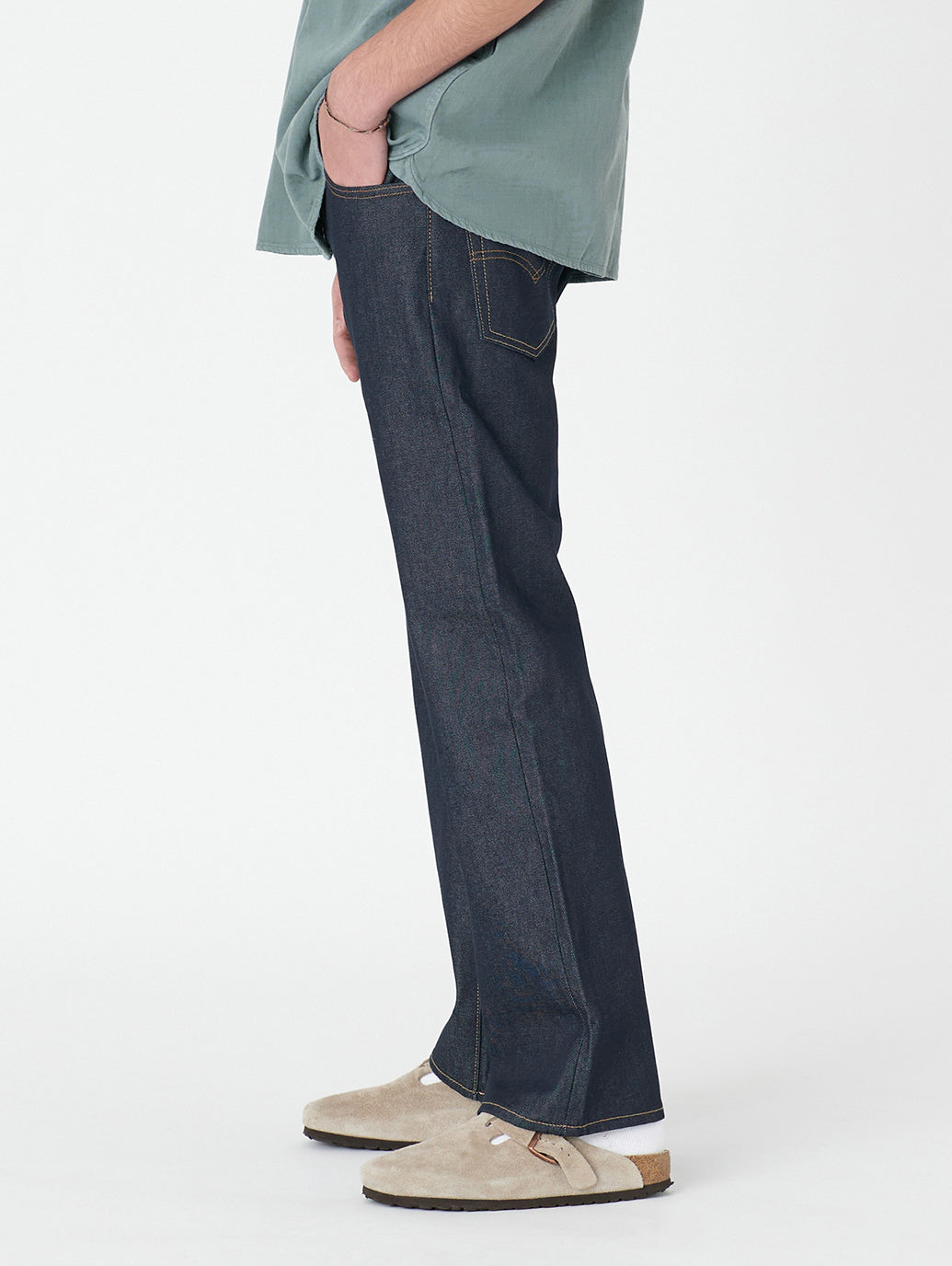 リーバイス®のベーシックの一つであり、近年の古着市場でも人気を博しているフィット。程よく深い股上、裾に向かって緩やかに広がるブーツカットシルエットで、スニーカーやブーツなど幅広い靴に合わせやすく、心地の良いフィット感のみならず脚長効果も与えてくれます。リジッドアイテムなので汎用性は勿論、色落ちの経年変化も楽しめる一本です。