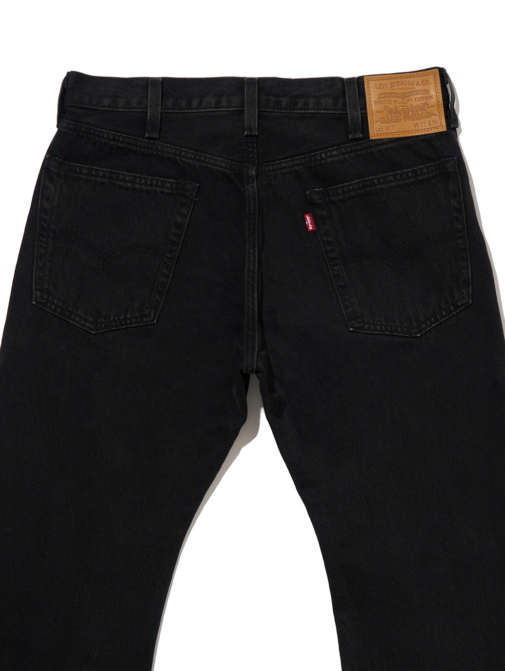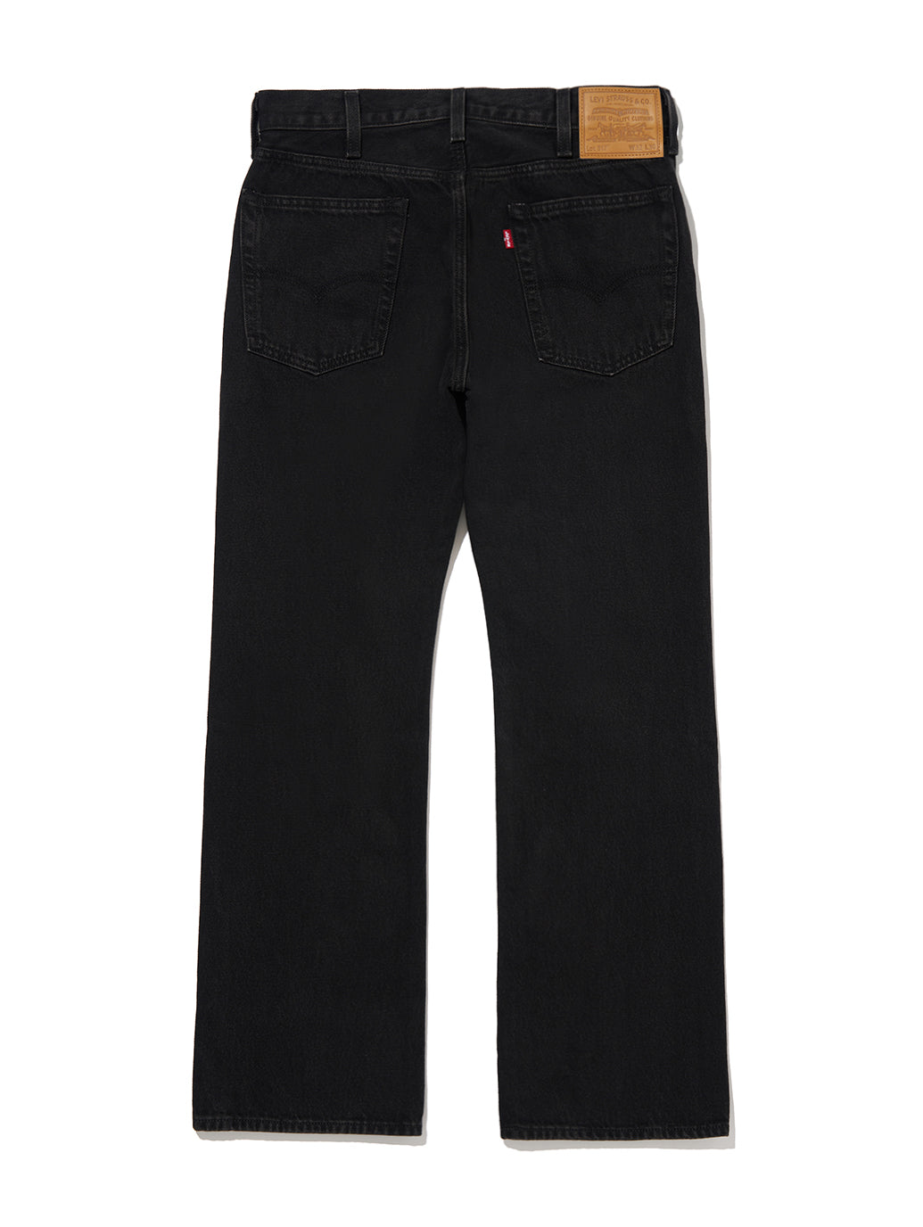 リーバイス®のベーシックの一つであり、近年の古着市場でも人気を博しているフィット。程よく深い股上、裾に向かって緩やかに広がるブーツカットシルエットで、スニーカーやブーツなど幅広い靴に合わせやすく、心地の良いフィット感のみならず脚長効果も与えてくれます。ブラックカラーなのでカジュアルなワントーンコーデにも、ジャケットやシャツ等を併せてフォーマルな着こなしもお勧めの一本です。