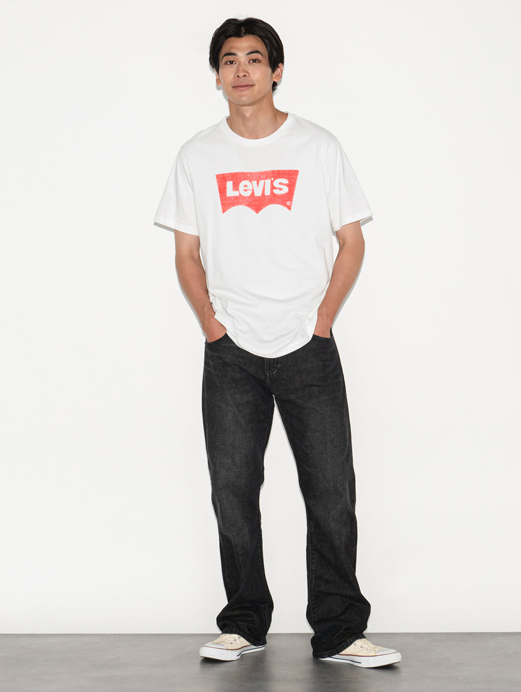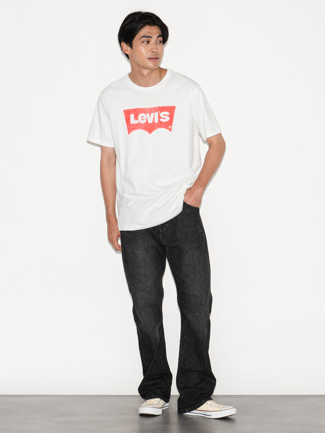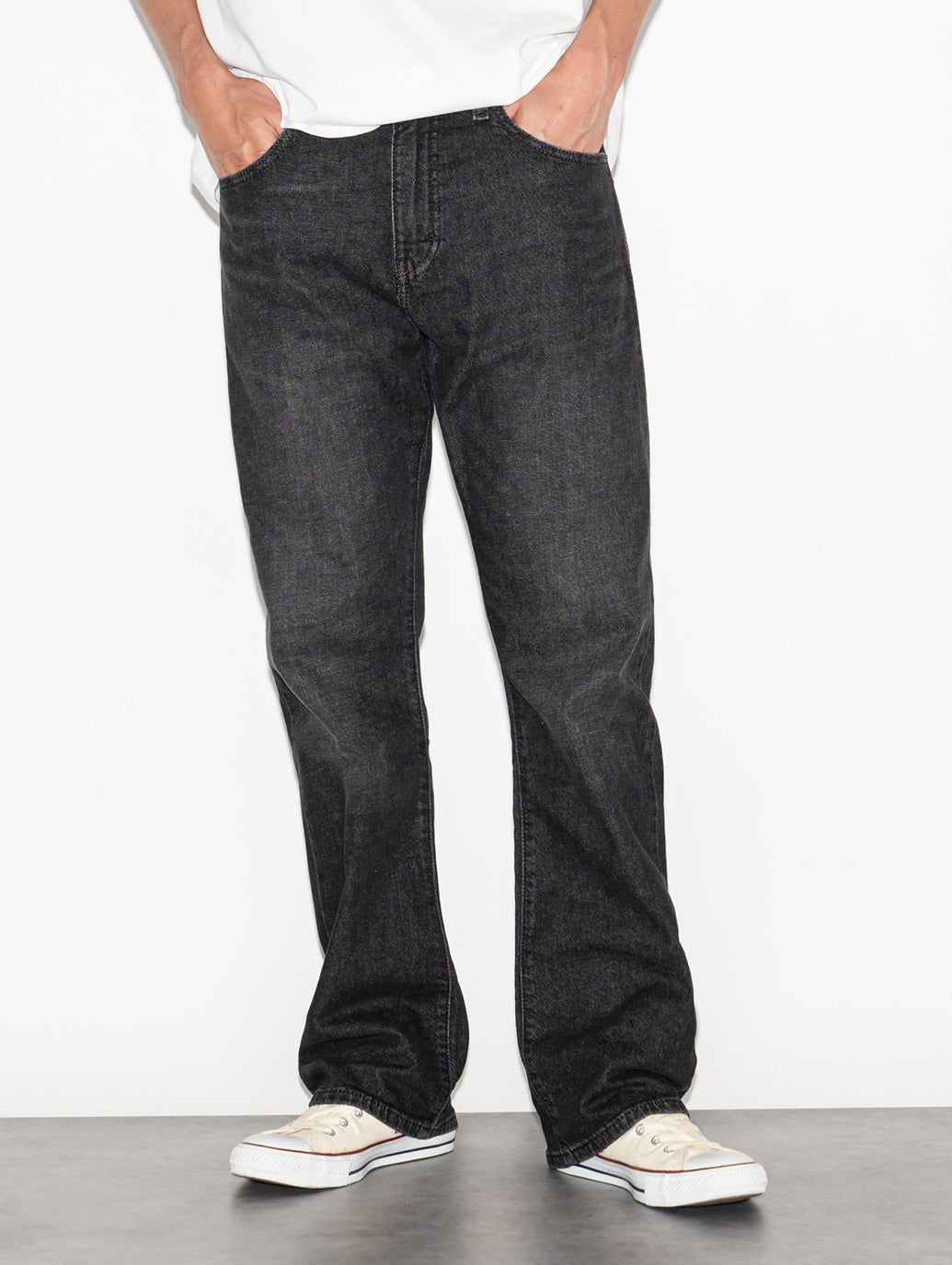 リーバイス®のベーシックの一つであり、近年の古着市場でも人気を博しているフィット。程よく深い股上、裾に向かって緩やかに広がるブーツカットシルエットで、スニーカーやブーツなど幅広い靴に合わせやすく、心地の良いフィット感のみならず脚長効果も与えてくれます。ブラックのユーズドカラーで良い塩梅のフェード感がありながらも、カジュアルなワントーンコーデにも、ジャケットやシャツ等を併せてフォーマルな着こなしもお勧めの一本です。