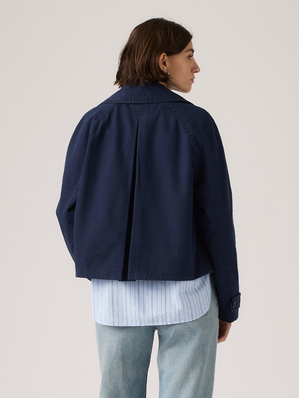 クラシックなスタイルとモダンなカットのBree Cropped Swing Trench Jacketは、時代を超越したラペル、ボタンアップフロント、そしてゆったりとしたリラックスフィットが特徴です。