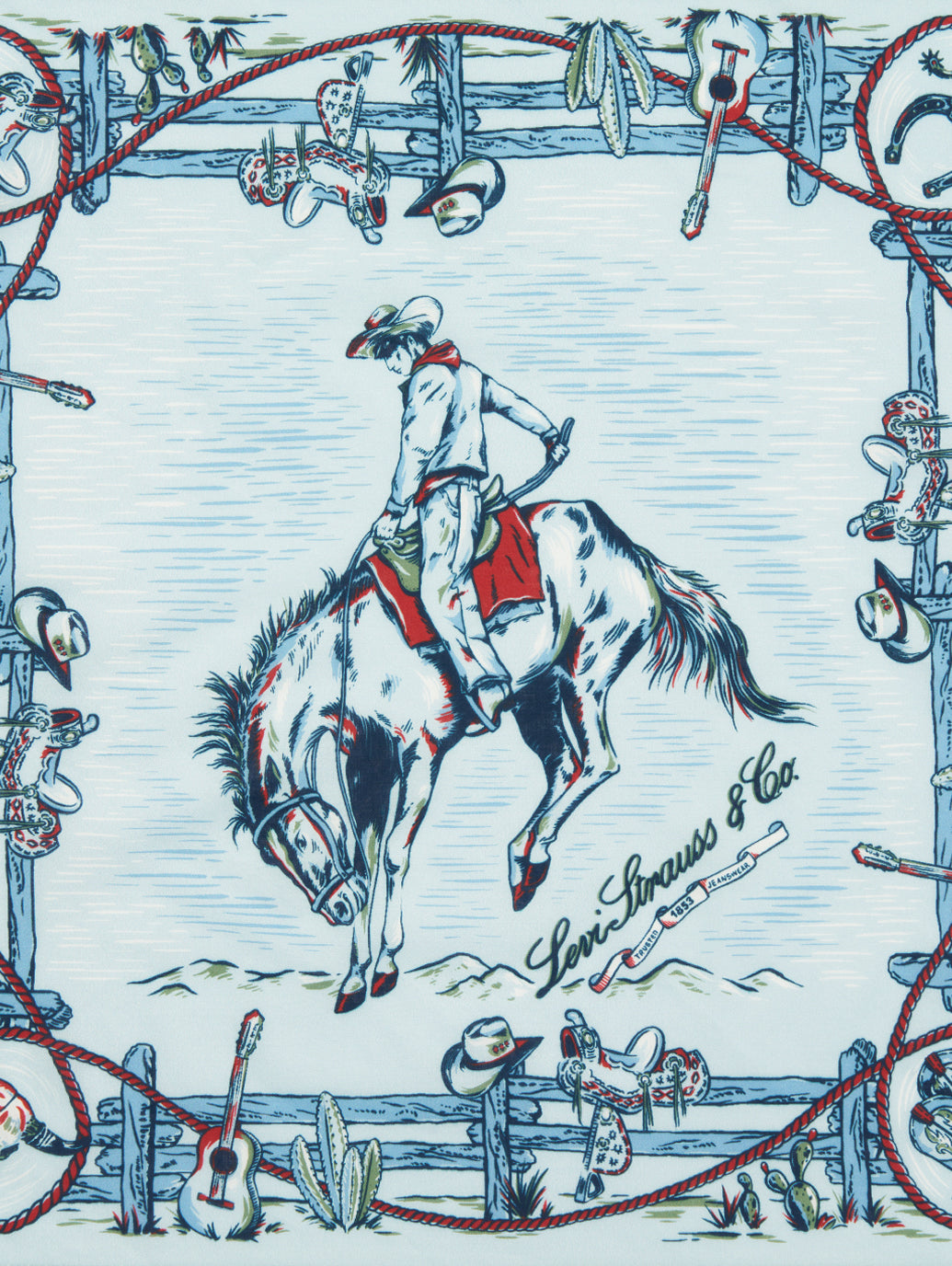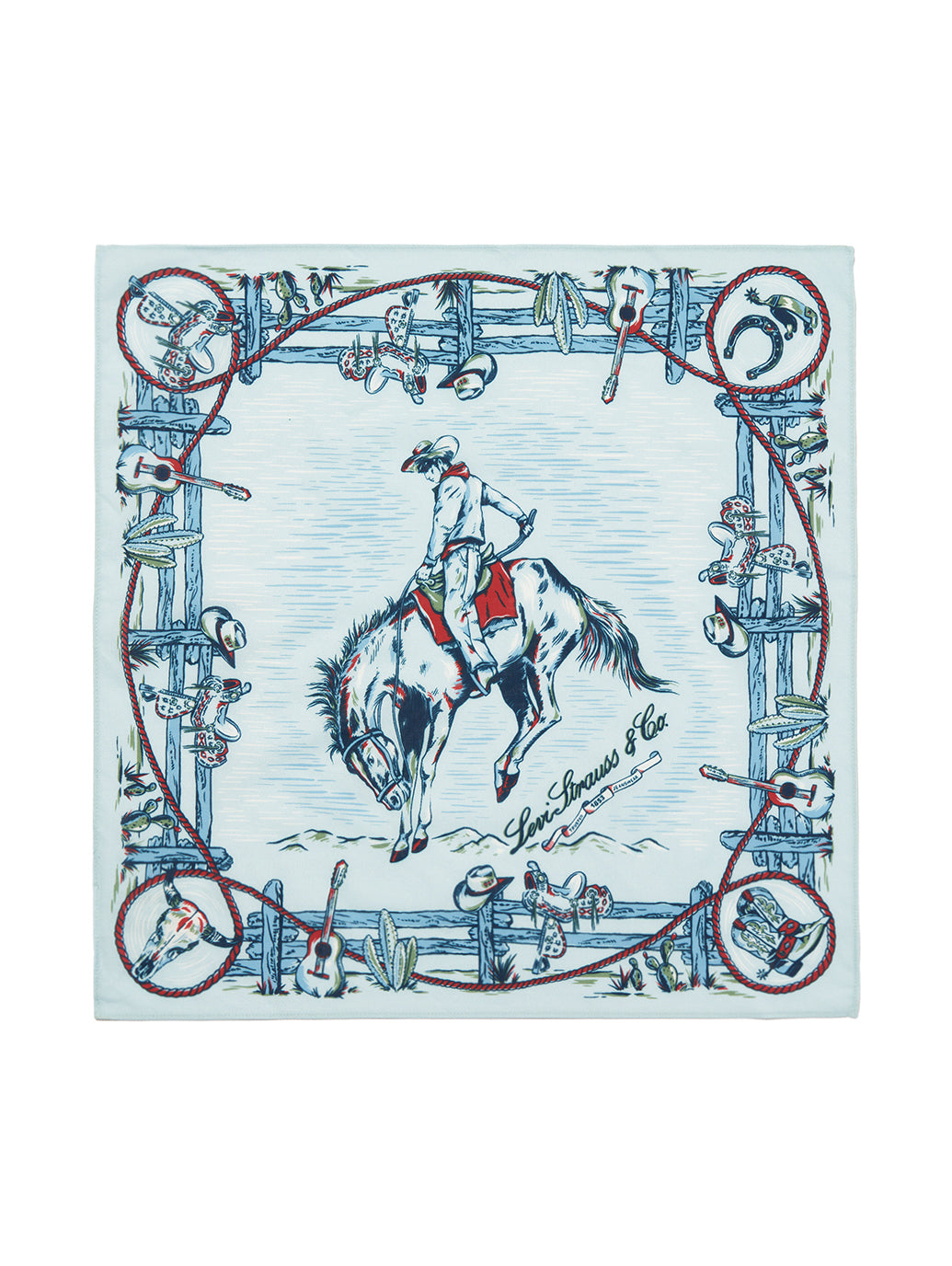 デニムにピッタリな綿100%のサドルマンバンダナ。リーバイスの象徴とされるが描かれていてユニセックスでご使用いただけます。